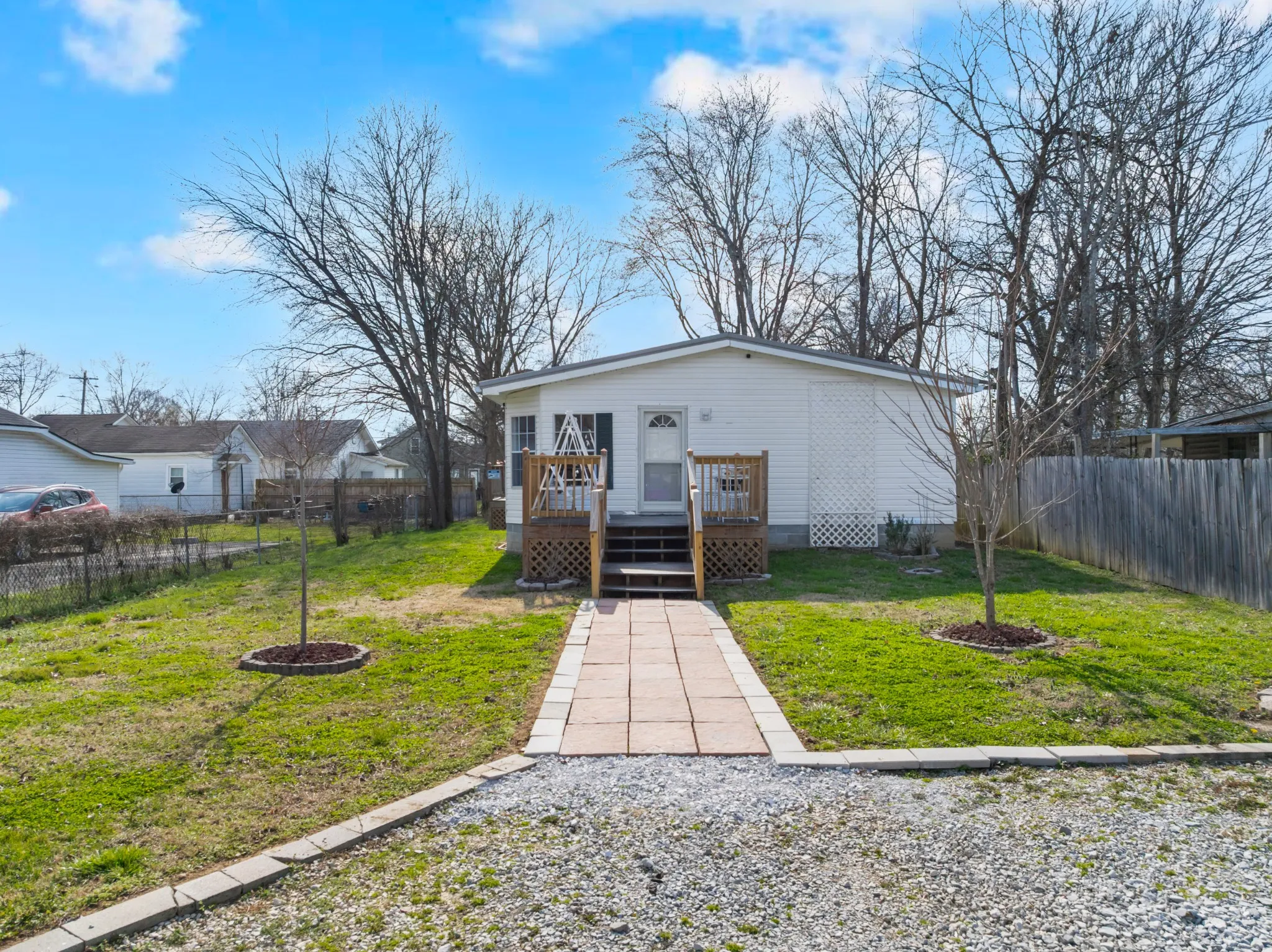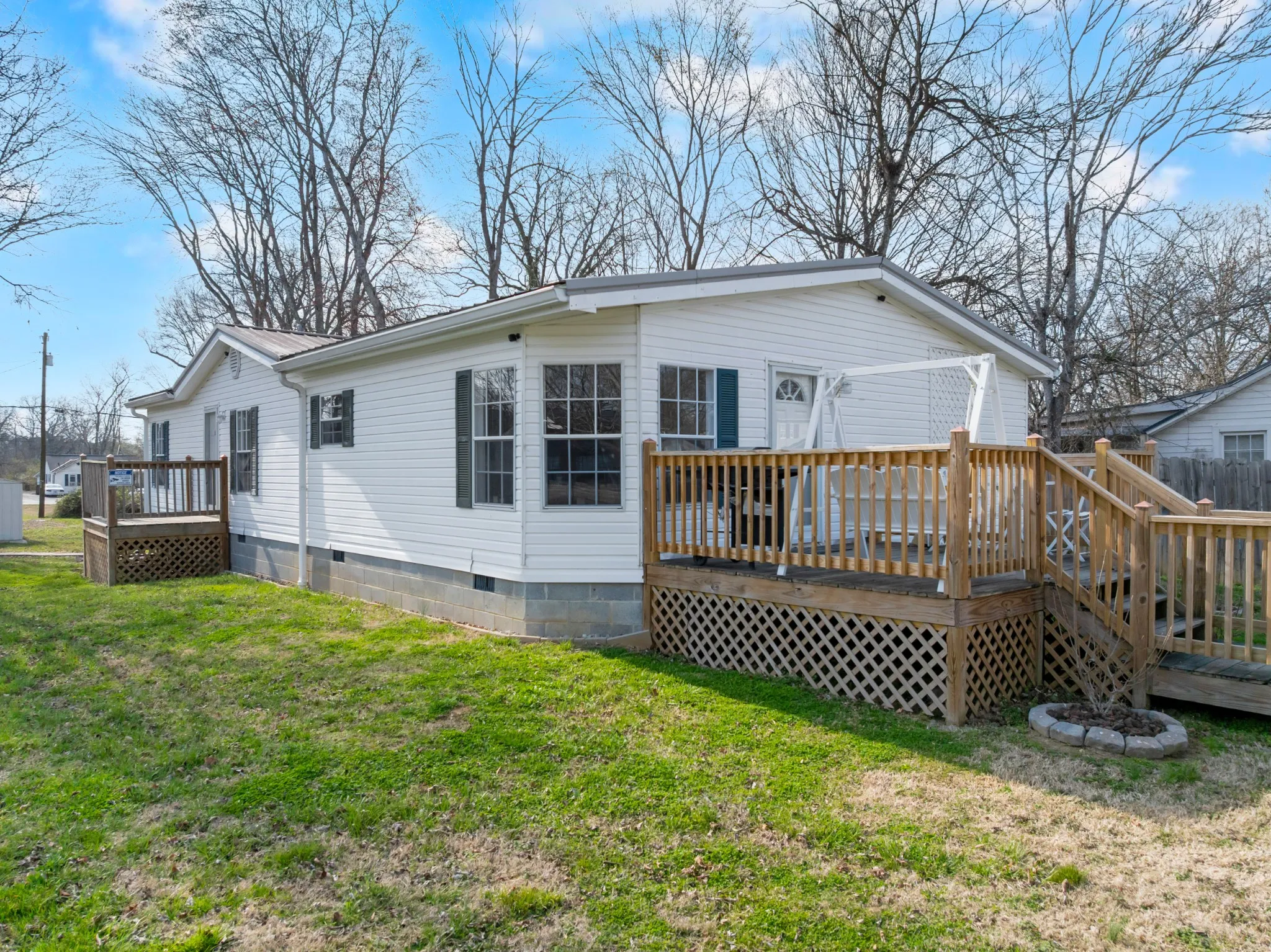 You won’t want to miss this beautifully renovated large manufactured home on a permanent foundation with a nice size lot in the heart of beautiful Tullahoma, TN. Enjoy the view of your lovely flowers, maples, crepe myrtle and morning glories from one of your two porches. Enjoy local entertainment right near home as South Jackson Civic Center is a short walk away. This 1456 Sq ft 3 Br 2 bath home is waiting to welcome you and includes features such as newer (2020) permanent foundation with insulated crawlspace, new electrical feed from pole to all new breaker box, almost all new plumbing, steel roof, newer gutters with gutter screens, backyard lighting, 8×10 storage building, 2 year old HVAC, 2 renovated bathrooms with pressure assist toilets, new sewer lines, new French drain, new exterior door. This home has high speed internet available, security cameras, parking in front or rear of property The kitchen features handmade countertops and kitchen appliances will also convey including stove, refrigerator, washer, new dryer, new dishwasher. Seller to also leave patio furniture and propane grill. Water heater is also new. Don’t forget to check out the new neutral paint throughout the home. Tullahoma is located in southern Middle TN with Nashville, Chattanooga and Huntsville about an hour’s drive away. Tullahoma is also a short driving distance to Tims Ford and Normandy lakes and other activities including kayaking, biking, hiking and nearby waterfalls at Short Springs Natural area and Rutledge Falls. Tims Ford State Park is also close by. What this home needs is you! Schedule your showing appointment today. All information regarding measurements and school districts are believed to be correct, but not guaranteed and should be verified by buyer or their agent if important. Photos showing furniture are virtually staged to help you imagine how the space could be utilized..