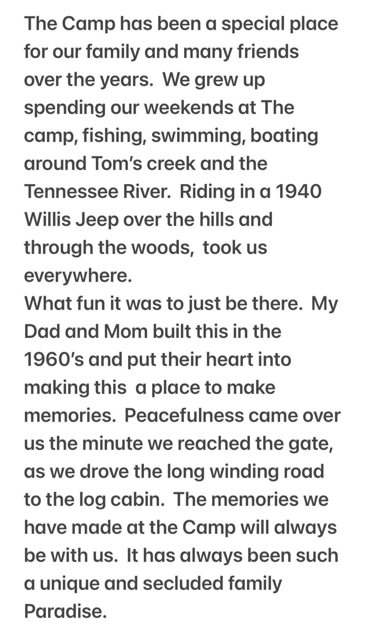 - Directions: From Linden, turn right onto Linden Pineview Rd. 9.4 miles, turn left onto Toms Creek Rd.1.7 miles, turn left onto Bible Hill Rd. 0.8 miles, turn right onto Deer Creek Spur. 1.2 miles, turn right onto Deer Creek Rd. 0.5 miles, turn right onto Lakeside Dr