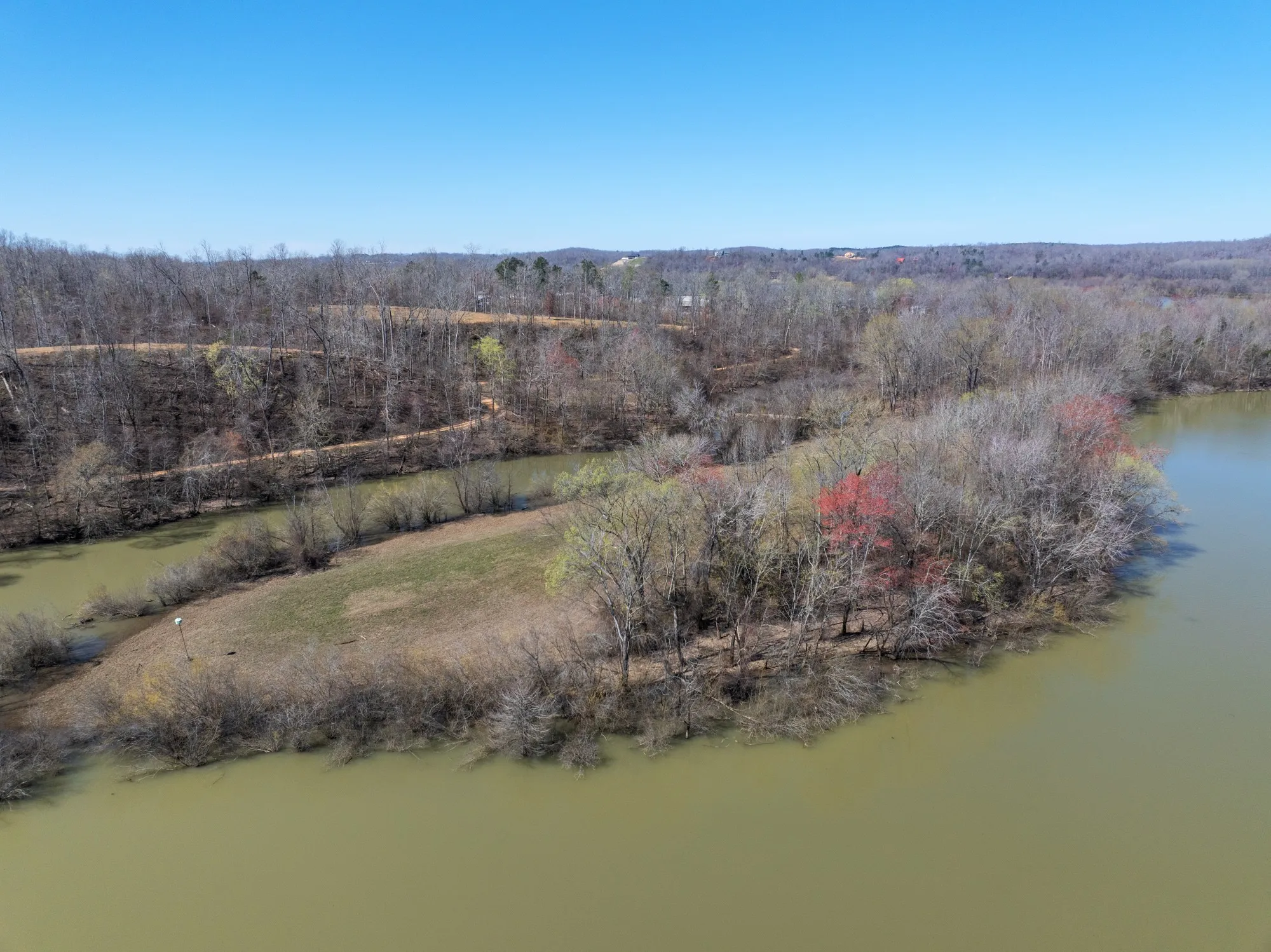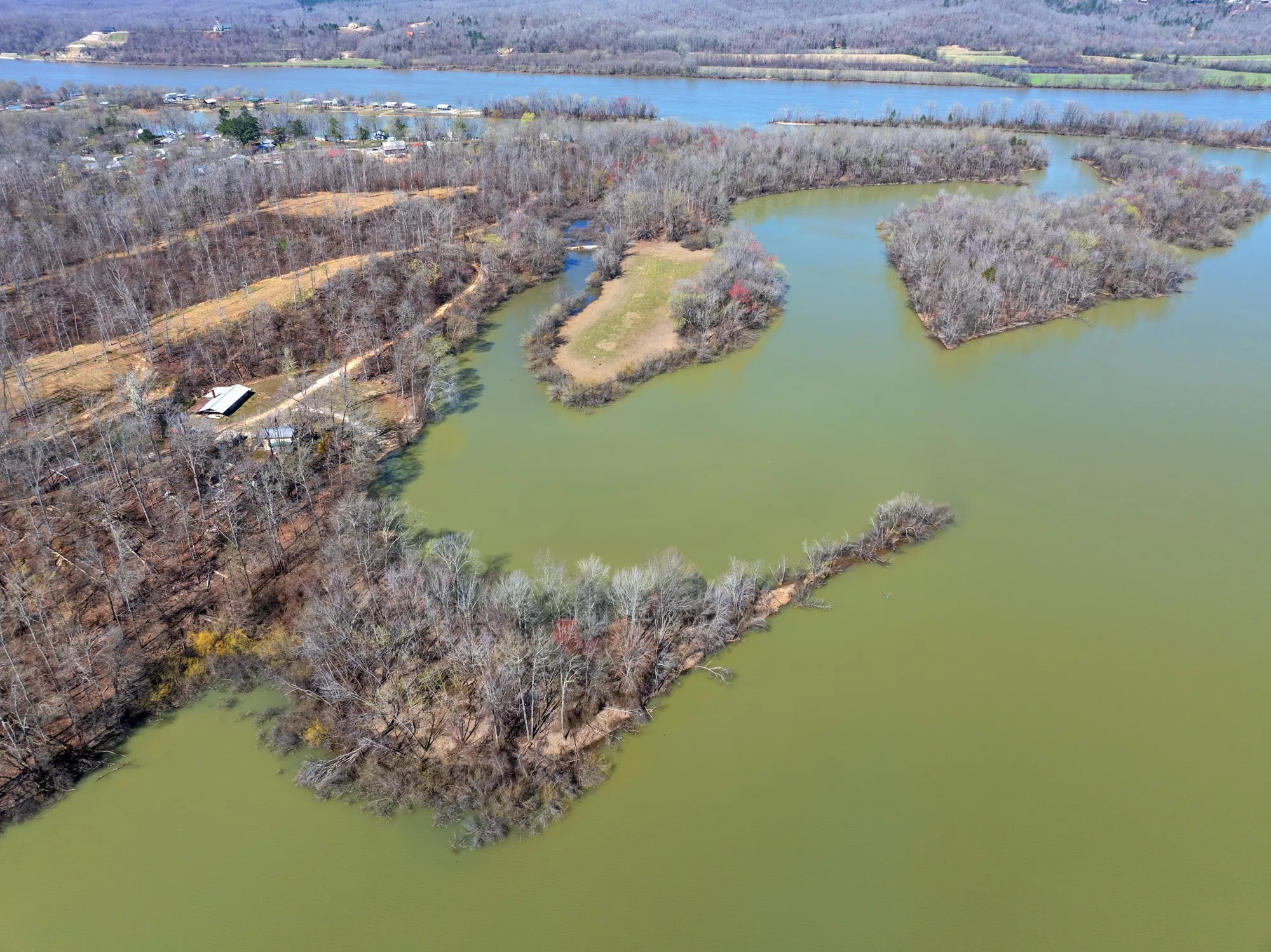 59.76 Hidden Acres with 7,000+ Ft Waterfront – Prime Investment & Recreational Paradise-a high-upside investment potential with direct access to the Tennessee River. Exceptional opportunity to own a large, private waterfront tract with direct access to the Tennessee River via Tom’s Creek. With over 7,000 feet of shoreline, this property offers unmatched potential for investment, development, or a secluded legacy estate. Tucked away off a resort road, a rustic private drive leads into the heart of the property, delivering total seclusion and privacy. Newly cut internal roads provide access throughout, with multiple prime building sites—all outside the floodplain—ideal for future homes, cabins, or campground development. This tract is a sportsman’s dream. The diverse mix of hardwoods, open fields, and water creates the perfect habitat for abundant wildlife. Deer are plentiful, and the waterfront setting makes for outstanding duck hunting & fishing opportunities. Eagles and other native wildlife are frequently seen, adding to the untouched, natural appeal.