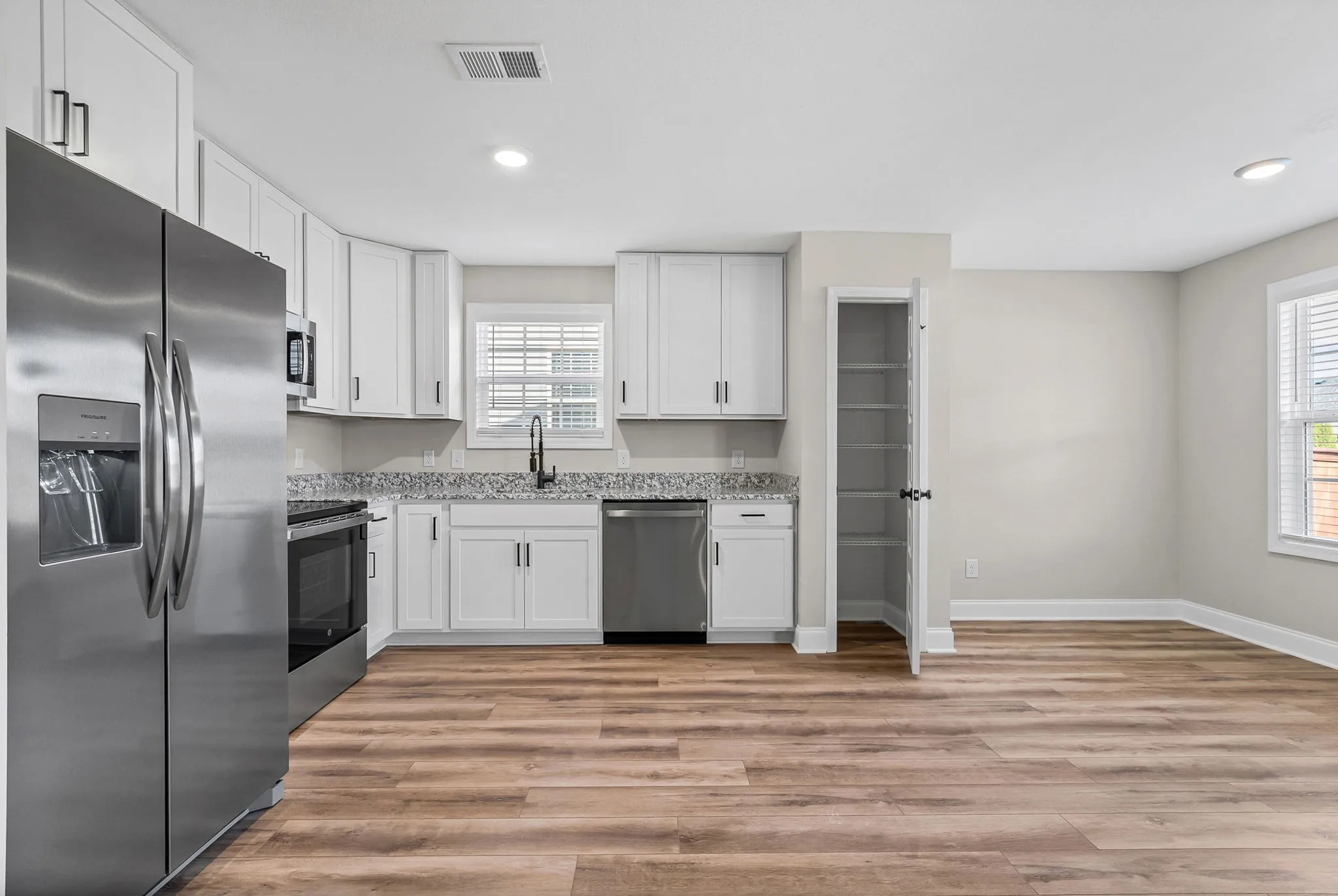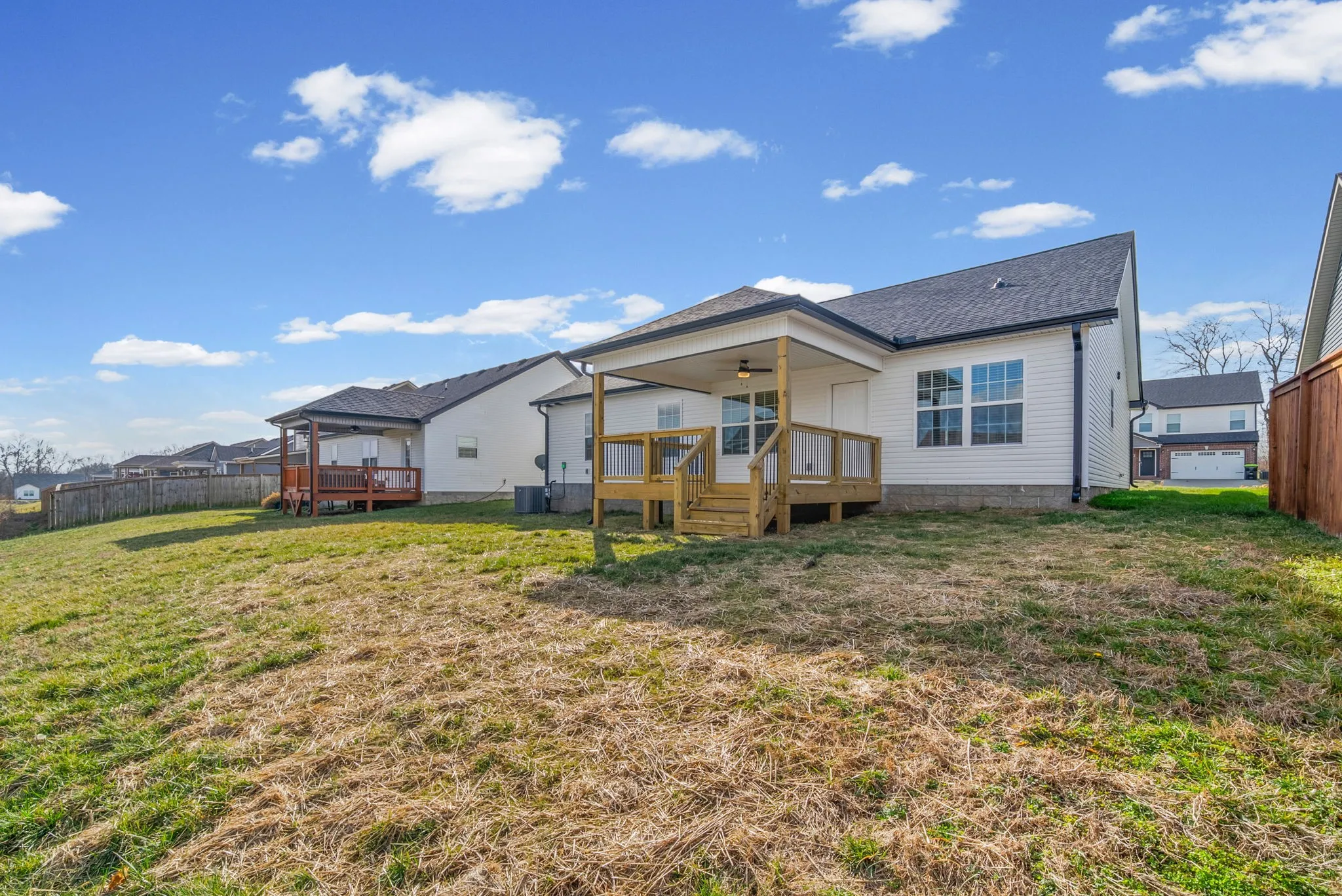 Beautiful new construction ranch home featuring three bedrooms and two full baths, conveniently located just minutes from the Greenway, shopping, Fort Campbell, and more! This thoughtfully designed home offers soaring ceilings, an open floor plan, and beautiful LVP flooring that flows seamlessly through the main living areas! The spacious living room opens to a stunning kitchen complete with granite countertops, stainless steel appliances, a pantry, and large dining area! The primary suite provides a private retreat with a full bath featuring a double vanity and tiled shower! Both guest rooms are generously sized for versatility! Enjoy the convenience of a two car garage and relax outdoors on the covered deck! Pet rent applicable.