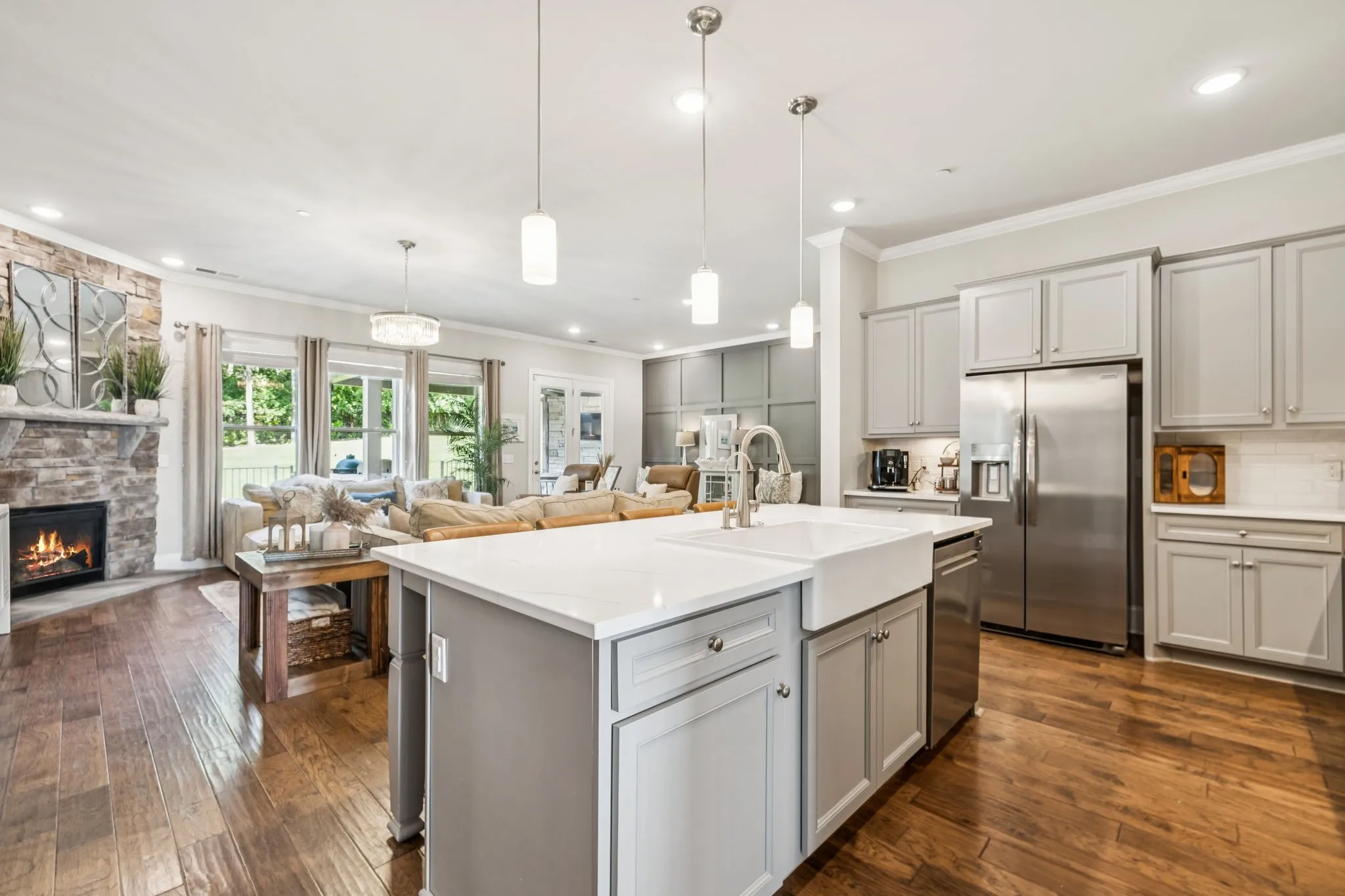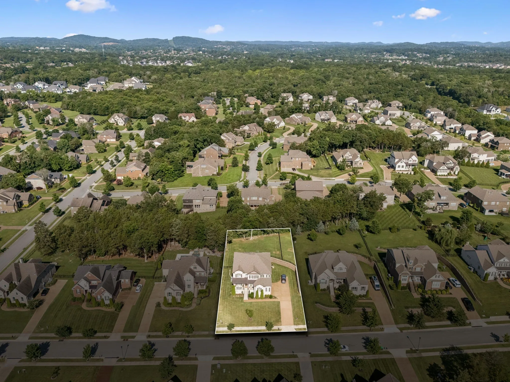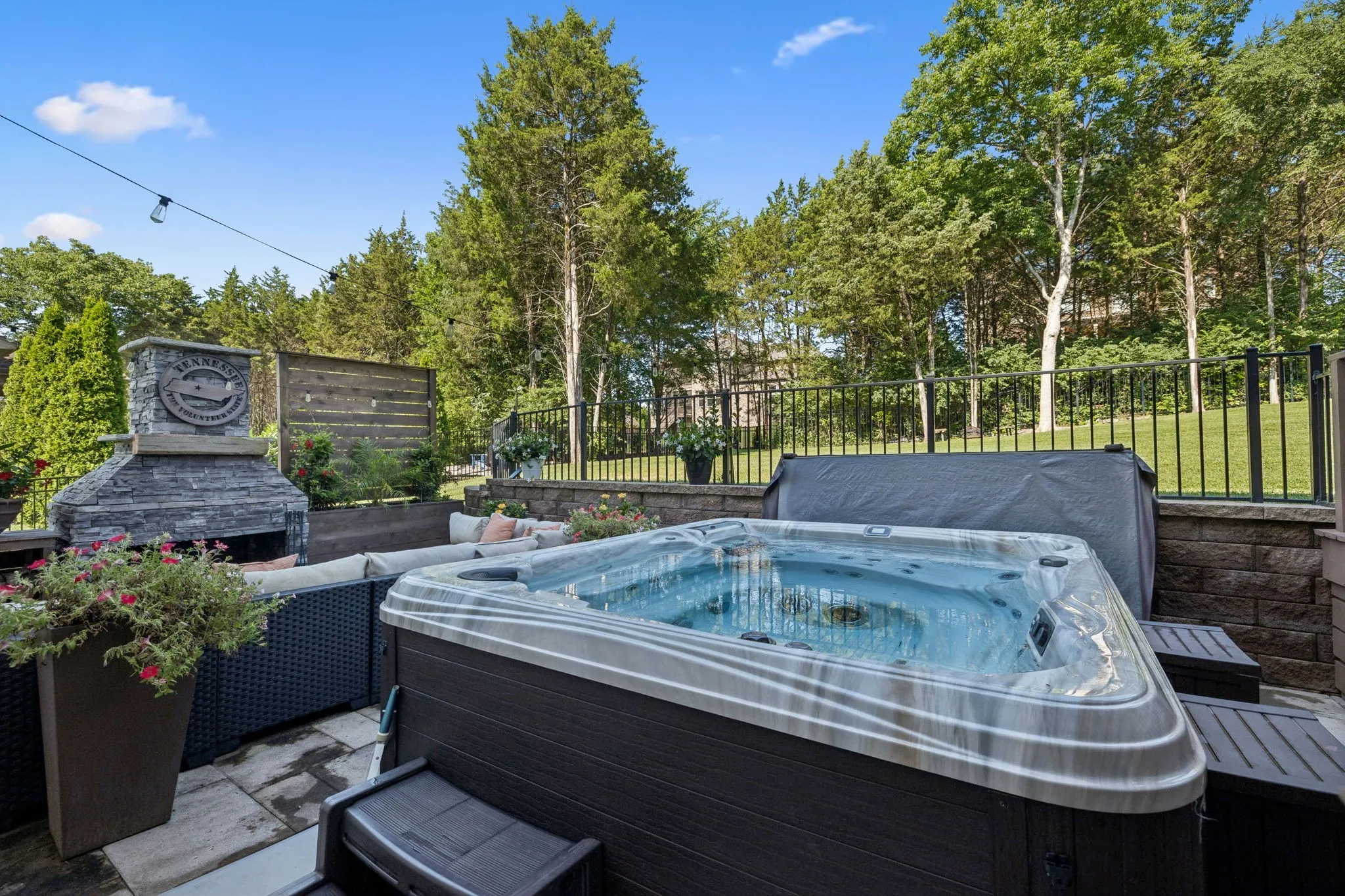 Exceptional 6-bedroom home in Catalina Subdivision, offering a private, fenced, and beautifully treed level backyard. This outdoor retreat is complete with a covered porch, two stone fireplaces, a fully-equipped outdoor kitchen featuring a Green Egg, built-in grill, Blackstone griddle, and an 8-person hot tub—perfect for entertaining and relaxation. The home boasts designer upgrades throughout. The main level includes a office/library, an expansive dining area, a gourmet kitchen outfitted with premium appliances and an additional serving pantry, the primary suite with a spacious en suite bathroom and walk-in closet. The inviting living room features a fireplace and a wall of windows, offering stunning views of the backyard oasis. Upstairs, a large bonus area leads to 5 generously-sized bedrooms, each with ample closet space, and 3 full bathrooms—2 of which could serve as a secondary primary suites. This versatile floorplan is ideal for multi-generational living. The home also includes a 3-car garage with extra storage space. Located on the west side of Nolensville, Neighborhood amenities- including a pool, clubhouse, sidewalks, and underground utilities.