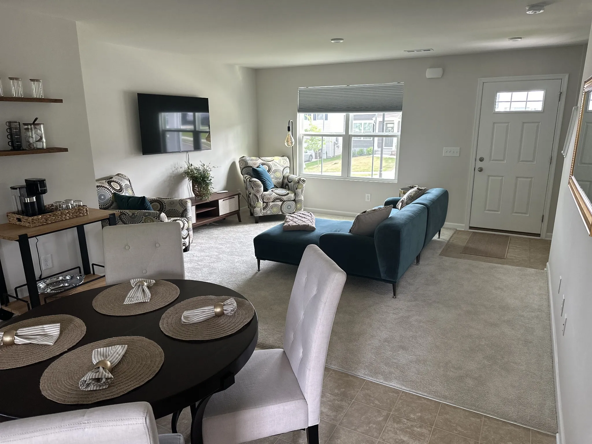 Beautifully appointed new construction townhouse featuring 3 bedroom, 2-1/2 baths, approximately 1,600 sqft. Open concept living room and kitchen, fully equipped with modern appliances, including a refrigerator, stove/oven, garbage disposal, microwave, and dishwasher. Primary Bedroom is spacious, fitting a King bed. Second bedroom fits a queen and Third Bedroom can be used as an at-home office or additional bedroom. All 3 bedrooms have walk in closets and laundry room located upstairs for easy access from the bedrooms. Nest thermostats to monitor the Central Air and Heat