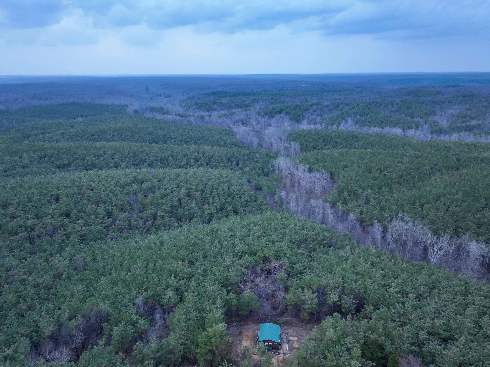 ~45 acres of established pine plantation surrounds maturing hardwood timber left standing for privacy, aesthetics, & wildlife habitat. The hardwood bottoms create natural funnels & bedding cover that hold deer & turkey year round.