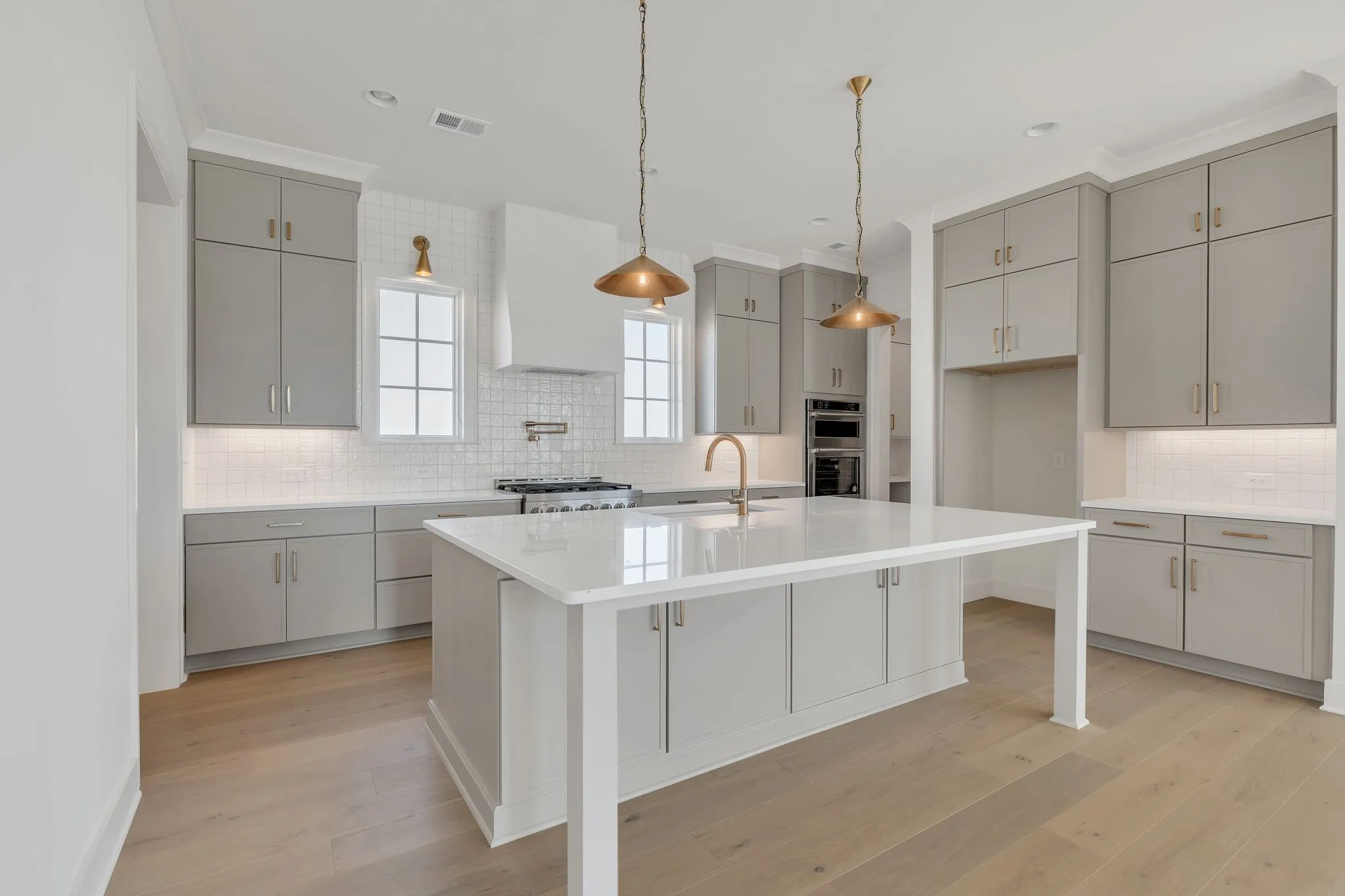 The home features two bedrooms on the main level, including a spacious first-floor owner’s suite with a spa-inspired bath. Upstairs, three additional bedrooms each enjoy direct access to a bathroom, creating comfort and privacy for family and guests alike. Gorgeous plank flooring flows throughout the home, enhancing the light-filled, open-concept layout.