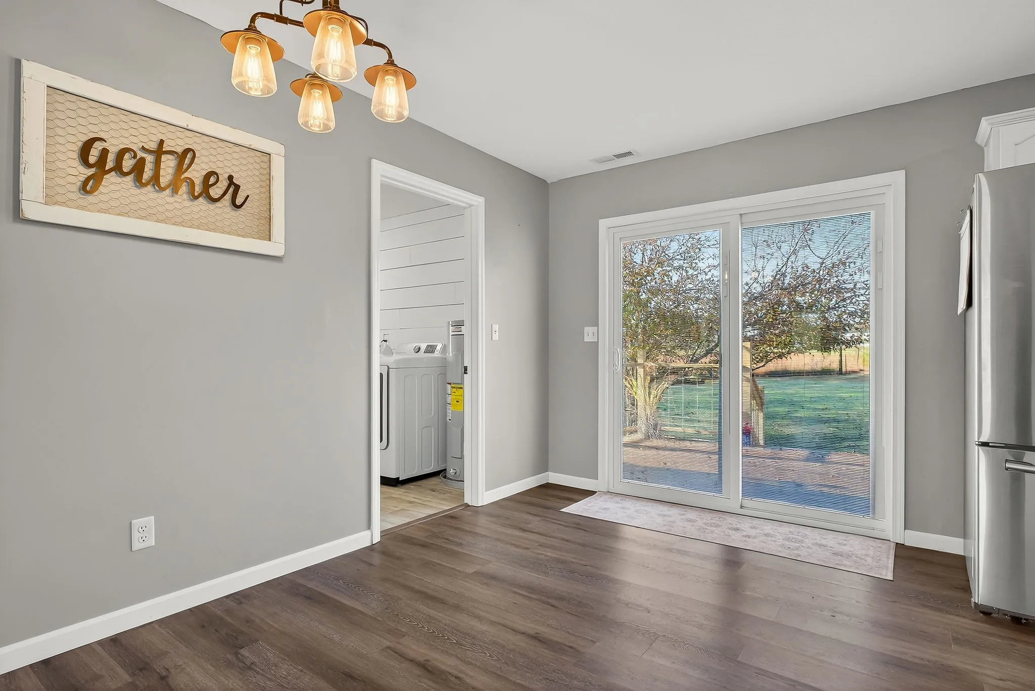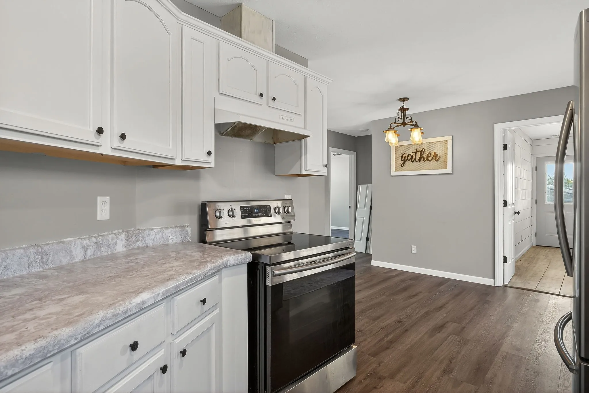 Adorable and move-in ready 3-bedroom, 2-bath home located near the end of a quiet cul-de-sac. This well-maintained property features numerous updates throughout, including a new roof installed in 2023, flooring, paint and more. The home offers a split floor plan layout with no carpet, a spacious laundry room, and a cozy living area perfect for everyday living. Enjoy relaxing or entertaining on the back deck that overlooks a large yard with peaceful farmland views. Additional highlights include a one-car carport and a convenient location just minutes from town but in the county with no city taxes!