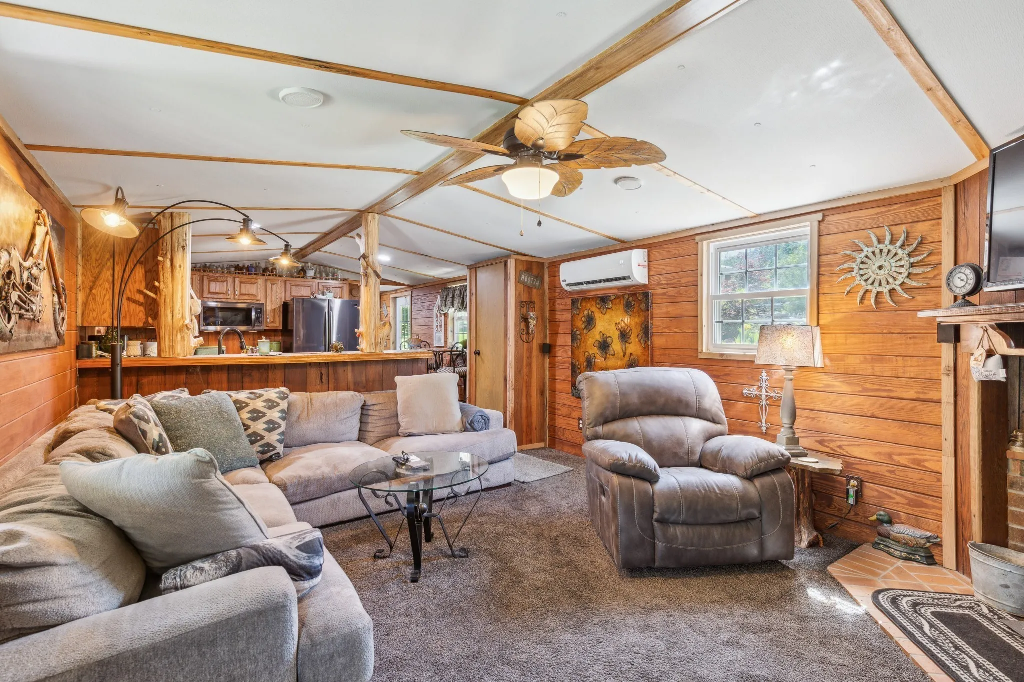 Beautifully landscaped 5.92 acres featuring a custom-remodeled 3 bedroom, 2 bath manufactured home surrounded by hand-hewn rock details and two ponds. The home showcases wood barn doors, solid wood cabinetry, hardwood flooring, new carpet, replacement windows, replacement roof, updated electrical and plumbing, and has been insulated and wrapped in house wrap. Tongue/Grooved exterior and interior walls. Beautiful stoned mailbox at street! Three-bedroom septic system (third bedroom currently used as laundry/utility room).