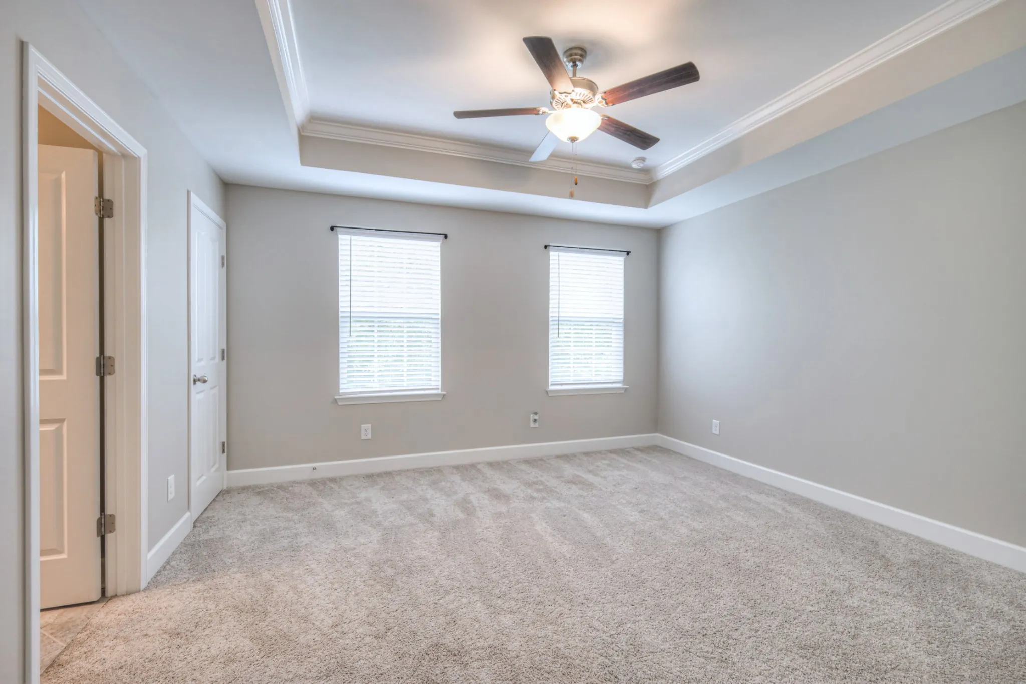 Upstairs, you’ll find two generously sized bedrooms, each with tray ceilings, ceiling fans, extra closets, and full en-suite baths, creating ideal retreats for rest and privacy. Throughout the home, natural light creates a bright, airy, and inviting atmosphere.