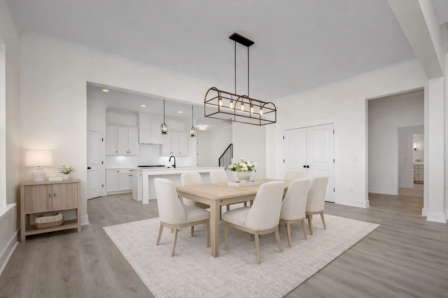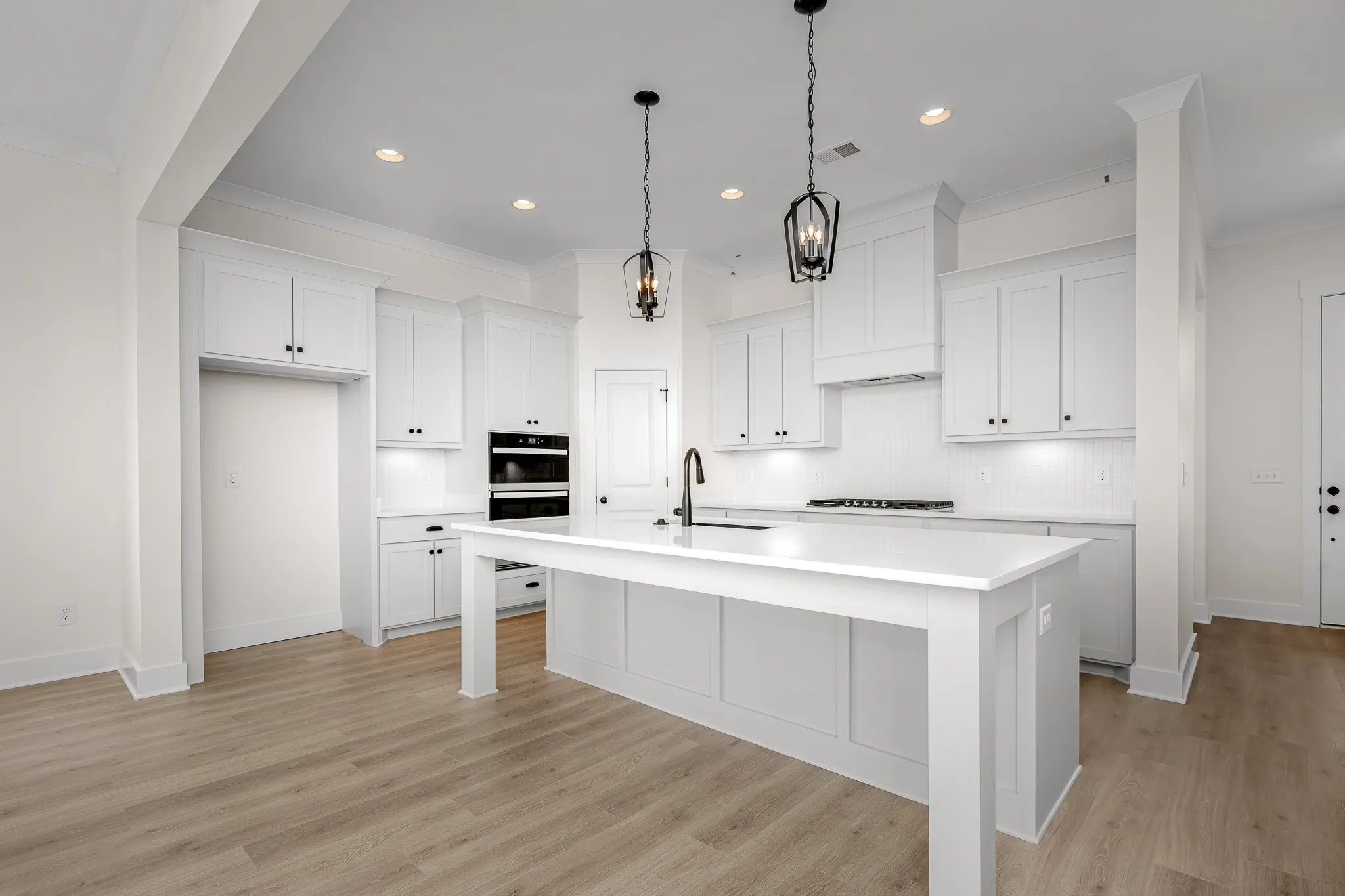 This floorplan – The Bartlett – boasts 5 Bedrooms and 4 Full Bathrooms on a large corner lot in The Maples! There are 2 bedrooms and 2 full bathrooms downstairs with 3 more bedrooms upstairs-1 with its own private bathroom. Built-in shelving, soft close cabinets, and custom trim is found throughout the home. You’ll see 10 ft ceilings on the first floor, a custom built drop zone, and a gas fireplace in the living room. The kitchen has a 36″ gas cooktop, quartz counters, and under cabinet lights. The primary suite has a luxurious bath with a full tile shower. The laundry room off the primary bath adds convenience. The exterior has a side entry garage, covered porch with extended patio, and big backyard. This home is a must see!