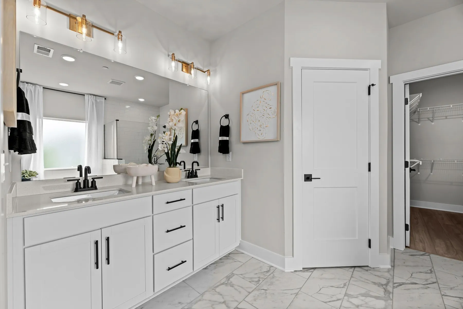 Upstairs, all bedrooms are tucked away for privacy. The owner’s suite has a large walk-in closet and private bath while the other 3 bedrooms are generously sized, and share a secondary bathroom featuring a double sink!