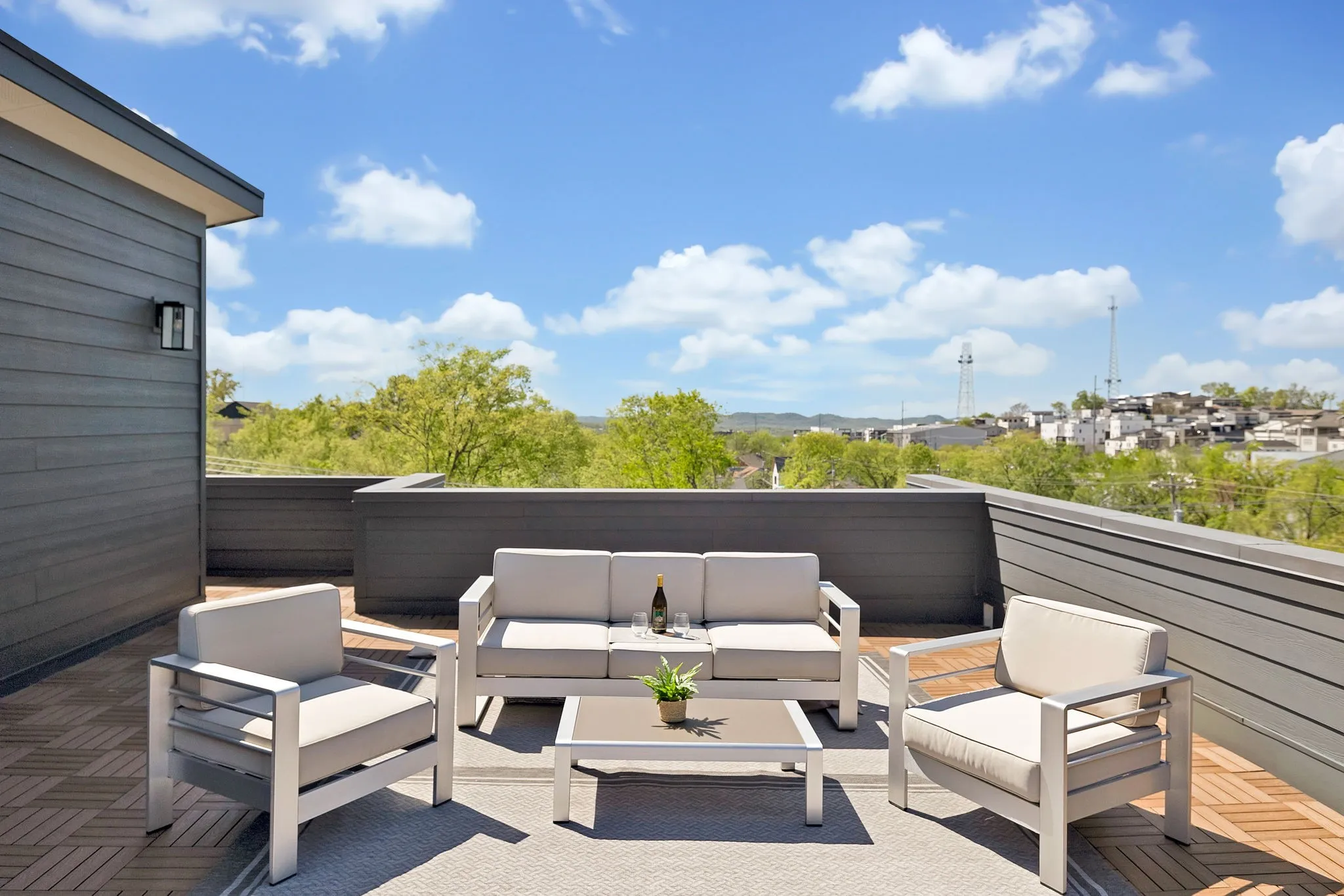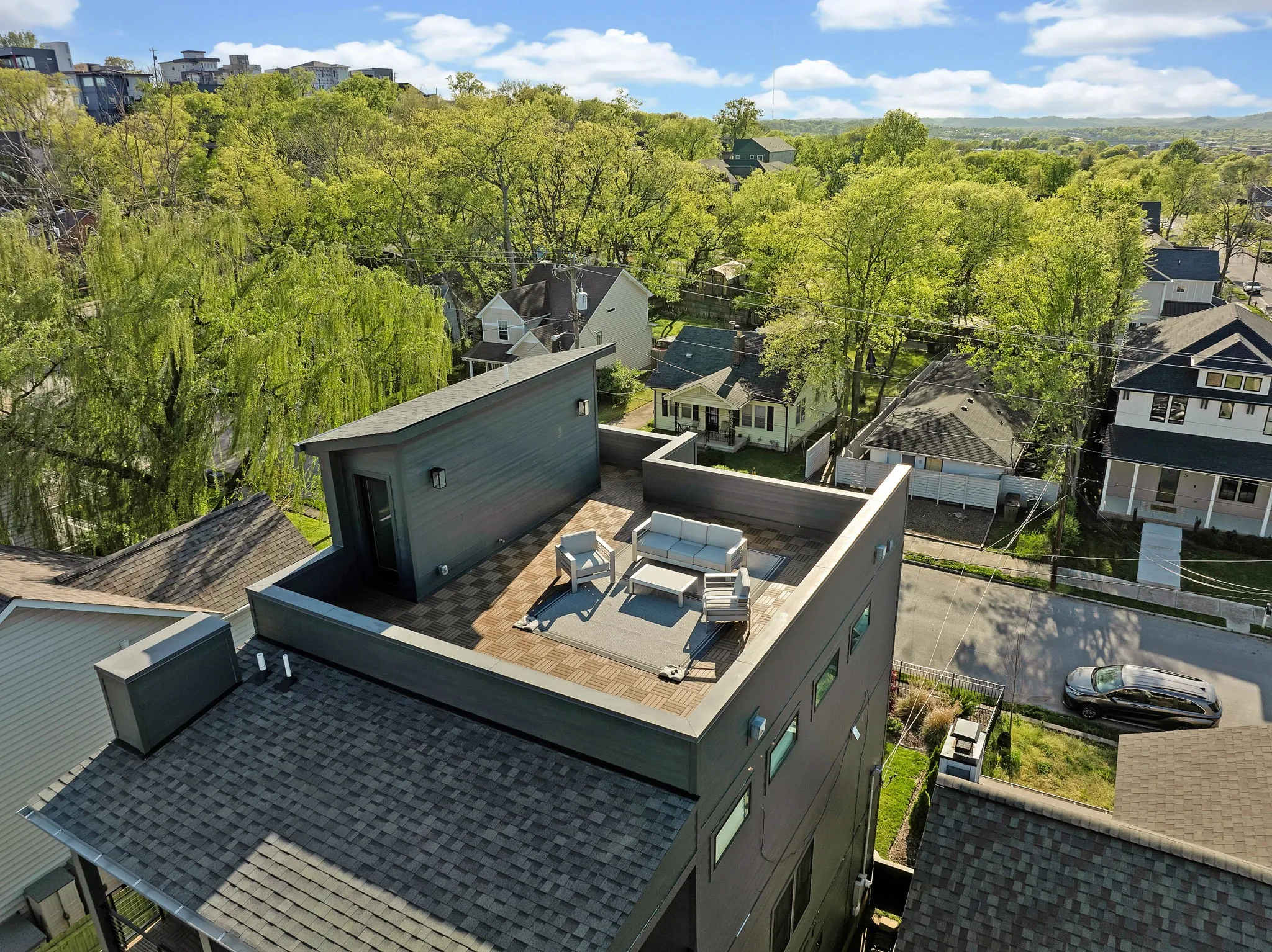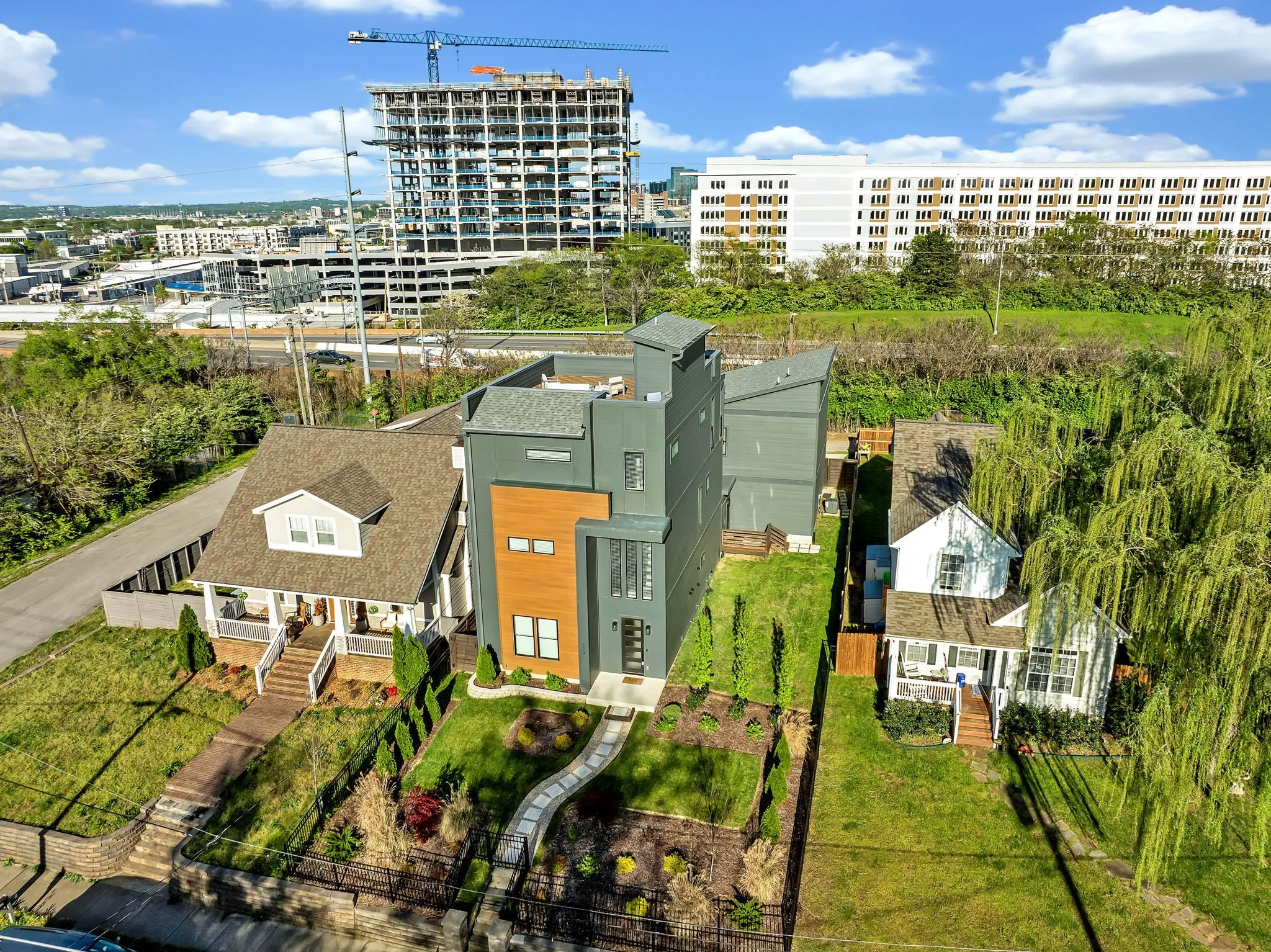 Welcome to this modern & elegant 4-bed, 4.5-bath home located in the HEART of Nashville-COMPLETE with 1 bed apt over garage! Spanning 4010 sq ft, this contemporary residence offers panoramic city views and beautiful gardens.The interior is adorned with a Quartz oversized waterfall island, SS appliances, a 6 burner gas cooktop, double oven/convection microwave, and a walk-in prep pantry,for every gourmet chef’s dream!!Enjoy the convenience of an attached 2 car garage, and included space for more parking in the rear. EMBRACE LUXURY with an outdoor fireplace, a screened patio off the kitchen, a well-appointed laundry room, complete with your own steamer by LG, a primary suite with a walk in closet, gorgeous spa bath with expansive tile shower and heated flooring!The home boasts an EXPANSIVE ROOF TOP DECK perfect for entertaining, an entertainment bar complete with wine chiller,sink,quartz countertop,& custom backsplash! Don’t miss the opportunity-LESS THAN 3 MILES FROM DOWNTOWN!!!
