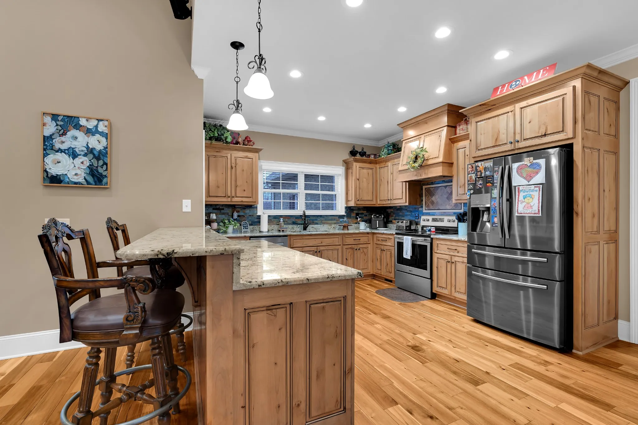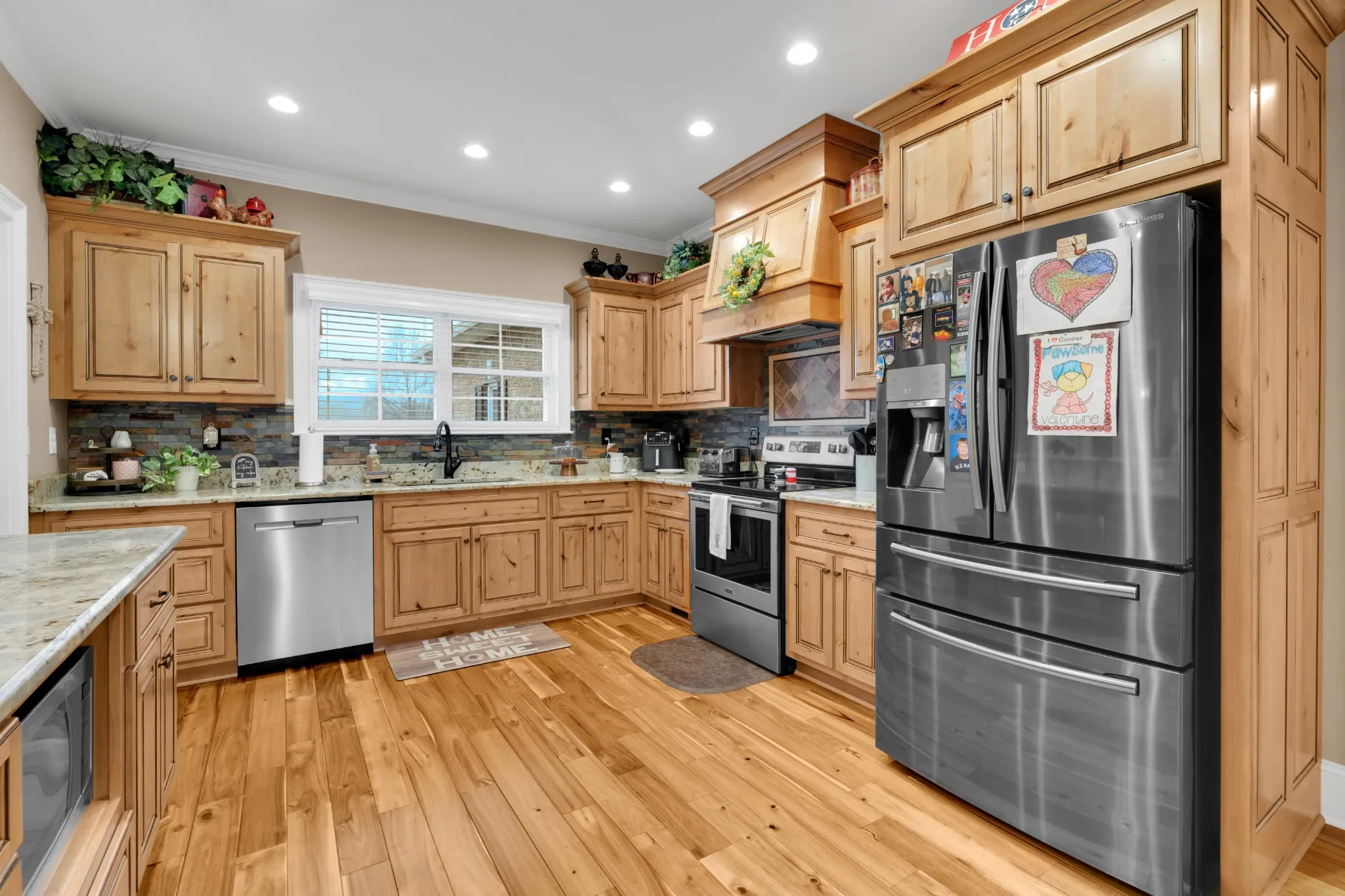 WOW!! Designed with outside entertaining in mind, this incredible property is where summer memories are made and weekends turn into staycations. Sitting on 3.45 beautiful acres, the setting offers privacy, room to roam, and breathtaking landscaping that feels like your own private resort. The Showstopper!! A large in-ground saltwater pool ready for cannonballs, quiet swims, and unforgettable pool parties. Just steps away, the pool house with a full bath and storage makes hosting effortless. Love to cook and gather? The fully equipped outdoor kitchen creates the ultimate entertaining space. From grilling for game day to hosting elegant evening dinners around the outdoor fireplace, this space was built for connection. Inside, you’ll find warm rich hickory cabinets that add character and timeless appeal. Granite countertops, SS appliances, hardwood/tile flooring, and crown molding accent the home beautifully. And for those who need space for hobbies, toys, or a workshop-the impressive 1,664 sq ft detached shop offers endless possibilities. With an abundance of concrete for parking and entertaining, plus stunning, thoughtfully designed landscaping, every inch of this property was crafted for functionality and beauty. This isn’t just a home… It’s the place everyone will want to gather. Some extra’s include encapsulated crawlspace, walk-in pantry, wired insulated shop, and custom built.