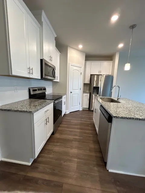 This charming 3‑bedroom, 2.5‑bath townhouse offers the perfect blend of comfort and convenience. The modern kitchen features sleek stainless steel appliances and plenty of counter space, making meal prep a breeze. The living room, kitchen and dining room has LVP flooring. Upstairs, the master suite includes a spacious walk‑in shower and a double vanity for added comfort and functionality. The home also includes an in‑unit washer and dryer for everyday ease. This warm and inviting layout makes this townhouse an ideal place to call home.