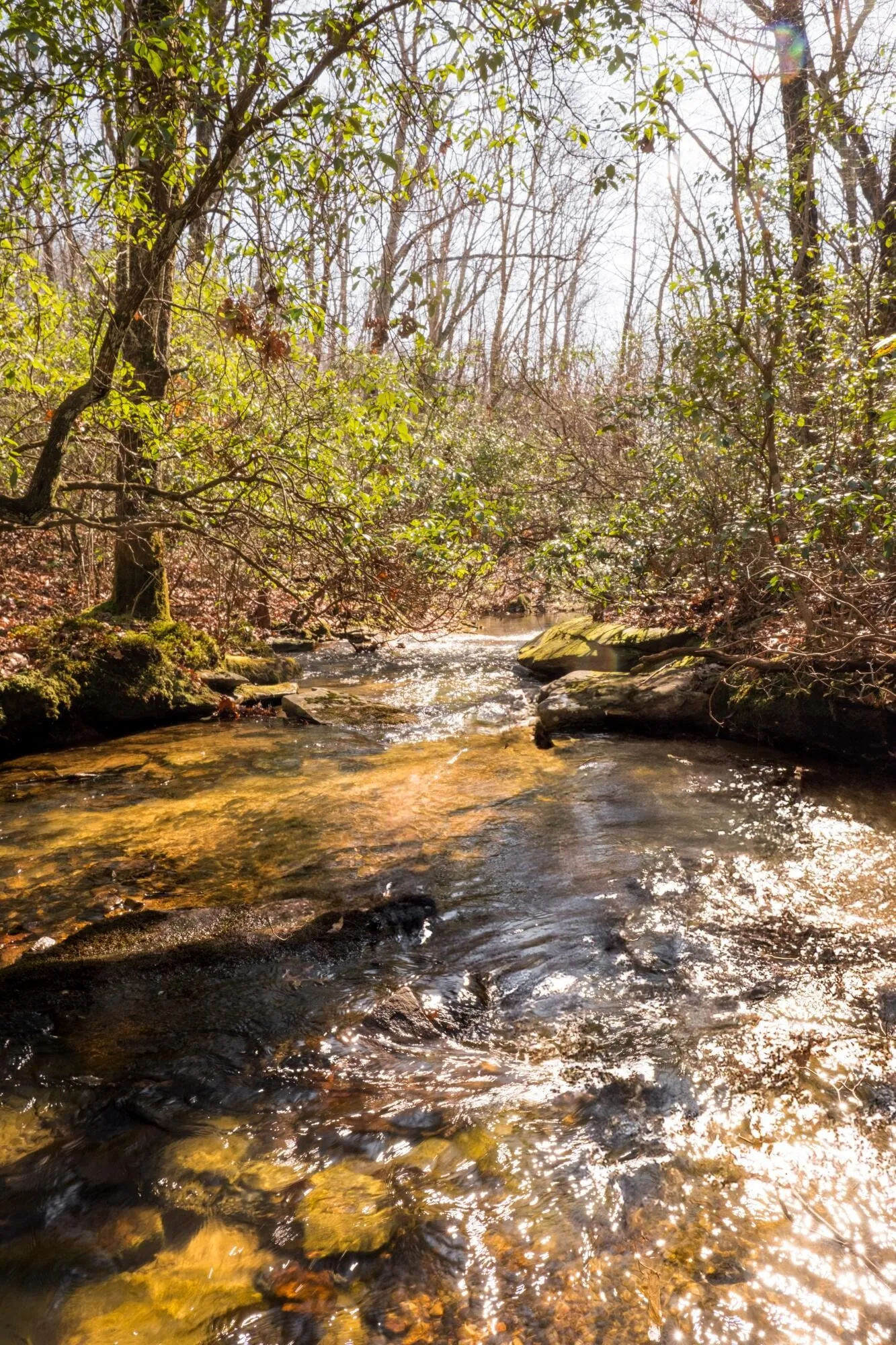Water features enhance the property, including two clear-water mountain lakes of 1 and 1.5 acres, serving as focal points, with space for future lakes. Meandering creeks framed by mountain laurel wind through the land, adding serenity and ecological richness.