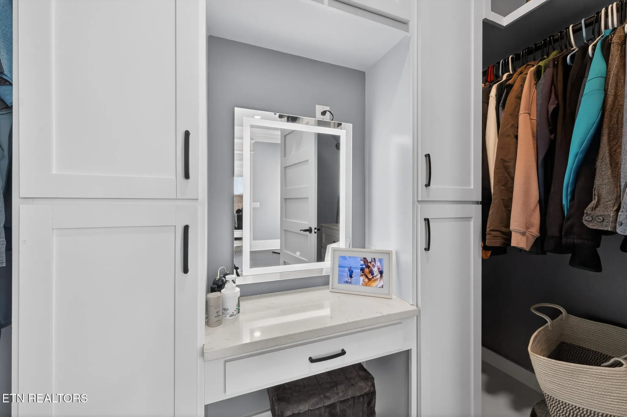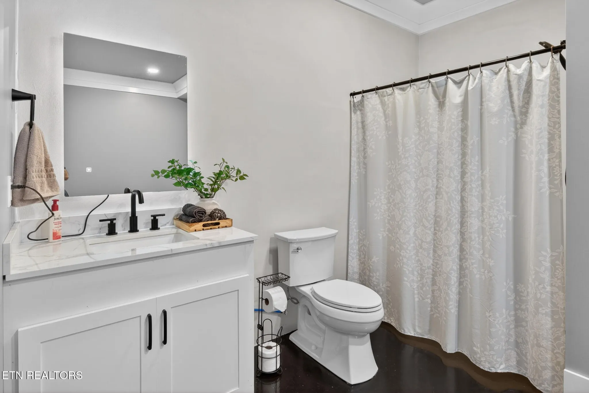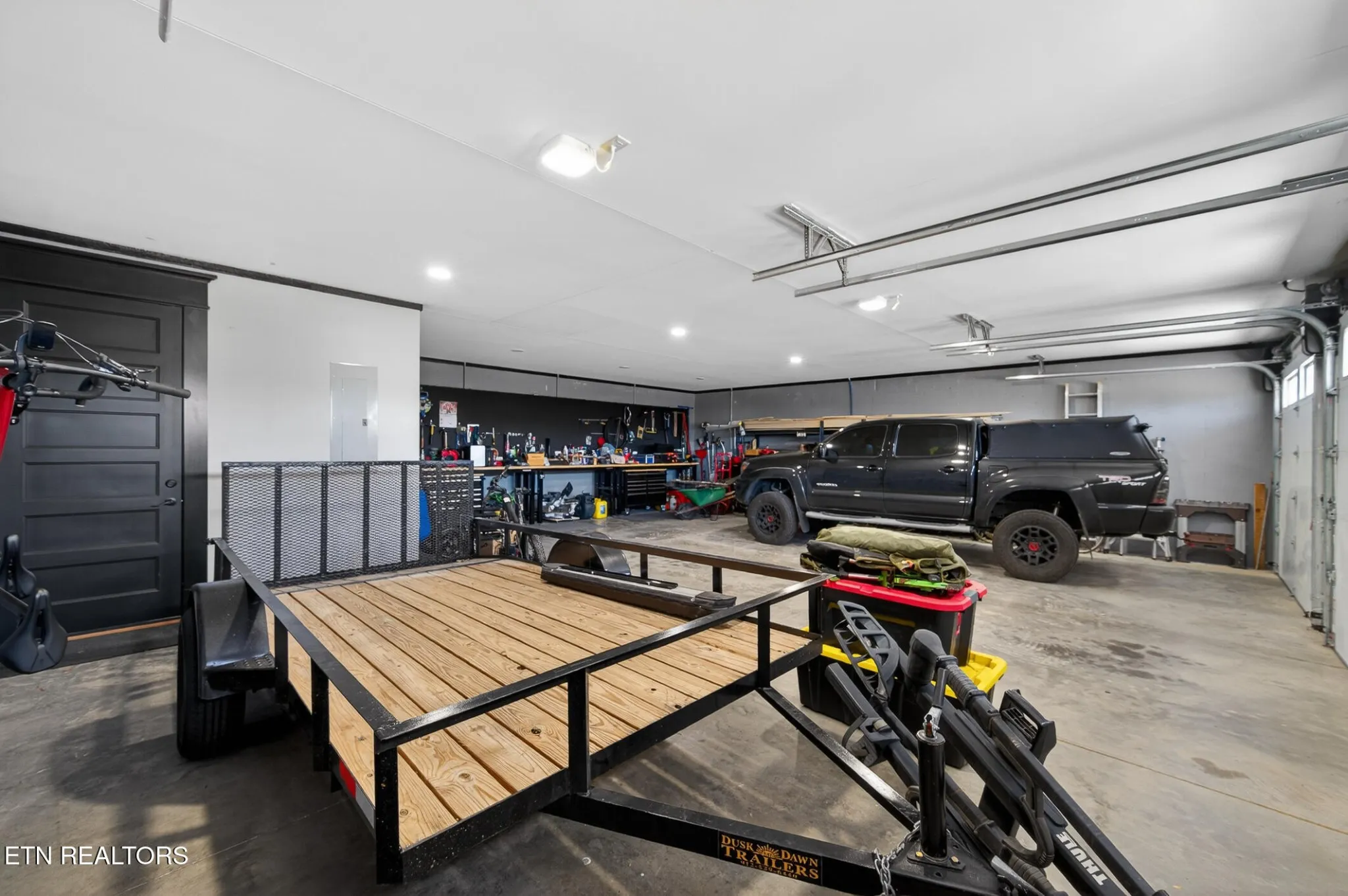 The primary suite offers a spa-like ensuite with dual vanities, marble tile walk-in shower, built-in makeup vanity, walk-in closet, and smart mirrors in every bathroom. Built-ins, recessed lighting, and a hidden office nook add thoughtful touches. The partially finished basement continues the modern aesthetic with glossy concrete floors and includes a large laundry/utility room, full bath, and extra storage. An oversized three-car garage with large doors and dedicated workshop space is ideal for projects and hobbyists. Efficient systems include a hybrid heat pump and 24 SEER HVAC. Centrally located about 15 minutes from both Jefferson City and Morristown — modern comfort, smart systems, and plenty of space on a serene one-acre lot. Schedule a tour today.