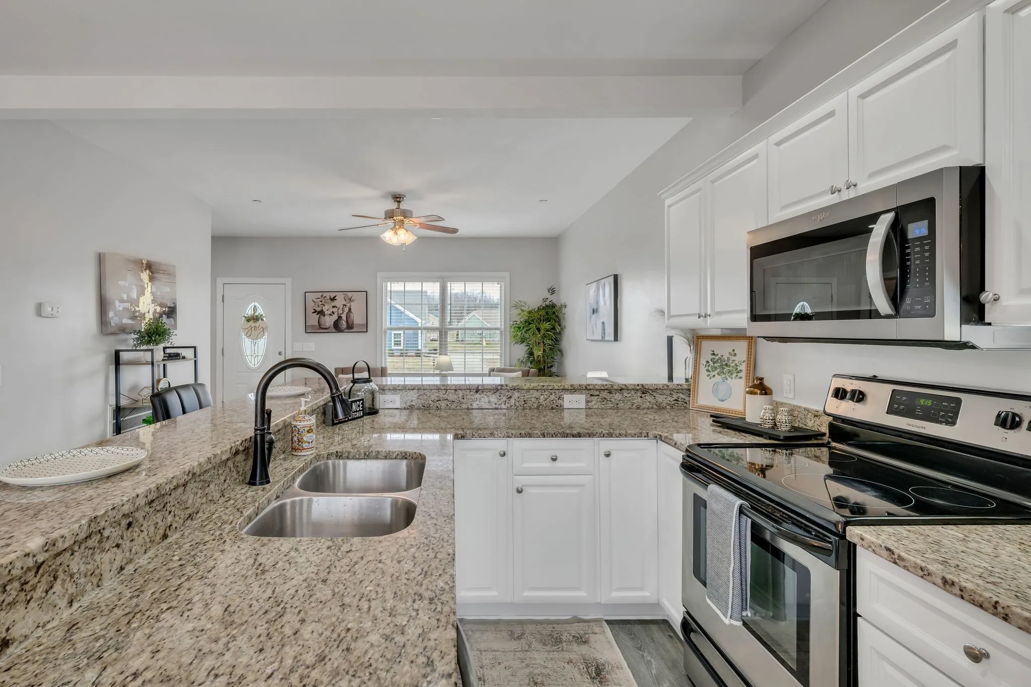 The kitchen is a chef’s delight with granite countertops, a brand-new refrigerator, microwave & dishwasher.. Also plenty of cabinet space, Fresh interior paint creates a clean, move-in ready feel.