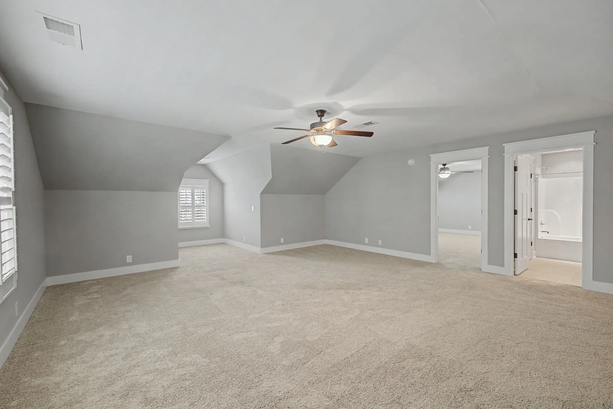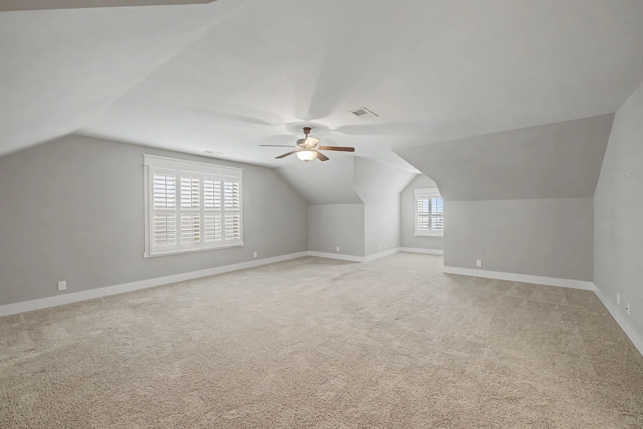 Charming architectural cottage-style home with 3 bdrms, 3 full baths with spacious rooms throughout. Plantation shutters make a great first impression when entering the home. Plantation shutters continue in the upstairs bonus room & third bedroom. Open kitchen w/large island, granite counter tops, kitchen flows into the den area with a searing tray ceiling & gas fireplace. New carpet in primary bedroom & front downstairs bdrm./office, finished wood floors in main living areas. Kitchen includes all appliances plus washer and dryer remain in the utility room. Ample space in the primary bedroom & bath with selective shelving in the closet. Tankless hot water heater and automatic lighting in pantry & supply closet added for convenience.