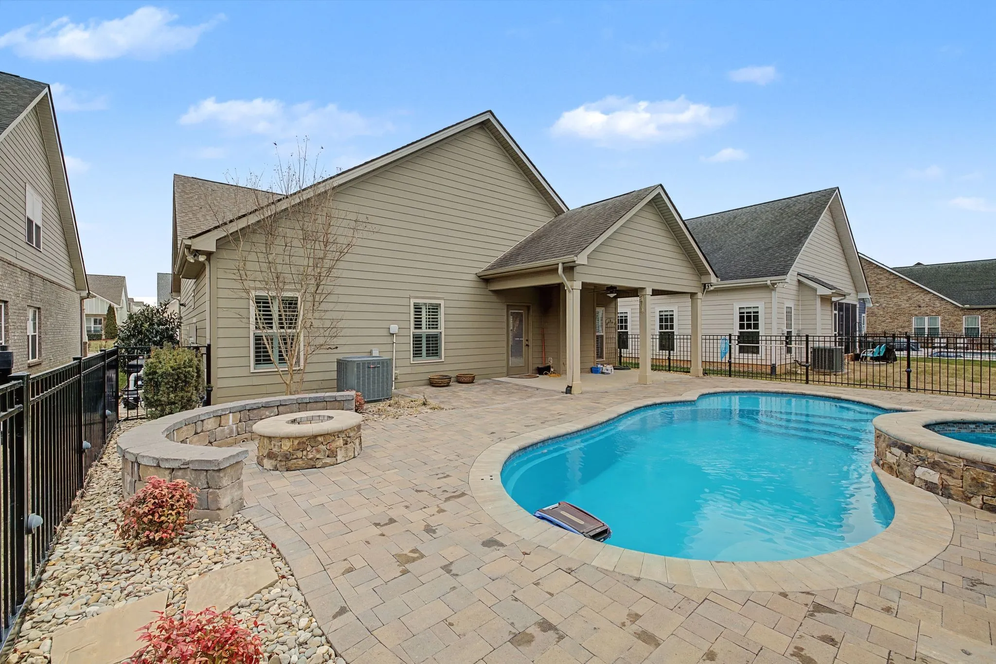 Enjoy the backyard with covered patio, in-ground pool, fire pit, & fence w/lighting-perfect for entertaining. HOA maintained lawn. Metal storage bins in the garage. Close to shopping, restaurants & convenient drive to Franklin and accessibility to I-24