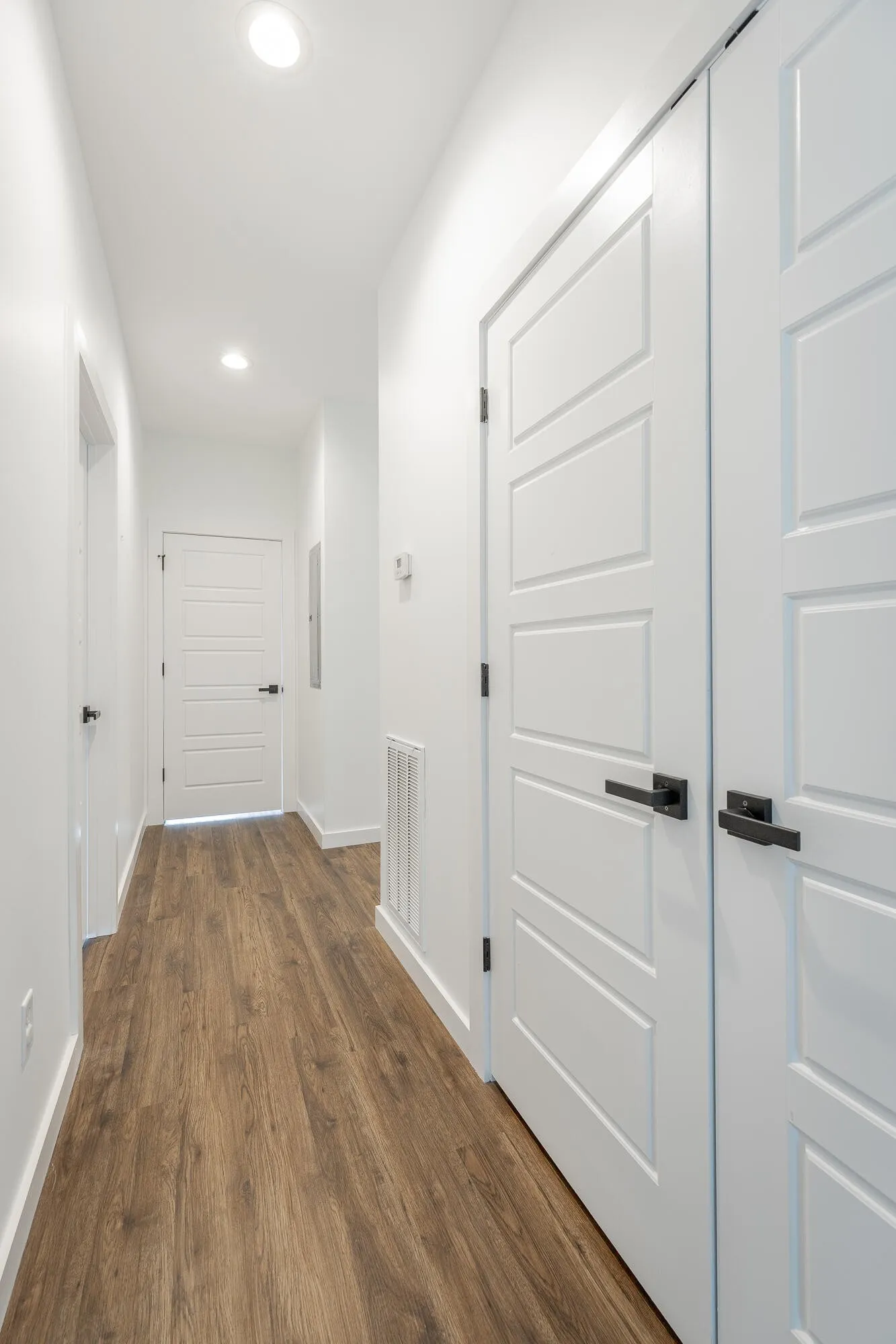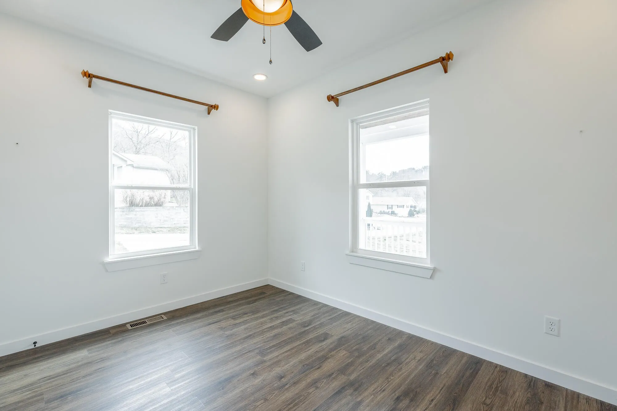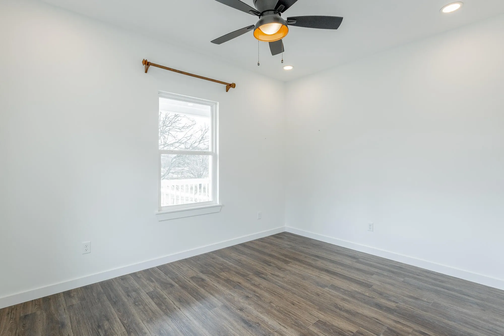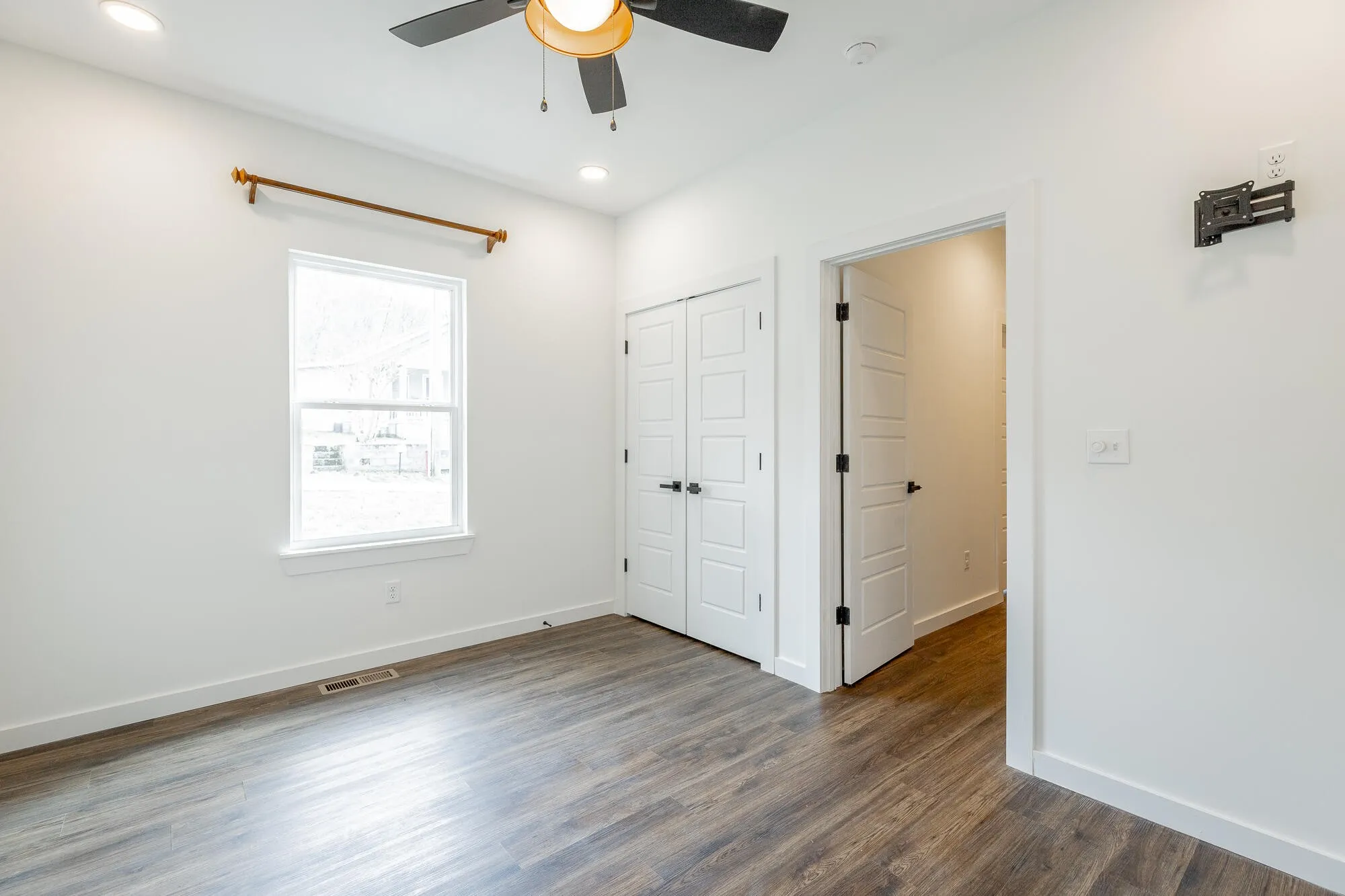 The kitchen overlooks the main living space and features quartz countertops and custom cabinetry, creating a functional and stylish heart of the home. Each bedroom is equipped with ceiling fans and additional recessed (canned) lighting, adding comfort and a thoughtful touch throughout.