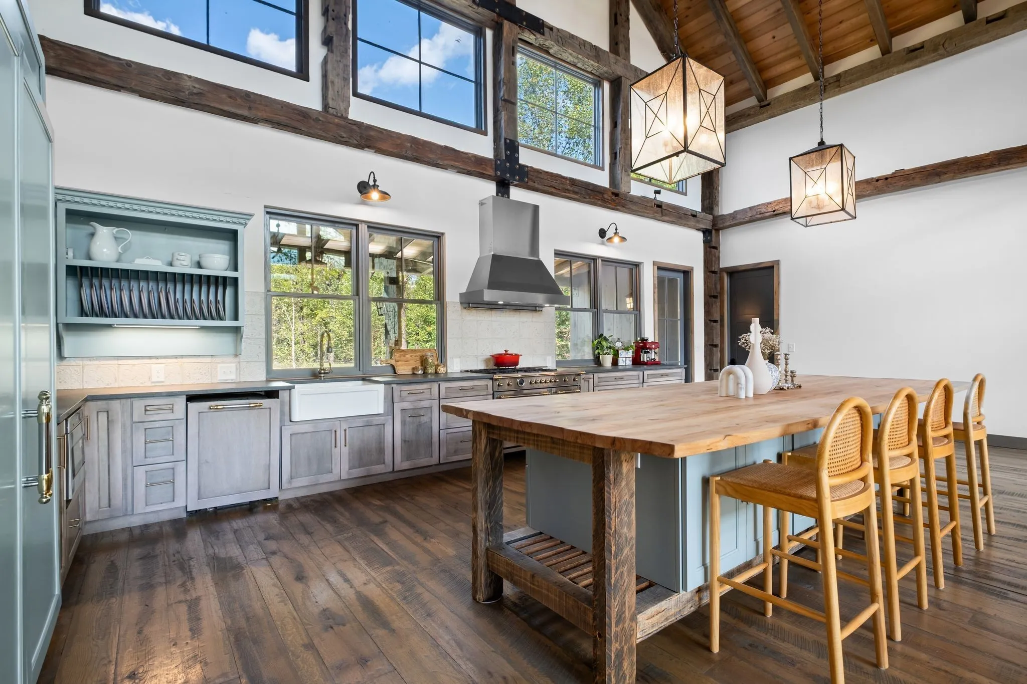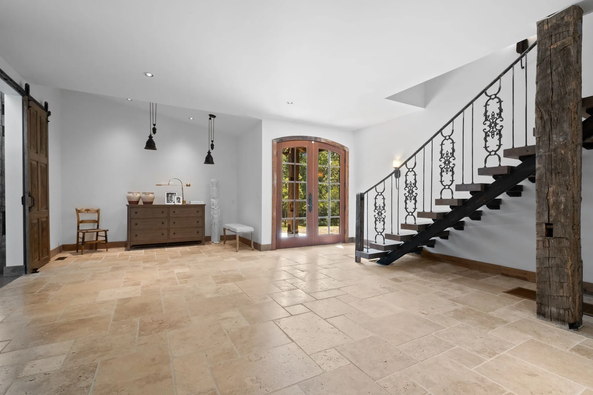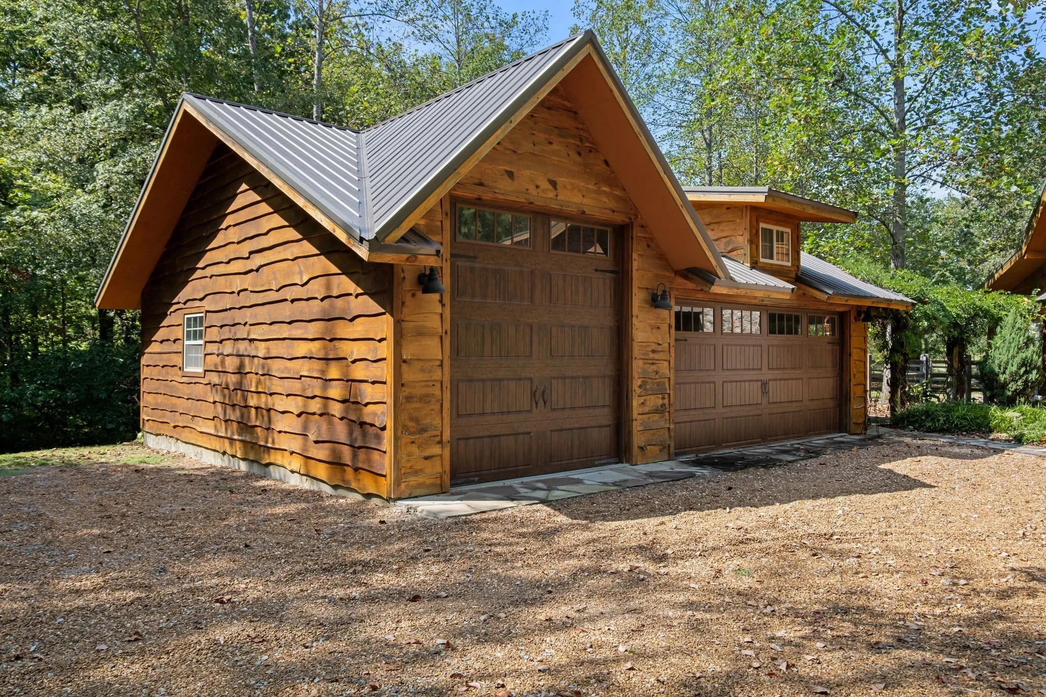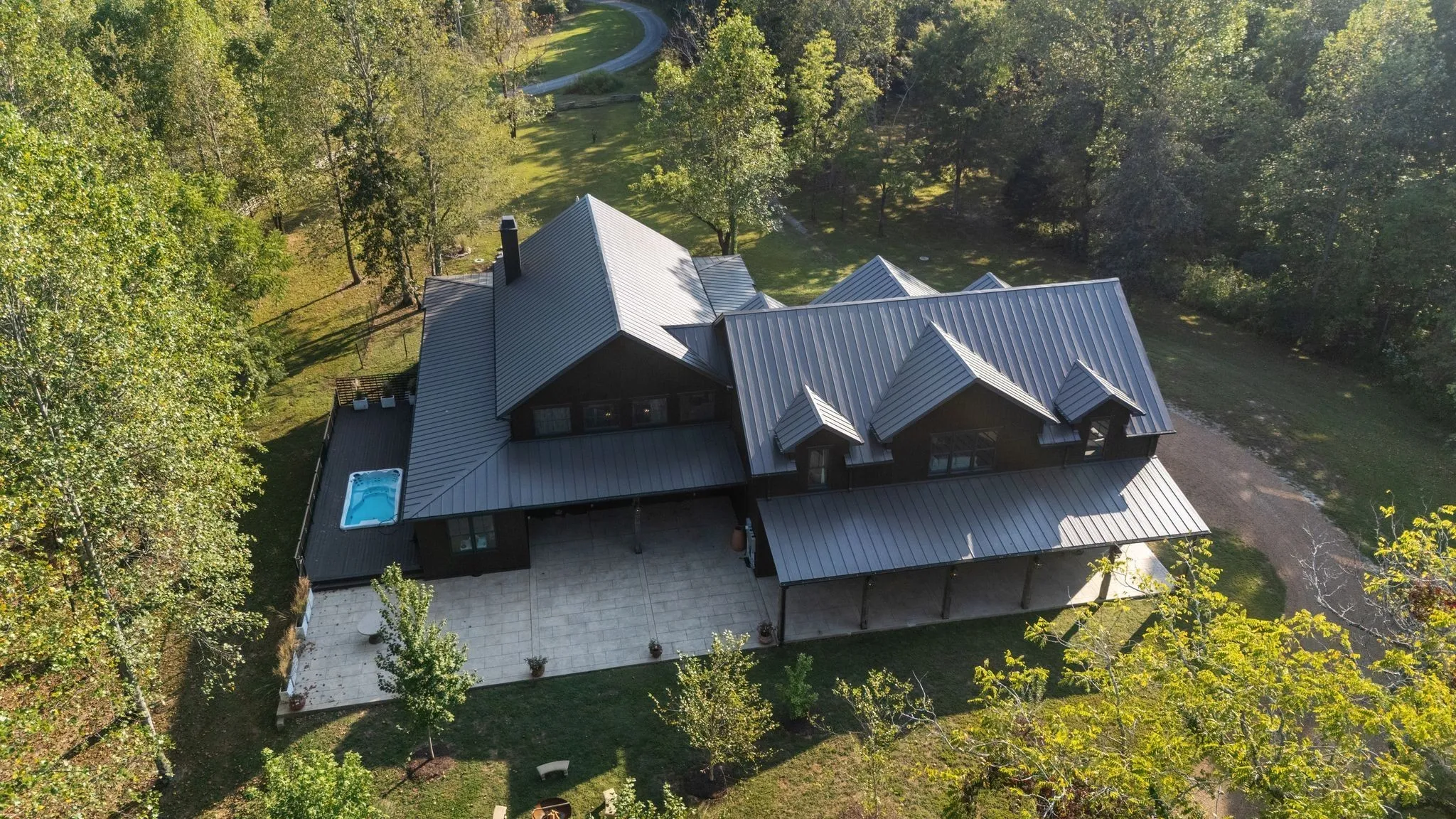 A captivating and remarkable rustic retreat on 13.88 acres in the rolling Tennessee hills, featuring two beautifully crafted homes with a combined 7,975 square feet of refined living. A rare opportunity for multigenerational living, guest accommodations or a tranquil personal escape. The 5,371 square foot primary residence welcomes you into a breathtaking ballroom style great room with soaring 28 foot ceilings, 150 year old Montana timber beams and sunlight pouring in from every angle. The chef’s kitchen with Bertazzoni appliances and a thoughtfully designed scullery makes entertaining feel effortless as gatherings flow out to the terraces. Terracotta stone and Restoration Hardware chandeliers elevate the home with understated elegance. The main level offers a serene primary suite framed by century old Indian teak doors and a spa inspired bath. A second bedroom on this level is ideal for guests or a dedicated office. Upstairs, three spacious bedrooms including an additional suite are complemented by a large studio filled with natural light that can serve as a creative space, lounge, office, or extra bedroom. Outdoor living shines with generous porches and terraces totaling 1,500 square feet, complete with a relaxing swim spa that overlooks the wooded landscape and starry skies. Across the property, a charming 2,604 square foot second residence rests on its own 6.88 acres. It features a sunlit morning room, a commercial Wolf kitchen, a main floor suite, and peaceful views of open meadows protected by the Tennessee Land Trust, ensuring lasting privacy and quiet. Together, these homes create a private sanctuary where thoughtful design, comfort, and nature come together. Every corner invites you to slow down, breathe deeply and enjoy the beauty of peaceful living.