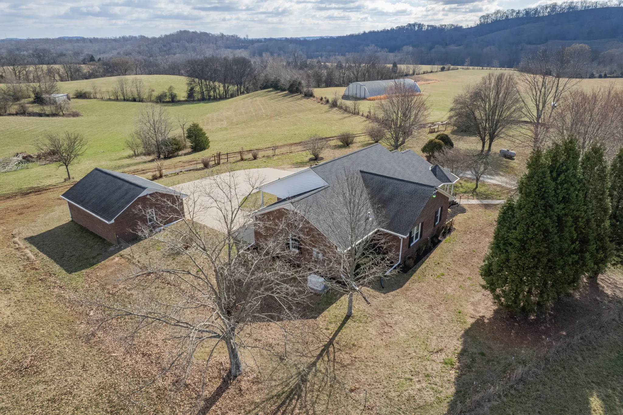 The land is mostly open and gently rolling — ideal for horses, livestock, gardening, or simply enjoying wide-open Tennessee views. There’s a detached garage, a large storage building for equipment or hobbies, and ample space for trailers, tractors, and recreational vehicles.
