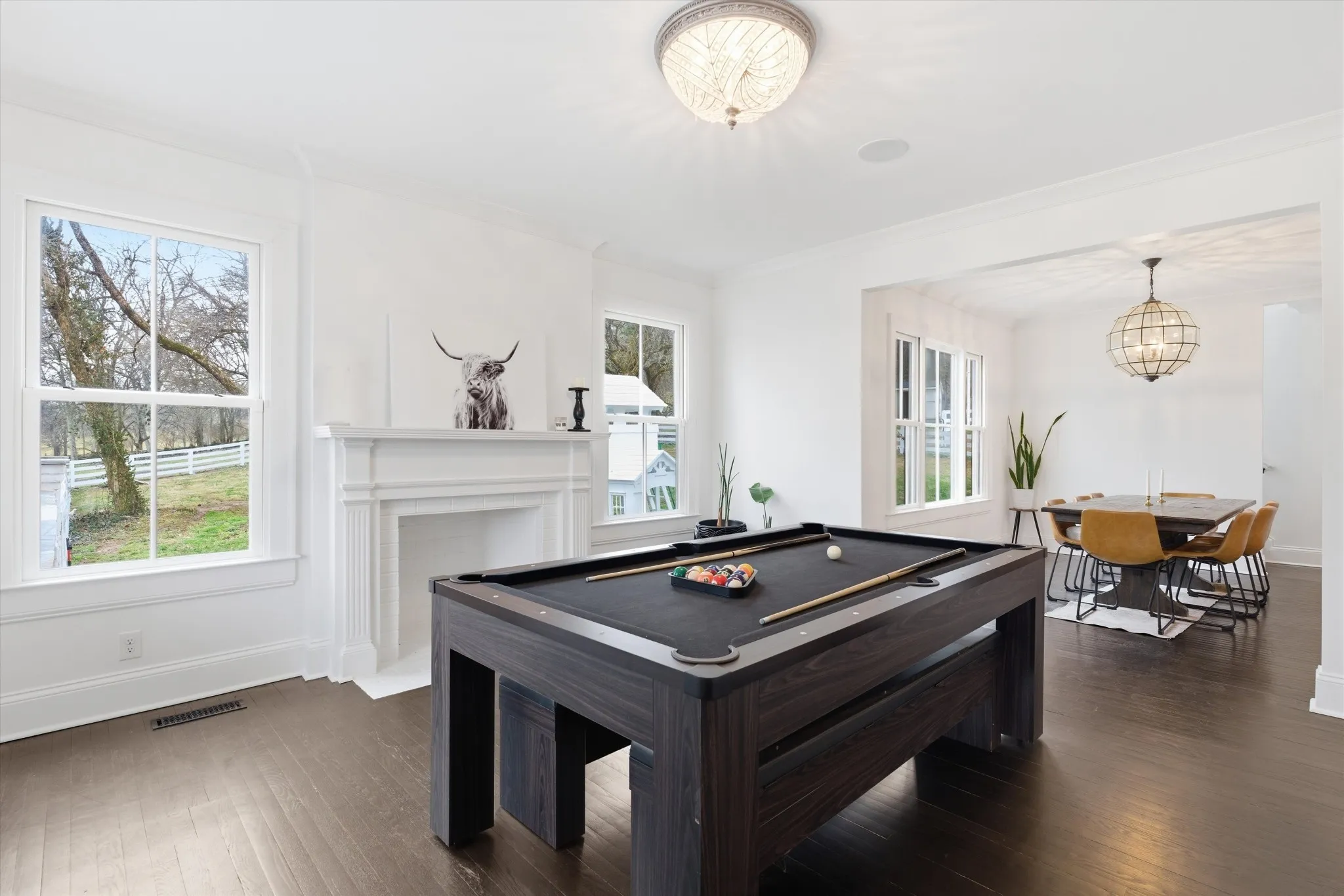 Luxury dream modern farmhouse estate in the heart of historic Franklin, TN. This modern farmhouse is a rare find in one of the most prestigious parts of Williamson County set on nearly 10 acres with breathtaking views, mini highland cows and unmatched privacy. This stunning 6,454 sq ft home offers 5 beds, 5 baths, soaring living spaces, multiple fireplaces, and premium custom finishes throughout.