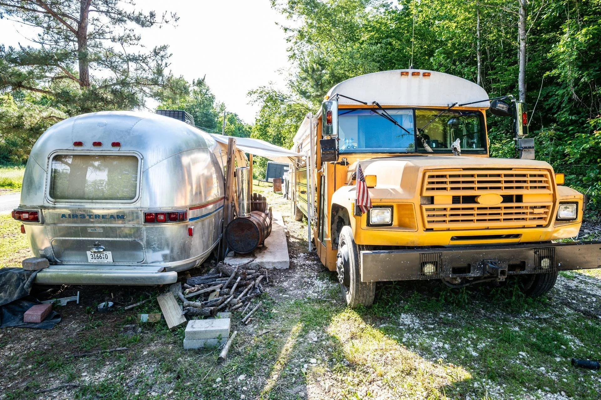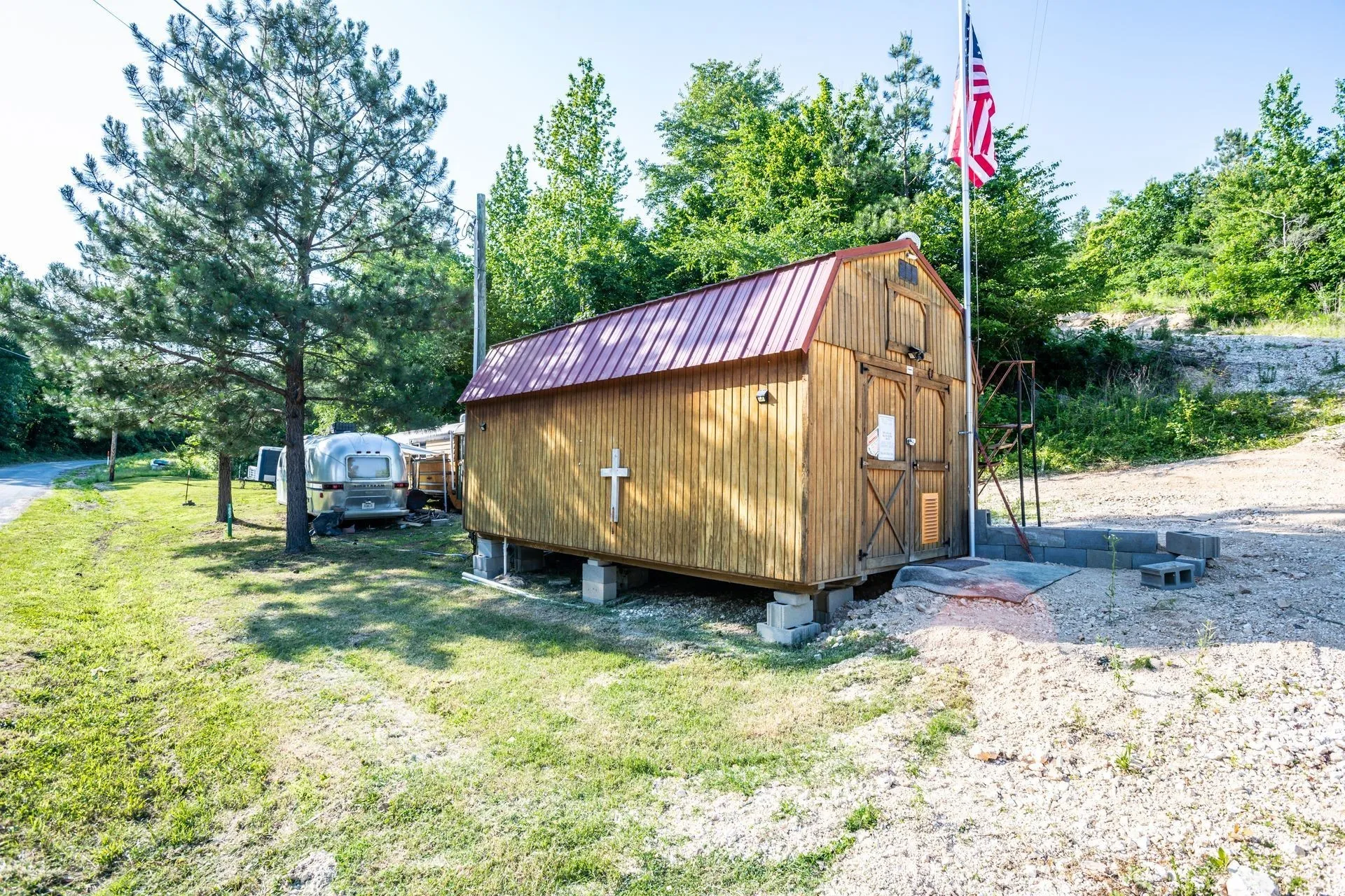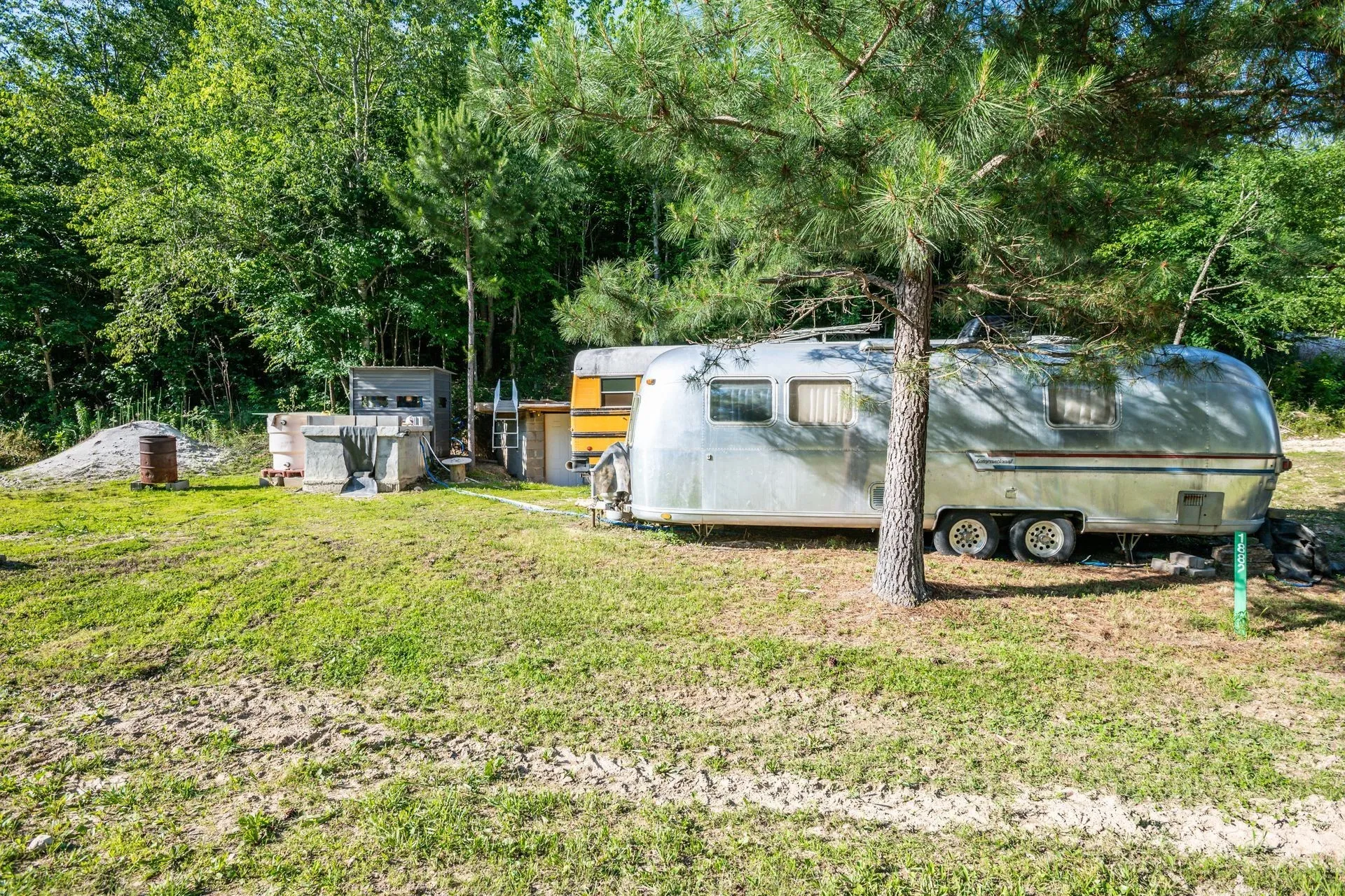 No restrictions on this 12.78 acreage parcel with a wet weather creek. The views from the top are gorgeous! Well on site. Electric on site on top of hill and at road. This gorgeous property comes with a graded driveway, a 1978 Airstream (in really decent condition), a nice, 38ft pop out RV at the top of the hill on the cleared acreage, a conversion school bus, a large shed with a full bath and laundry room conversion, a well house and a storage shed/storm shelter. Septic tank installed at top of hill but not hooked up and no soil report has been done. Partially wooded lot. County only taxes. The perfect spot to build an off-the-grid property or build a dream home at the top with fantastic views. Everything has been done, just bring your dreams! Need a 4 wheel drive to access the top of property. Will take cash, a land loan or construction loan to purchase.