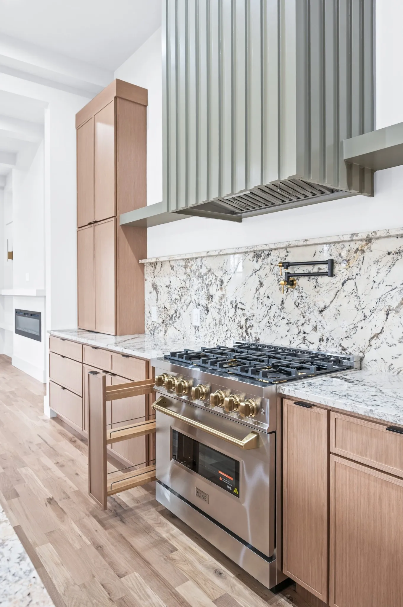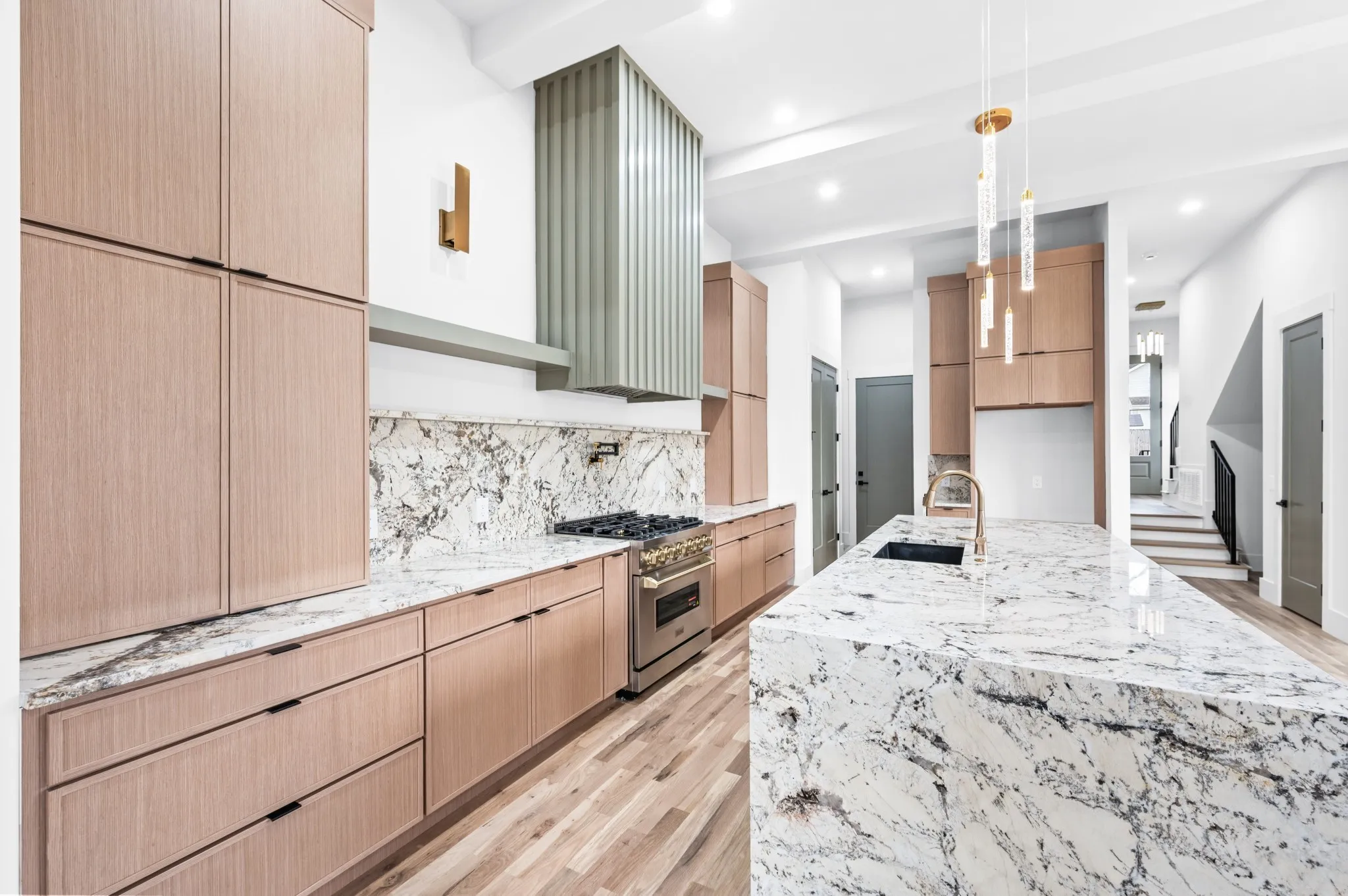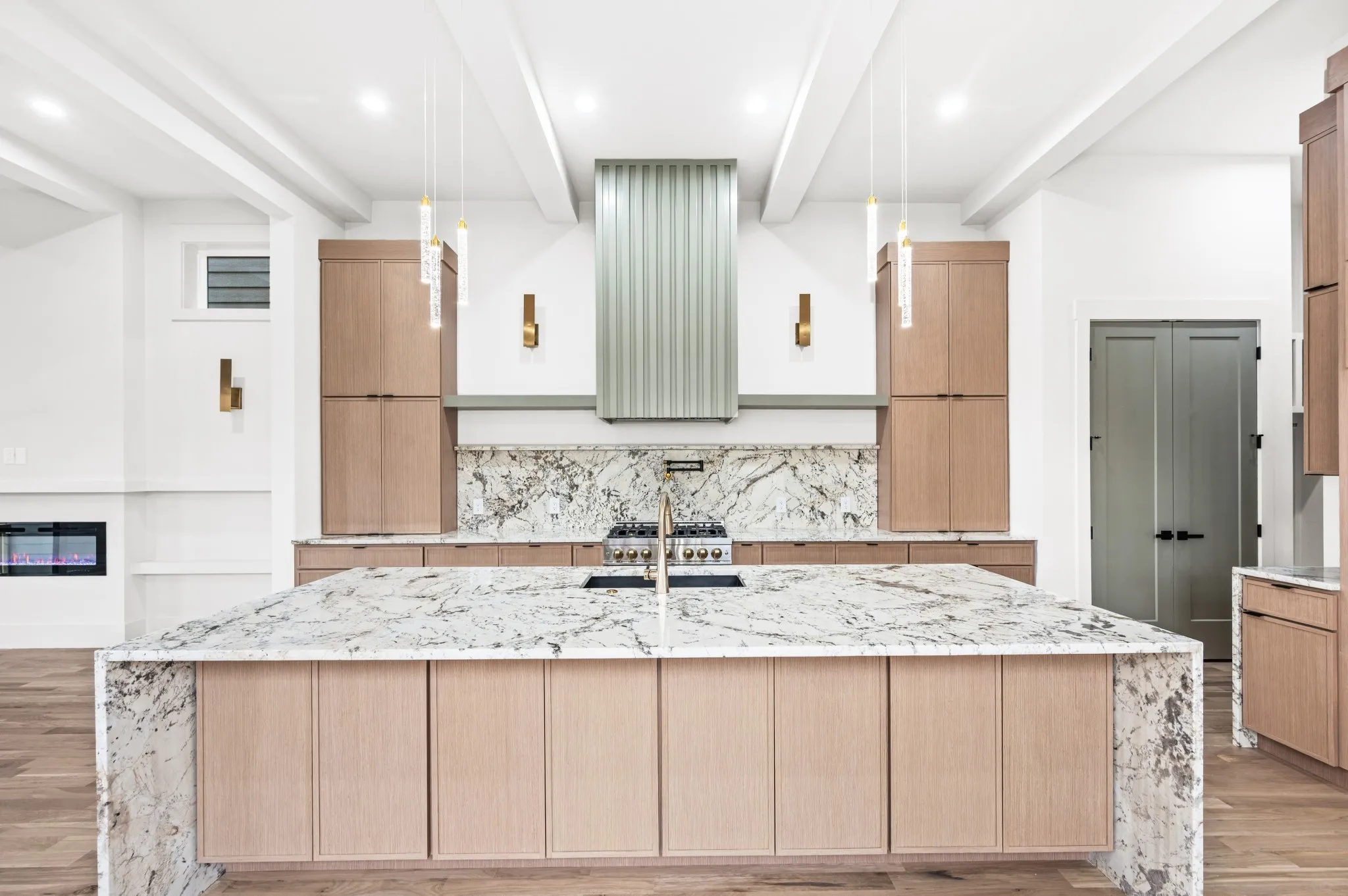 The heart of the home is a beautifully appointed kitchen featuring sleek cabinetry, premium appliances, and a spacious island perfect for entertaining or everyday living. Flowing seamlessly into the living and dining areas, the space is ideal for hosting gatherings or enjoying quiet evenings at home.