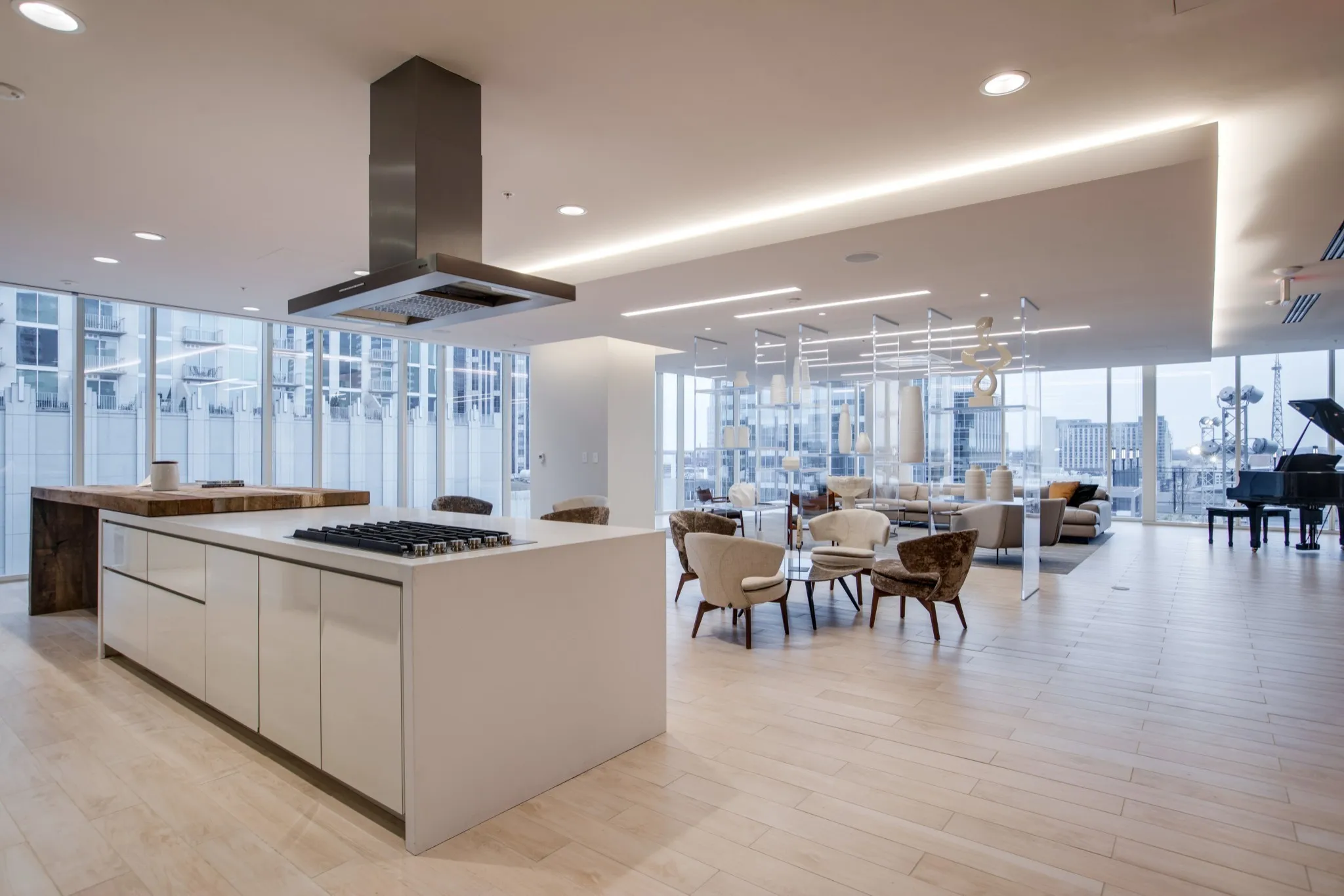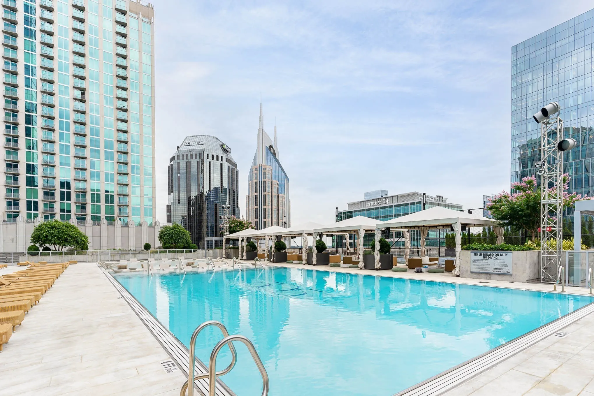 The living space is thoughtfully arranged to maximize both comfort and the dramatic view, creating an ideal setting for entertaining or enjoying a quiet night above the city. Every detail reflects the polished style expected in one of downtown Nashville’s premier high rise buildings.