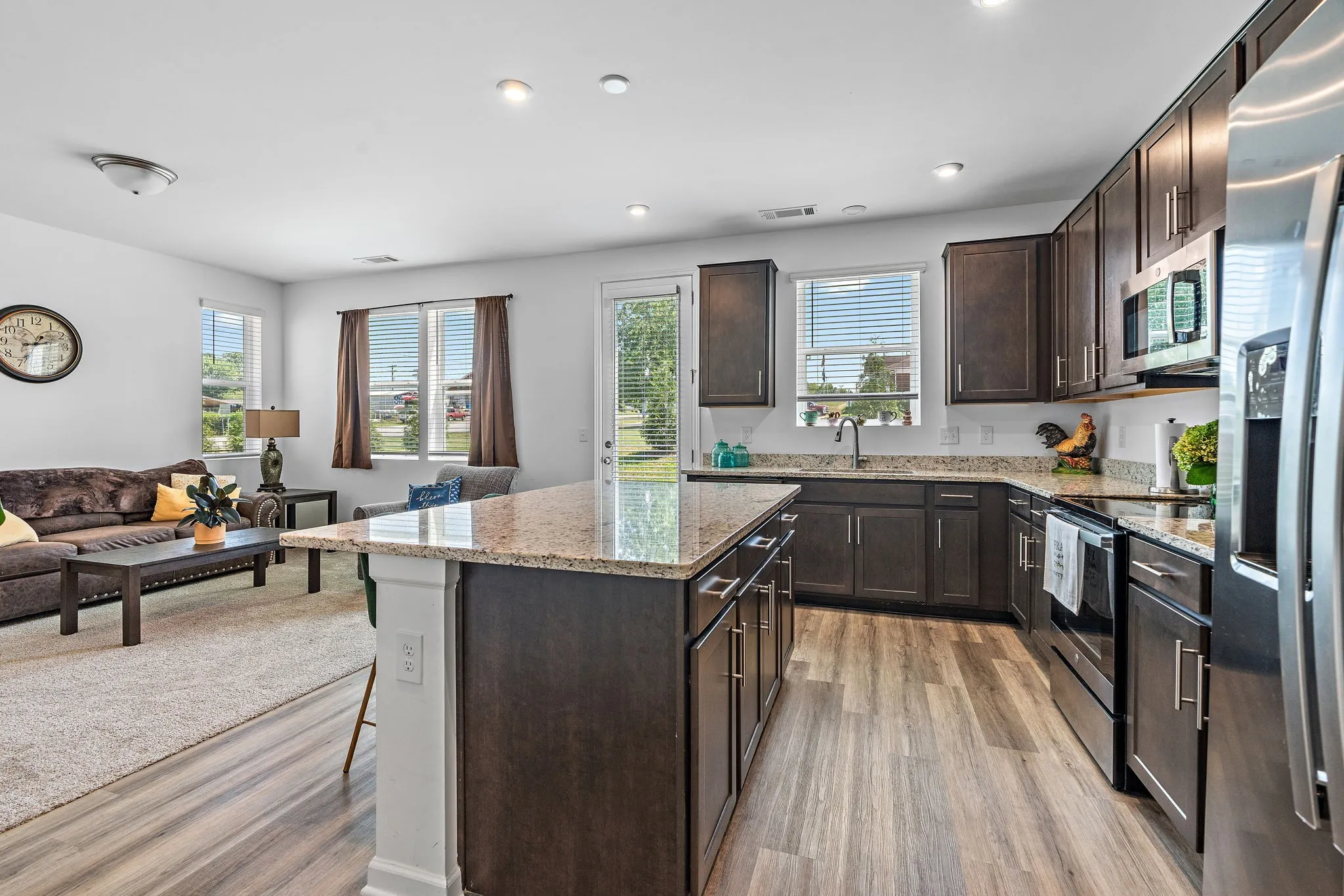 Want a house that’s close to everything? This house is what you are looking for. You can see the grocery store, bank and so much more in your neighborhood. It’s minutes to Montgomery Bell and a straight shot into Bellevue/Nashville/Dickson. It has had only one owner, who has maintained it in immaculate condition. It has an open concept on the first level and the owners’ suite upstairs. The neighborhood has underground utilities. As you enter, you’ll notice the open layout, clean walls, and extra windows that allow for an abundance of natural light. The living room opens onto a 12×8 patio—perfect for grilling and outdoor entertaining. The kitchen offers ample countertop space and plenty of cabinets for storage, along with a spacious pantry. Upgrades include luxury vinyl plank flooring, plush upgraded carpeting, granite countertops, and ceramic tile in the bathrooms. Additional features include a stainless-steel refrigerator, blinds throughout, and a washer and dryer (be sure to include these in the offer if desired). If you’re looking for a like-new construction home without the wait, this is the perfect choice. To find the new neighborhood, put in F&M bank, White Bluff, Tn into your maps.