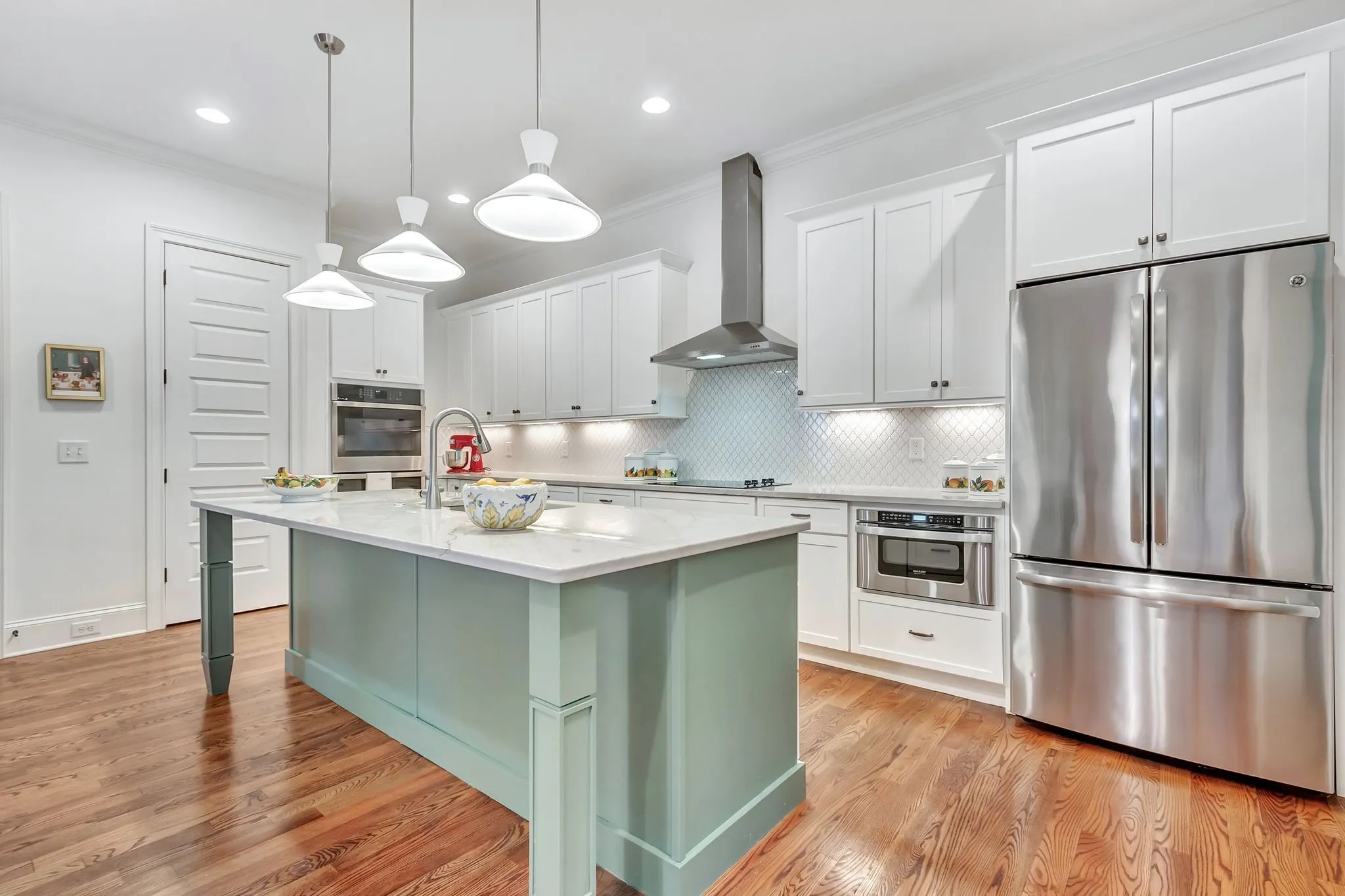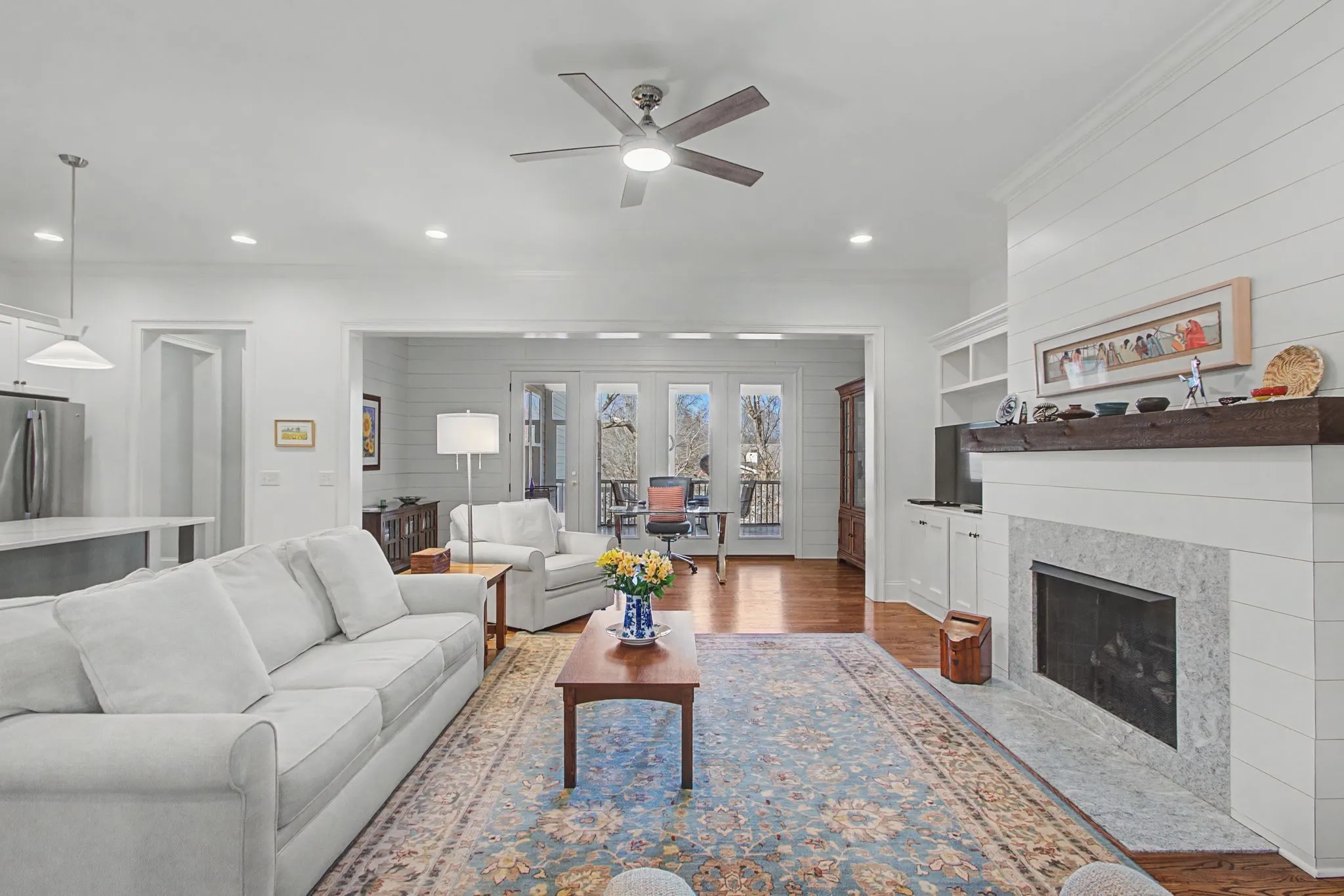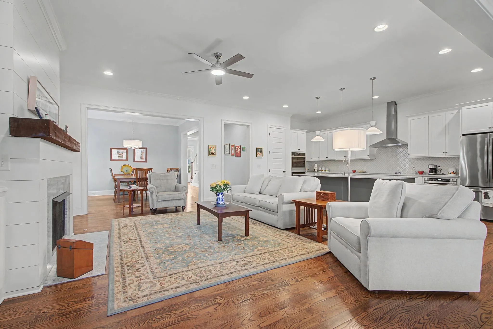Welcome to Allenwood, an established community consisting of 13 single family homes. The neighborhood is within walking distance to Thompson’s Station’s Top Rated Elementary and Middle Schools. The neighborhood has a common green space, used by all for playing catch and relaxing. This home features an open design, ideal for entertaining. All hardwoods on the first floor, lead you to a newly screened back deck with tiled floors. The kitchen features include a new double oven, drawer microwave, large island, with gorgeous quartzite, and a walk in pantry. Cooktop can be easily changed to gas, as the gas line is already there. This very roomy family room has beautiful built ins, with a gas fireplace in the middle. The Primary Bedroom features a stunning bath, with 2 vanities and 2 Huge walk in closets. First floor also has a guest bedroom and bath, with a newly tiled walk in shower. Oversized laundry room, with direct access to the primary bedroom closet, has a sink and lots of cabinets and counter space. A wide staircase leads to the upstairs that has an additional 2 bedrooms and a giant bonus room. As an added bonus, there is a large walk in storage area. The garage is a 3 car tandem, see photo media for sketch of house plan.
