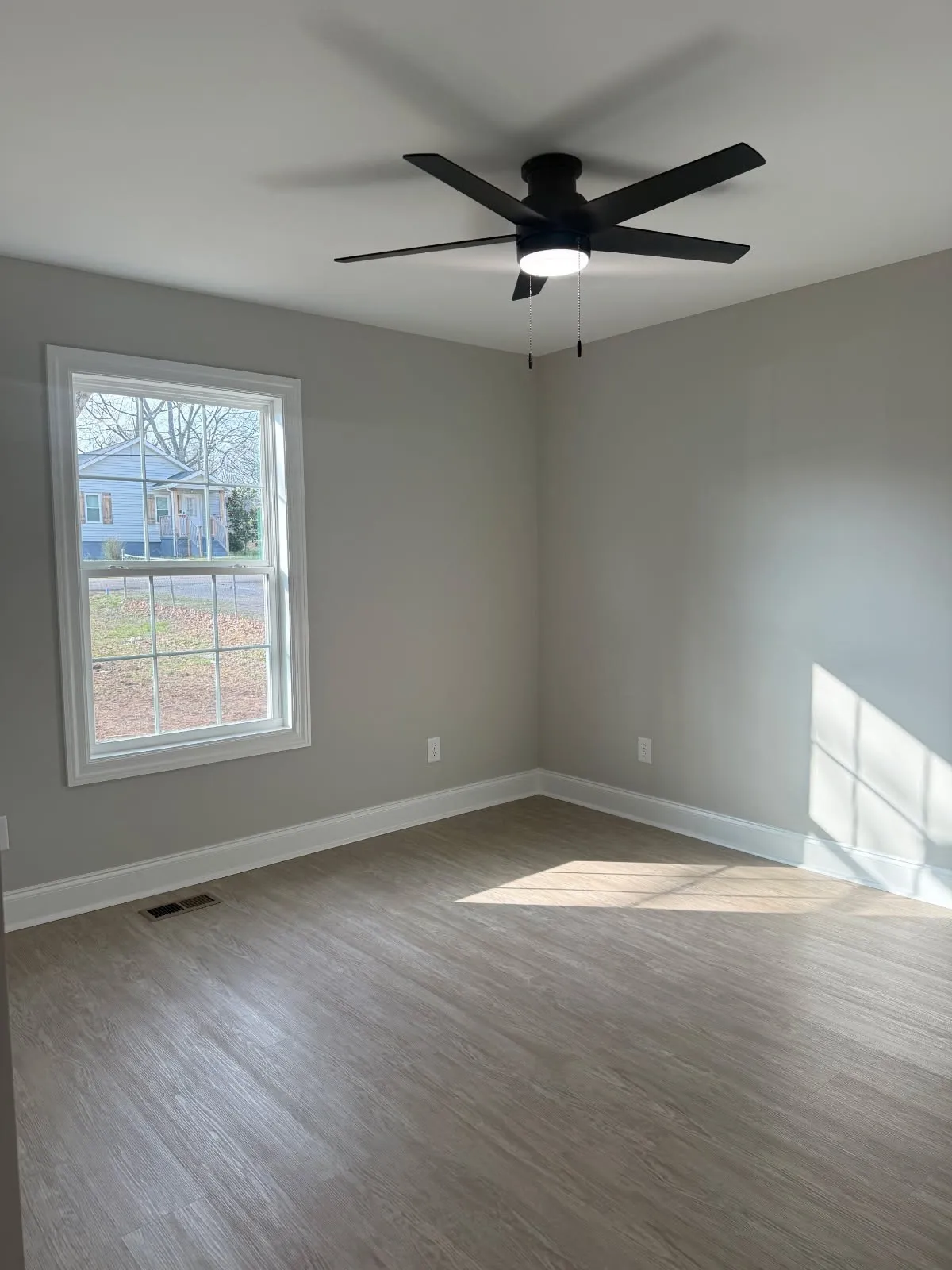 New 3 bedroom 2 bath house with large rooms and floorplan with kItchen, dining and living areas open. LTV flooring thruout and stainless appliances. Deck on back and pavilion in backyard. Shade trees front and back.