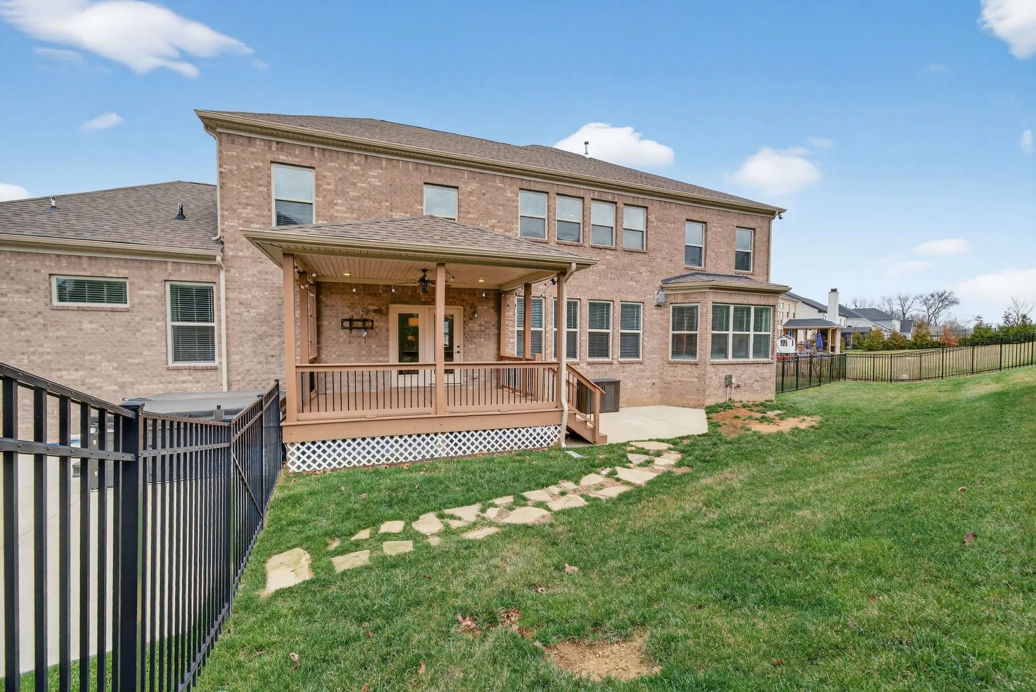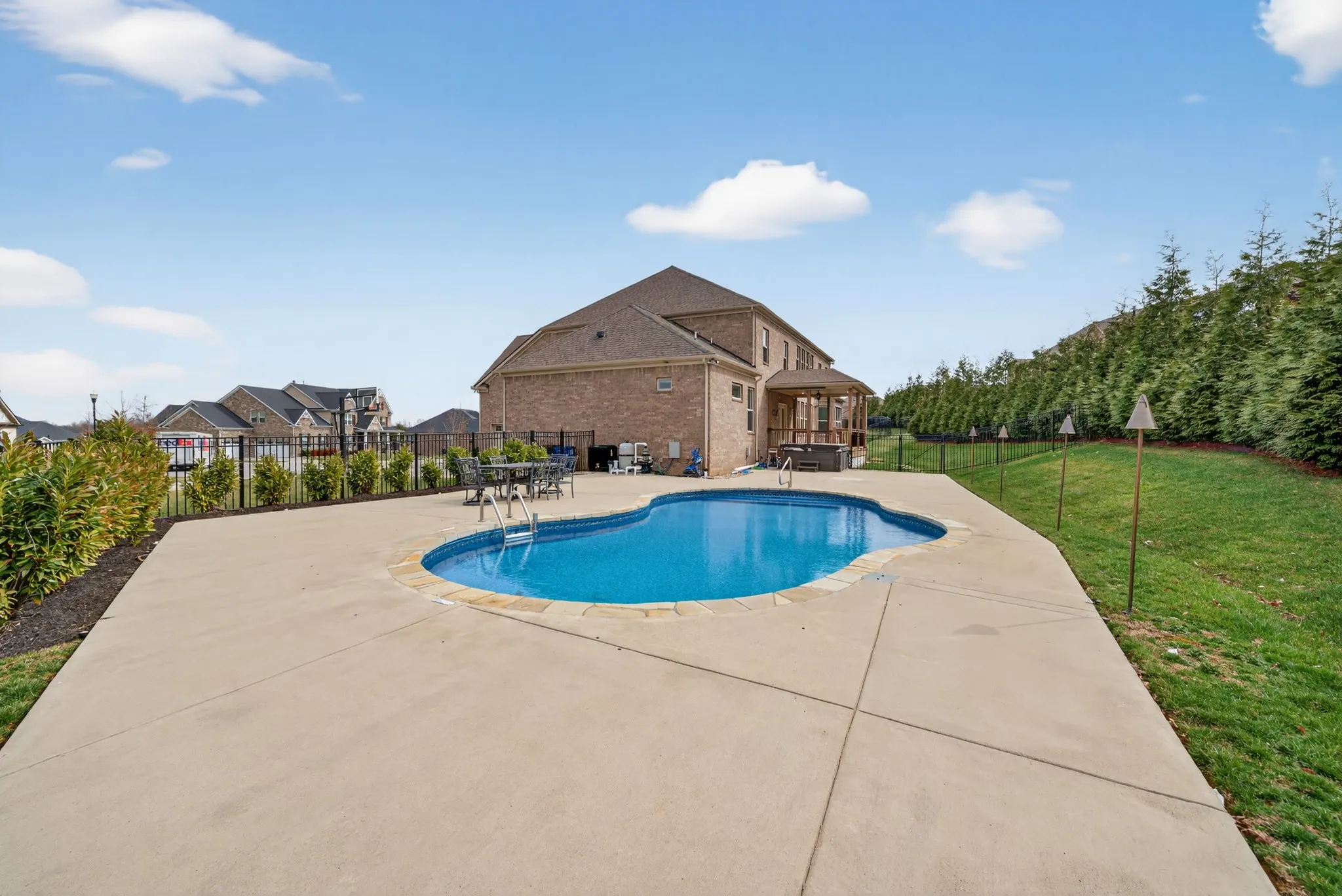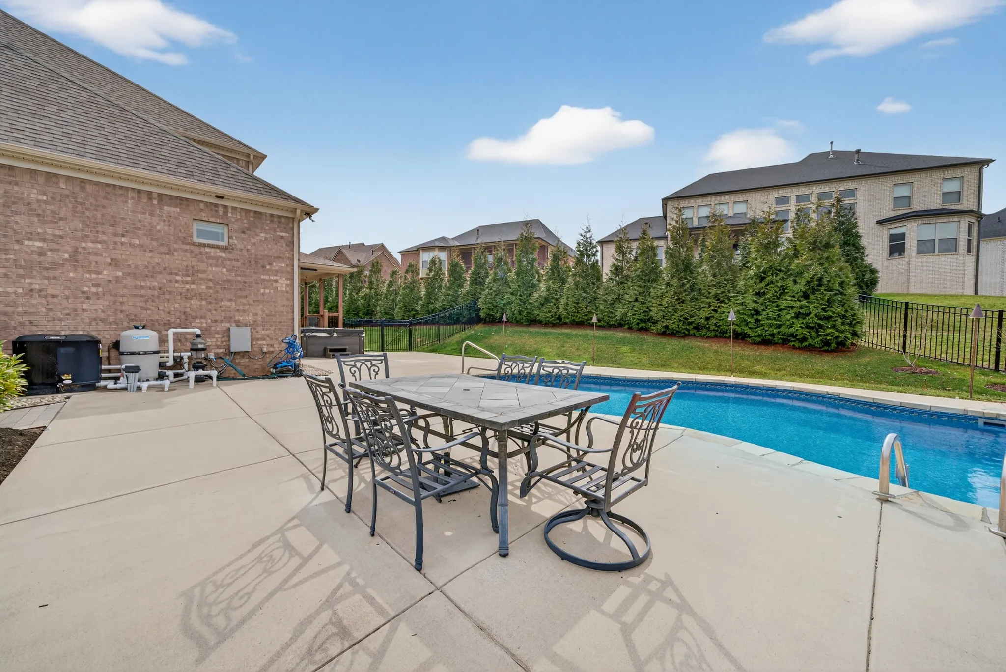 Step outside and experience resort-style living at its finest. The backyard is a showpiece, featuring a luxury pool with breathtaking views, a hot tub, and a covered patio designed for year-round enjoyment. The expansive yard offers rare versatility, with ample space for a playset blending refined luxury with functional outdoor living. A extended driveway makes for a great bball court and three-car garage completes the estate-like feel of the property.
