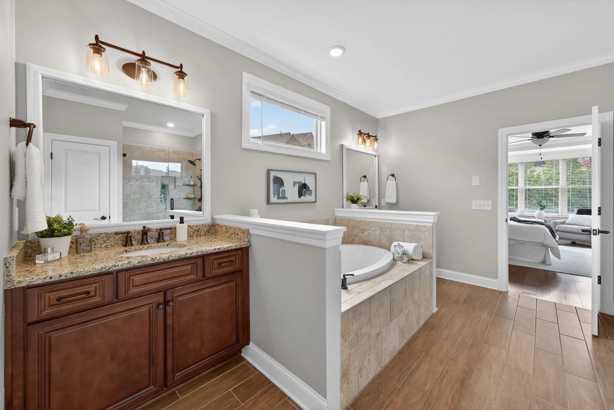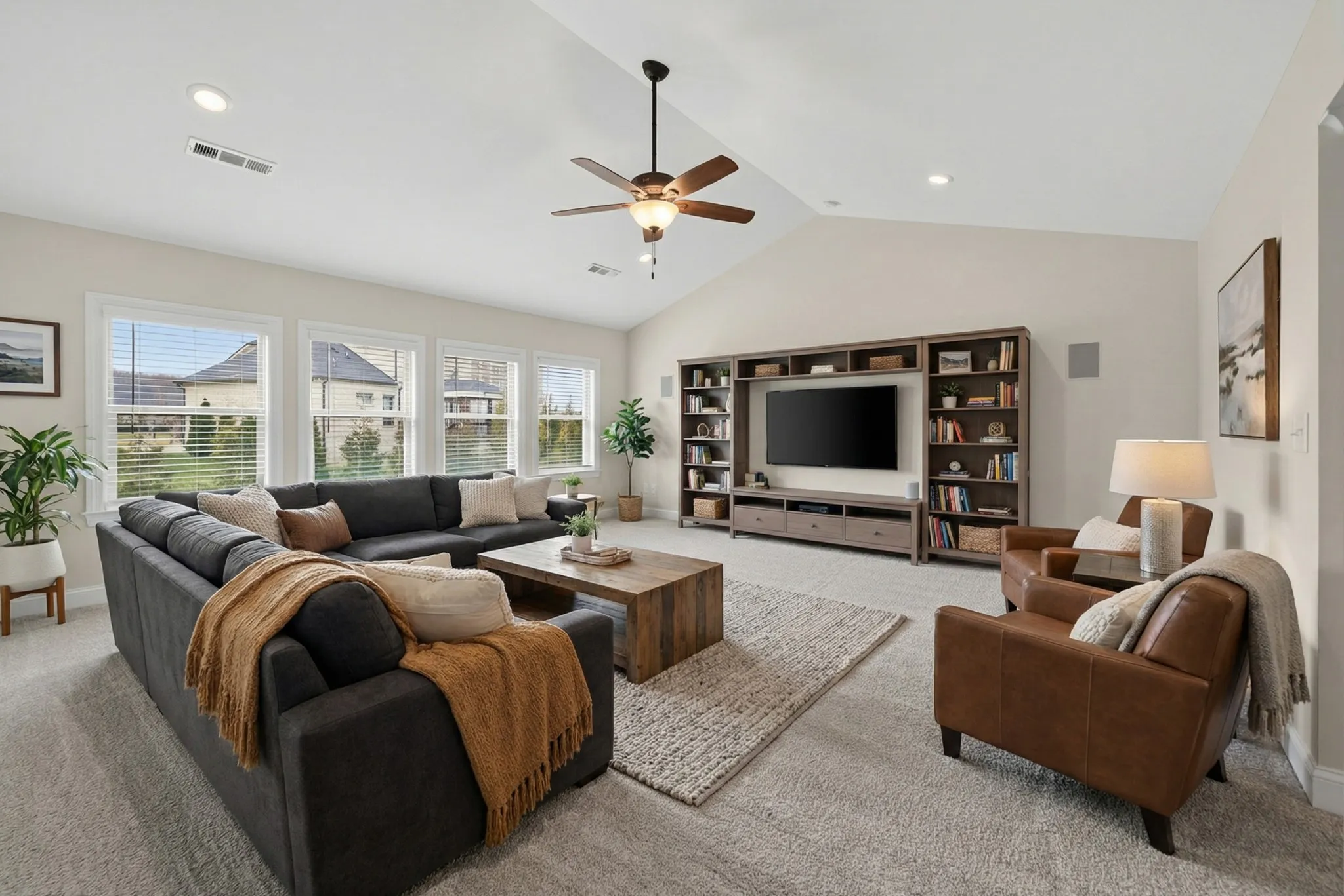 The home offers an impressive array of lifestyle spaces, including both a media room and a bonus room, allowing for a private theater experience, recreation, fitness, or additional living quarters. The primary suite is a true retreat, filled with natural light from beautiful bay windows and complemented by a spacious, spa-inspired en-suite bath. Four additional bedrooms are generously sized and thoughtfully positioned to provide privacy and comfort throughout.