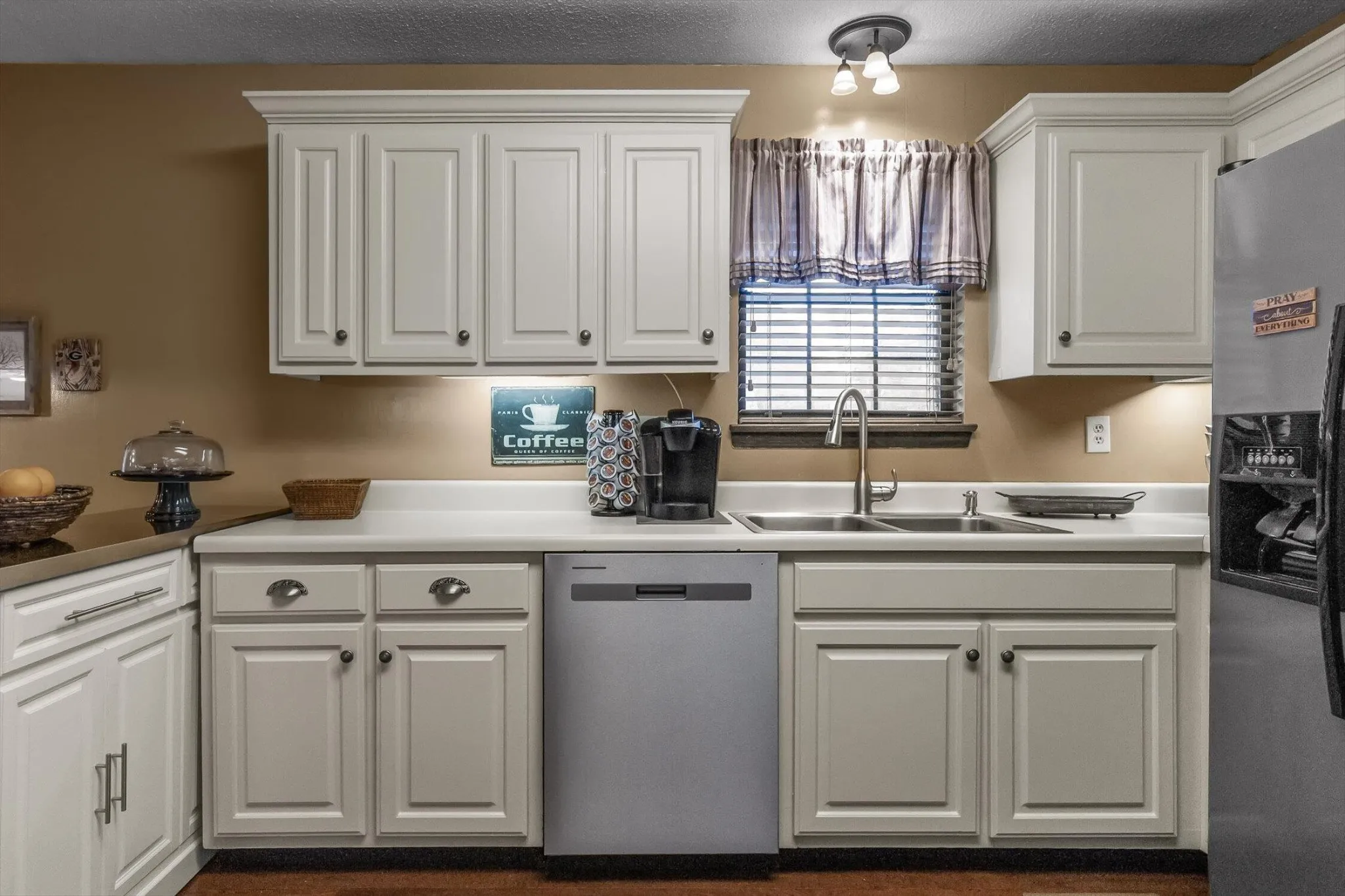 This well maintained one level ranch offers comfortable living on nearly half an acre in a convenient location – close to both Fort Oglethorpe and Ringgold. Inside, you will find hardwood floors throughout the main living areas, a spacious great room with a stone fireplace and a bright kitchen with white cabinets, stainless appliances and also includes refrigerator. A breakfast area and separate dining space provide flexibility for both everyday living and entertaining.