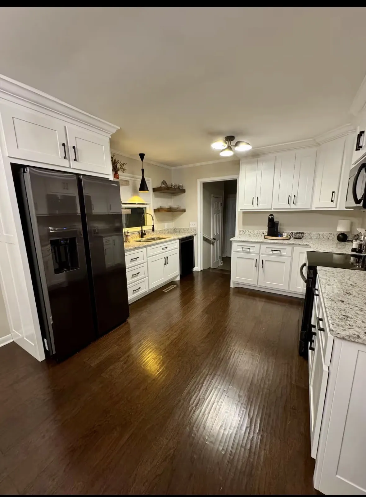 Take a peek at 402 8th Street, where classic brick charm meets modern design. Fully renovated, this ranch-style home features durable engineered wood floors, a beautifully updated kitchen complete with custom cabinetry, granite countertops, and sleek black stainless steel appliances. Thoughtfully upgraded lighting adds warmth and style to every space. This 3- bedroom, 1.5- bath home also includes a versatile media or flex room with an electric fireplace and built in sound system-perfect for a home office, playroom, or second living area. Step outside to a spacious backyard with a covered patio, ideal for relaxing evenings or entertaining guests. Other important upgrades are a 1 year old HVAC system, tankless water heater, and the roof is approx 6 yrs old.
