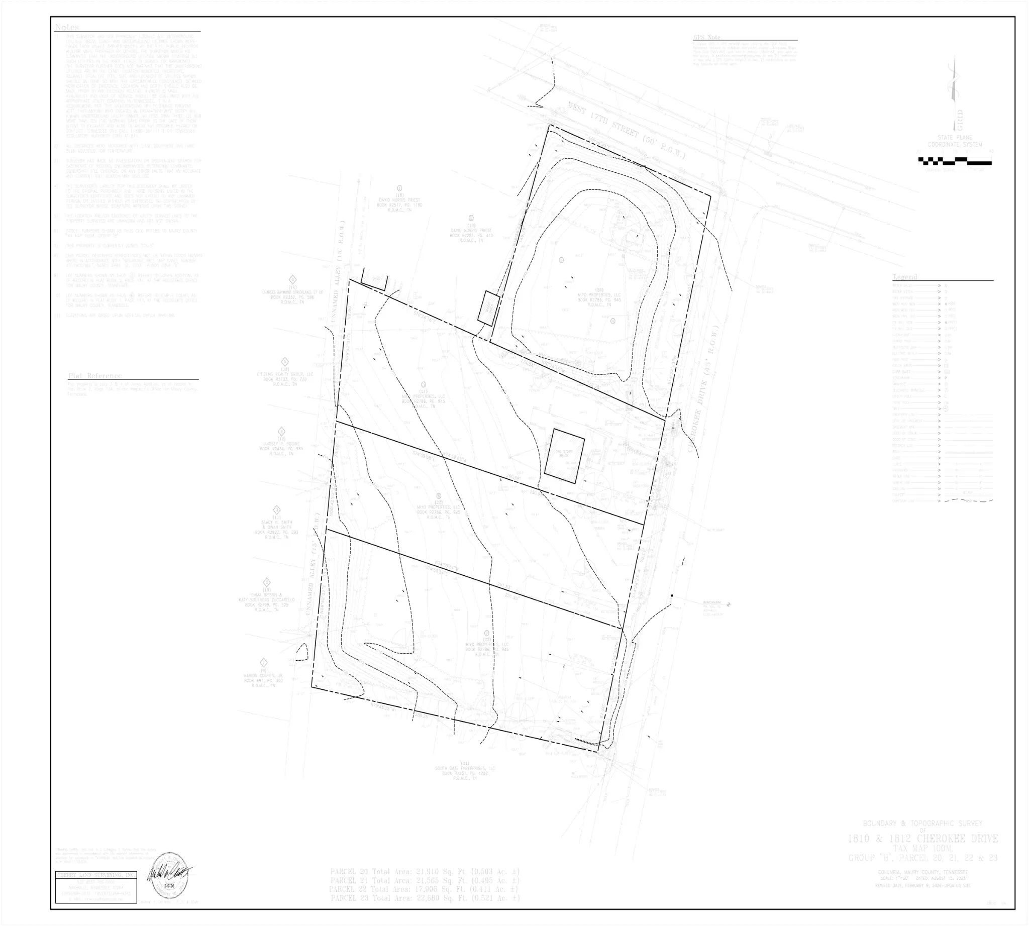 This offering includes four contiguous parcels comprising five platted lots totaling approximately ~2.01 acres. Public water, sewer, and power are in place across the assemblage.