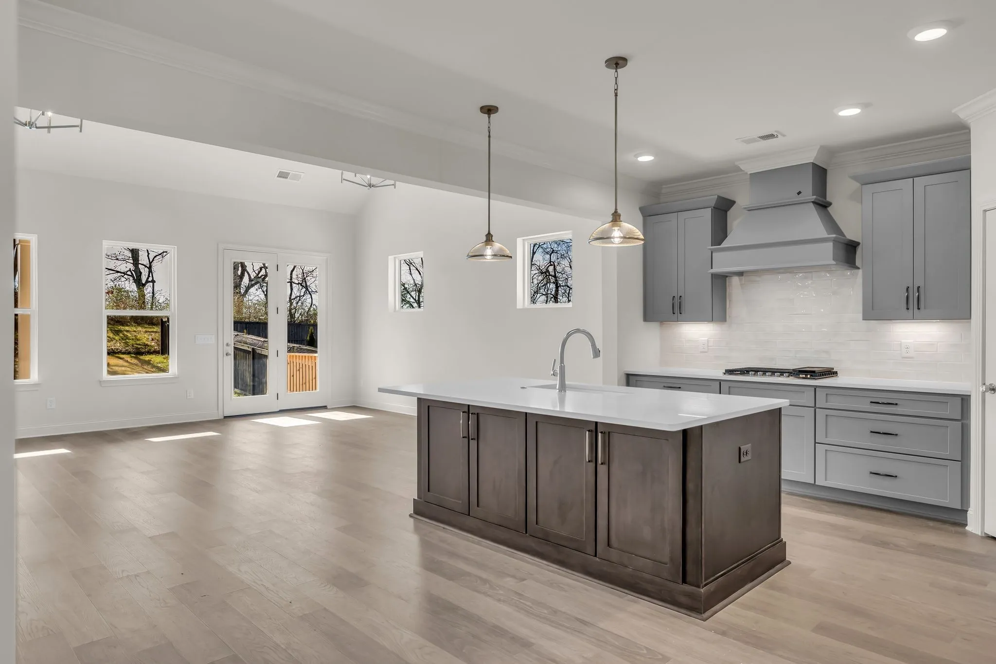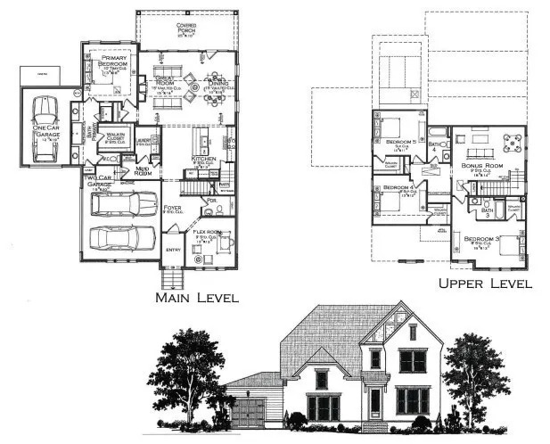 Upstairs includes 3 additional bedrooms, one with a private en-suite bath, ideal as a second primary suite. Enjoy outdoor living on the covered rear porch overlooking a tree line. 3-car carriage garage included.