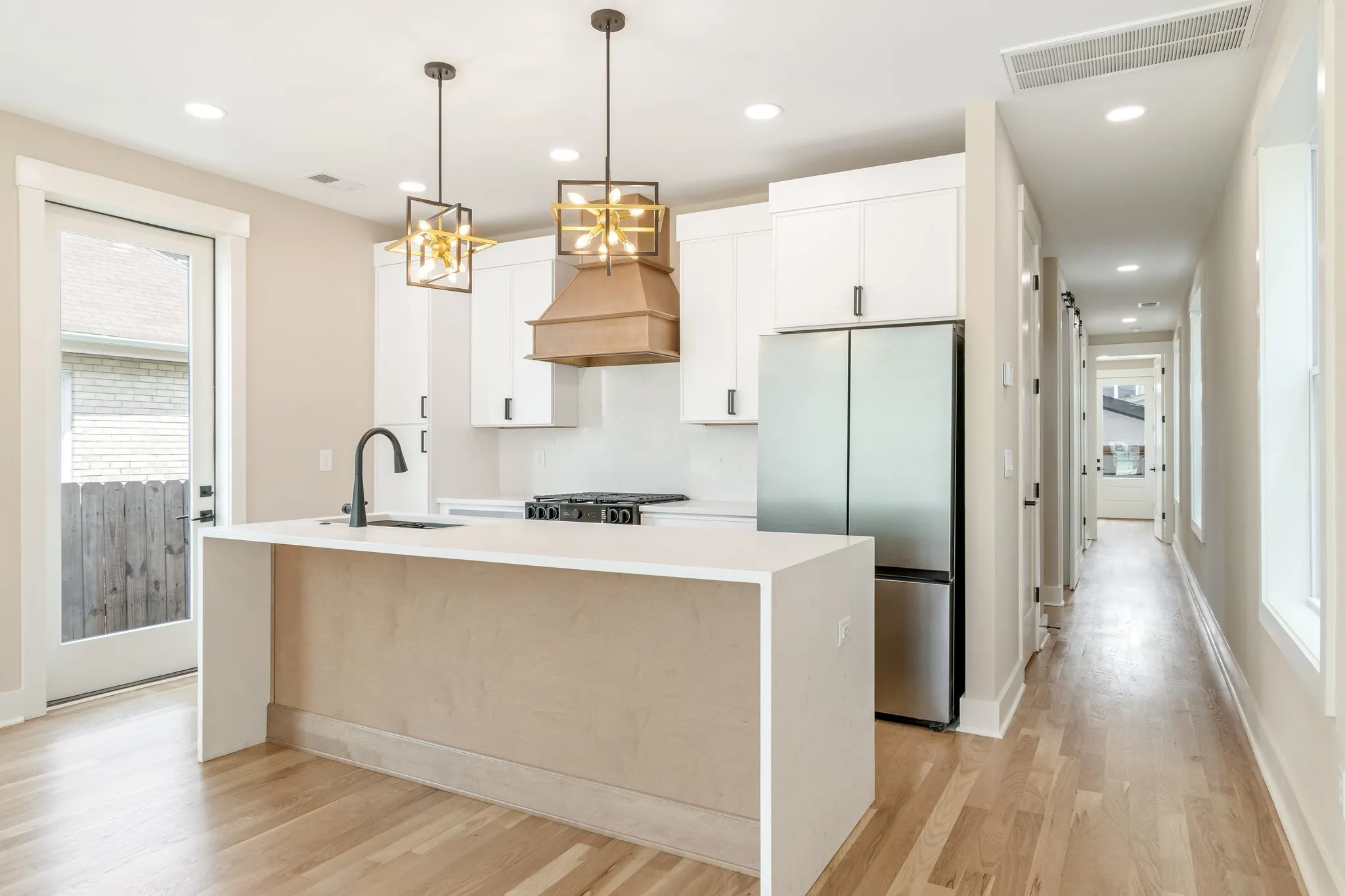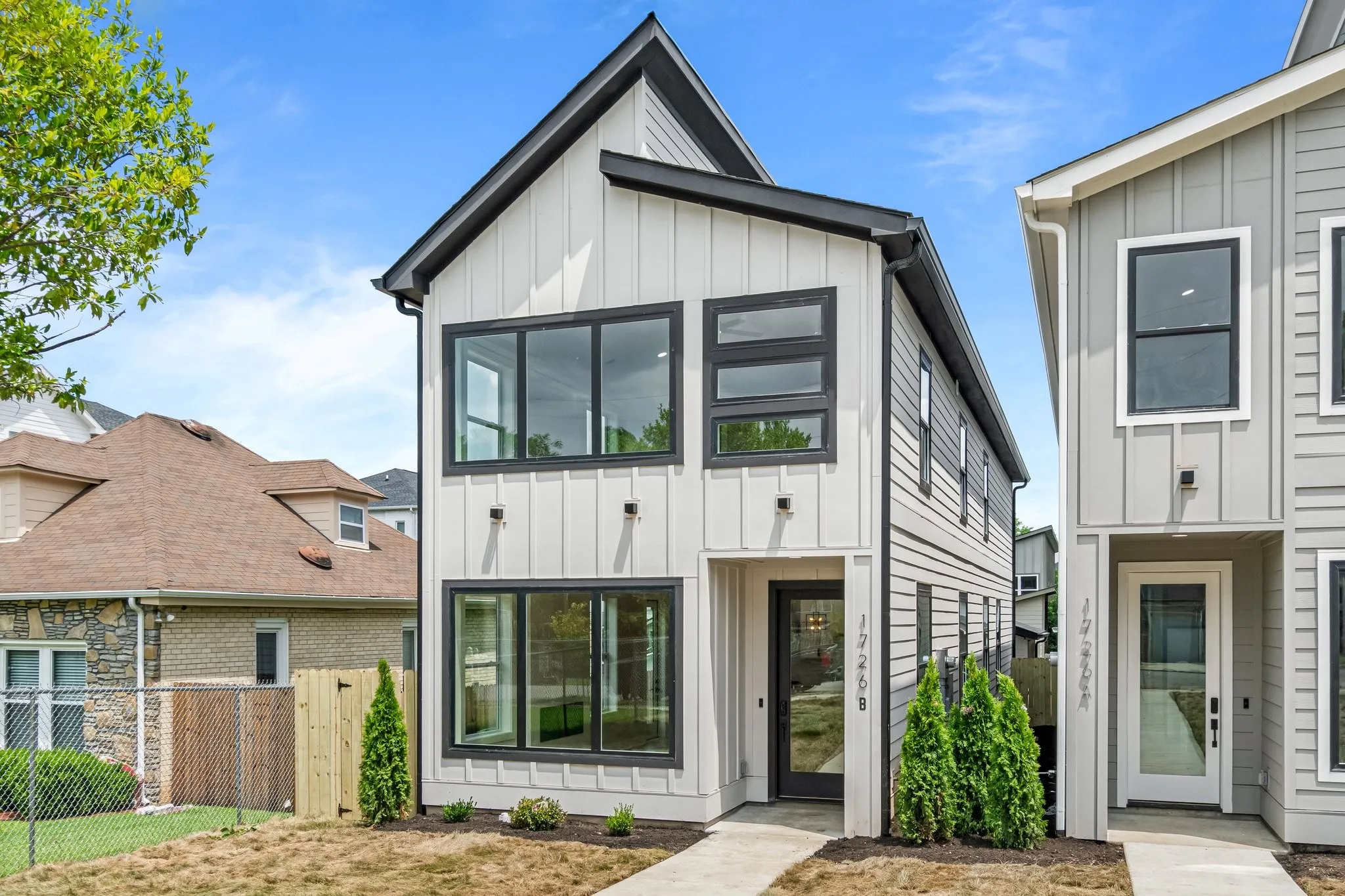 Welcome to your bright, sun-washed urban oasis! This stunning 4 bedroom, 3.5 bath, single-family home offers a perfect blend of modern elegance and thoughtful design just minutes from downtown Nashville. Step inside to discover a spacious open floor plan with features 3/4″ white oak floors- sanded and finished to perfection- flowing throughout the home. Souring 9-foot ceilings on the main level and vaulted ceilings in the upstairs bedrooms create a light-filled airy feel. the chef’s Kitchen is a true showstopper, featuring quartz countertops, full-height quartz backsplash, stainless appliances with gas range- all anchored by sleek modern cabinetry. The Great Room is anchored by a custom wood-accent fireplace surround adding warmth and sophistication. This home boasts 2 primary suites – one on each level- offering flexibility for guests or multigenerational living. The first- floor primary suite includes a wet bar and mini fridge perfect for adding convenience or entertaining. Each bedroom features its own en-suite bath designed with double quartz vanities and ceramic tile finishes. Both primary baths include glass-enclosed shower while the 3rd full bath offers a tile shower/tub combo. Additional highlights include: Walk-in laundry on main level. Oversized contemporary windows throughout. 2-car garage port with garage door, level, manicured fully fenced private yard. All this in a prime location close to local shops, restaurants and professional sports venues- experience the best of Nashville living! 1st floor primary has a private entrance that could be used for rental income.