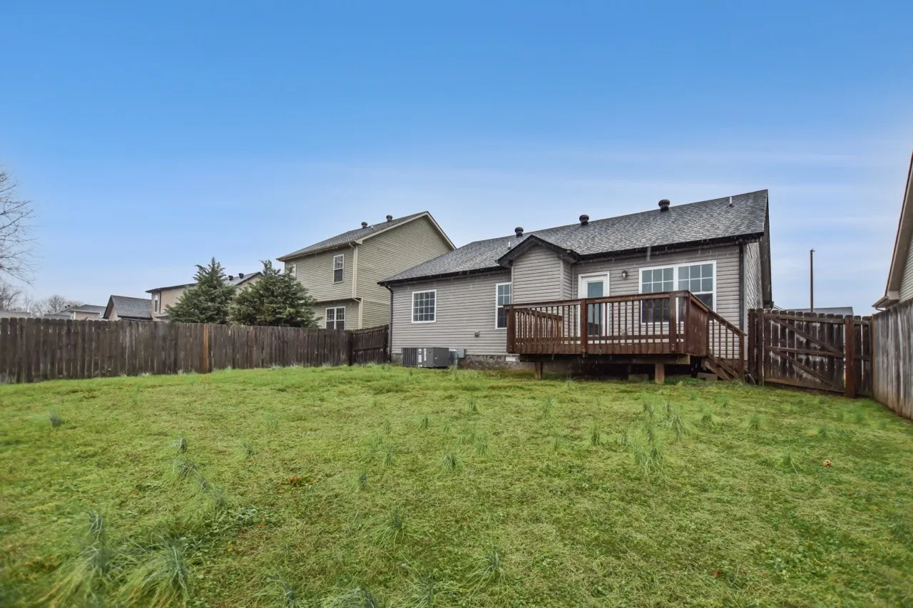 This beautiful three bedroom, two bath ranch home offers a perfect blend of style and convenience, located just minutes from restaurants, shopping, Fort Campbell, and more! Step into a spacious living room featuring vaulted ceilings and a cozy fireplace! The eat in kitchen is equipped with sleek stainless steel appliances and ample space for dining and entertaining! The primary suite is a private retreat, complete with a full bath featuring a double vanity, a soaking tub, and a separate shower! Both guest rooms are generously sized, providing plenty of comfort and versatility. Outside, enjoy a fantastic outdoor space with a deck and a fenced yard, perfect for relaxation or entertaining! Pet rent applicable.