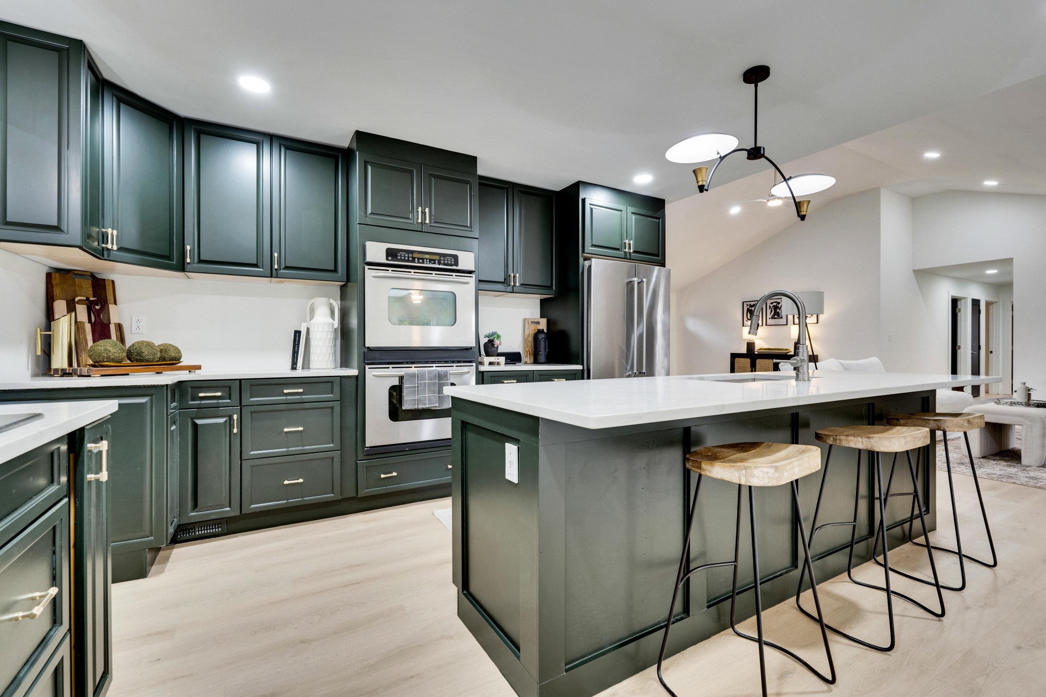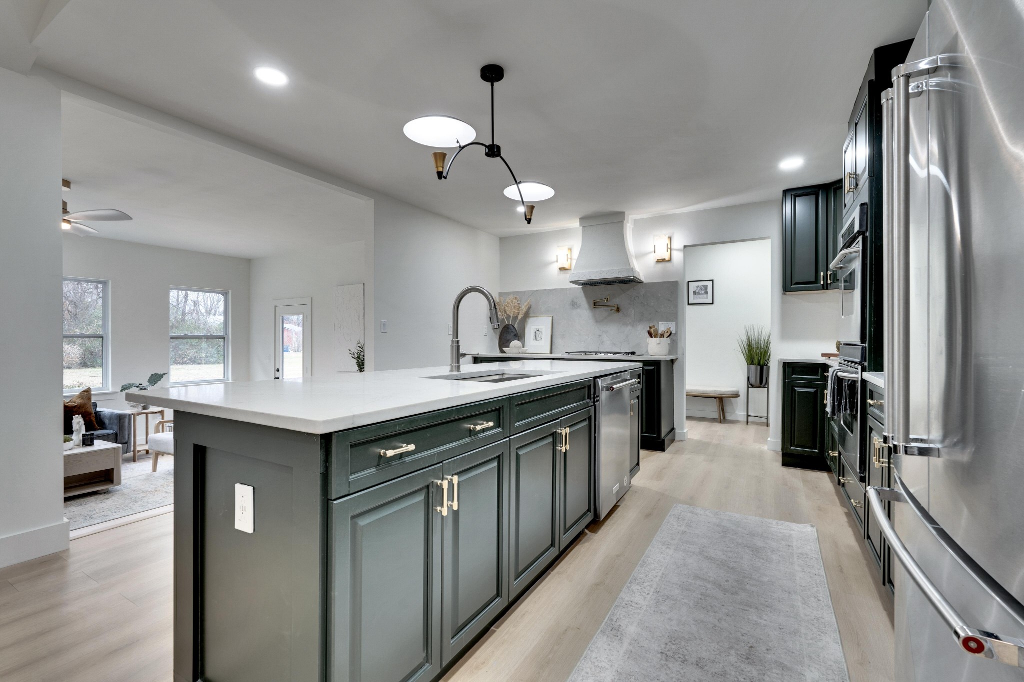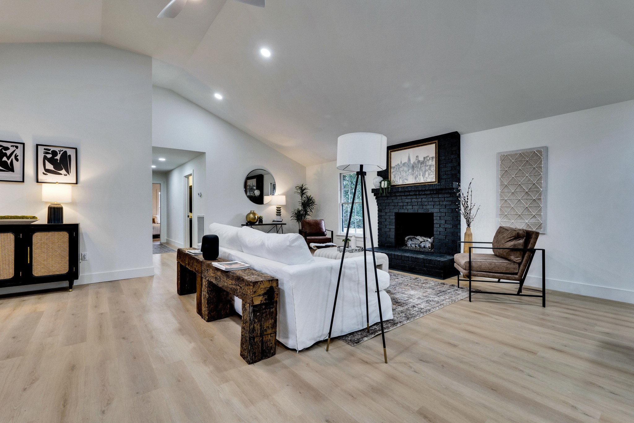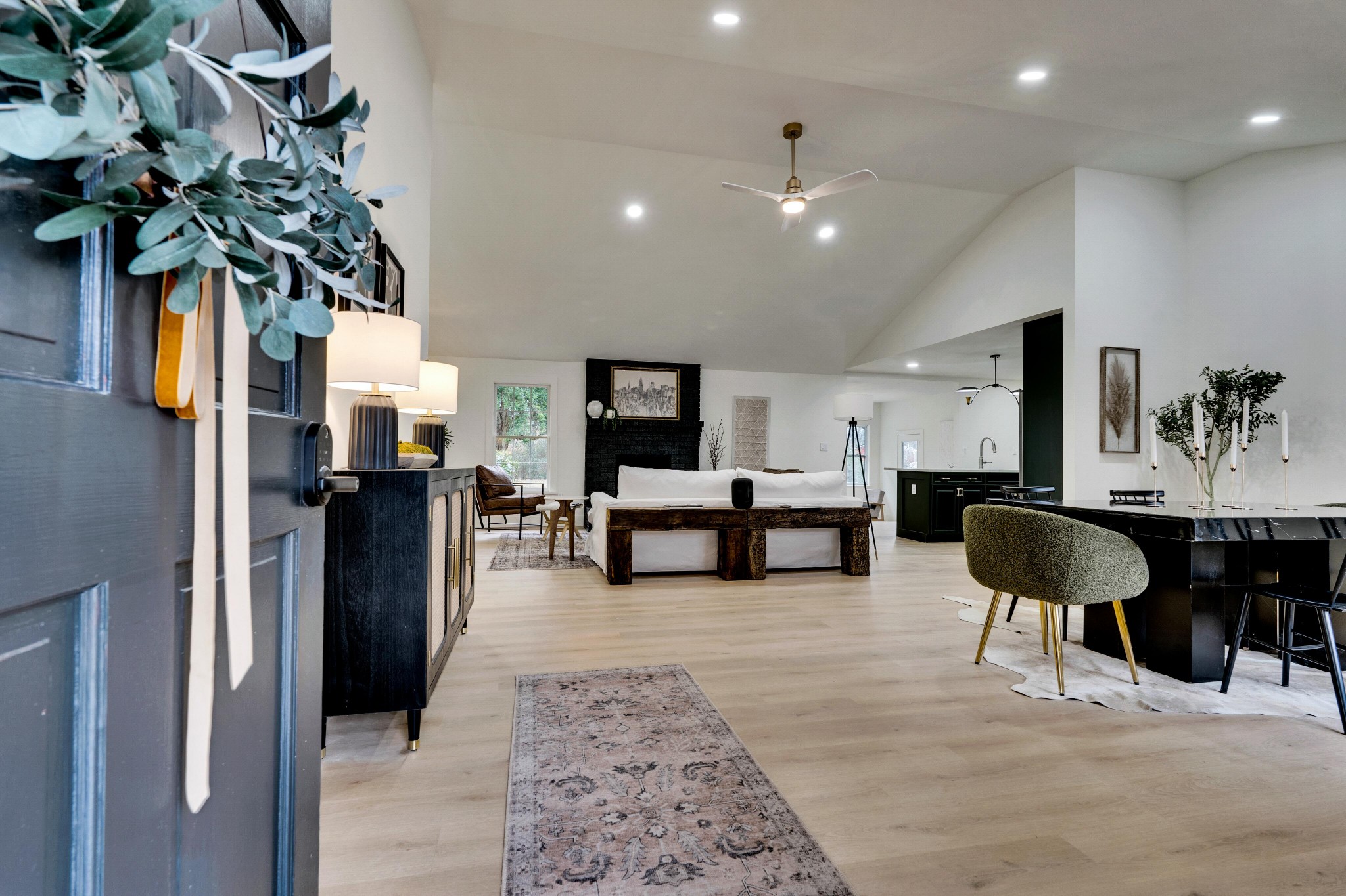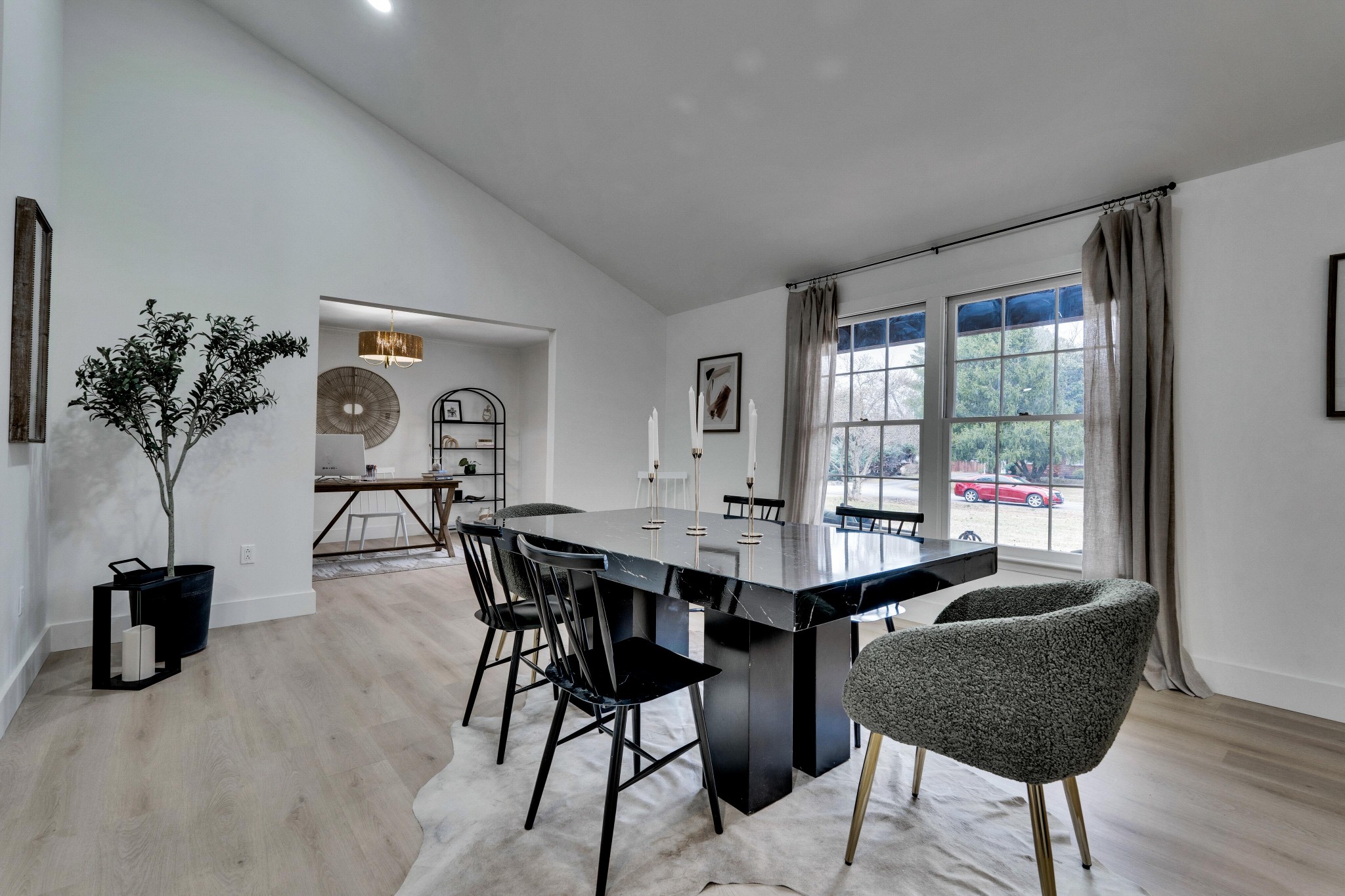 +"PublicRemarks": "BRAND NEW 2 CAR GARAGE (or upgrade to 3 car) included before close!!!! 4 Bedrooms on the Main Floor! A meticulously updated ranch house all on one level on a beautiful tree-lined lot at almost ONE acre. Vaulted ceilings and a completely open layout make this one level feel massive. Office, den or 5th bedroom off the formal dining space! Split plan with 3/2 on one side with one full ensuite and hall bath, then a huge primary suite and completely custom bath with smart toilet, bluetooth speakers in each bath, plus a gorgeous sunroom with all new windows!Huge pantry/mudroom and a walk-in closet to be built out with right offer! The kitchen features gorgeous wood cabinets, pot filler, double ovens, stucco hood, designer lighting, and 10ft island! Every detail has been thought of in this custom remodeled home. All new HVAC, flooring, paint, bathrooms/tile, plumbing/fixtures, lighting, doors, hardware, trim, newer roof and more!"