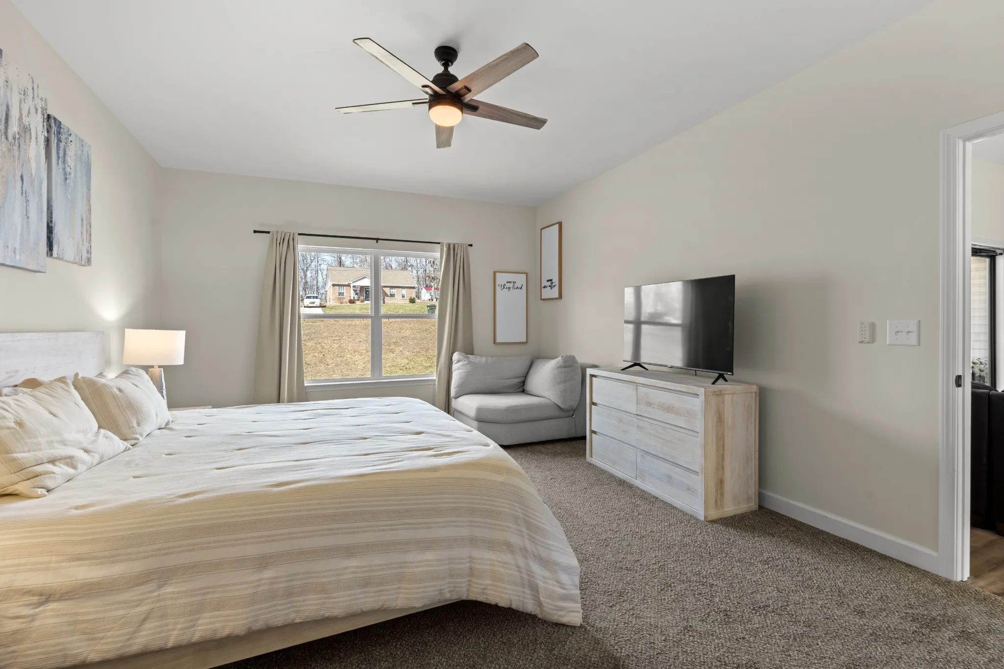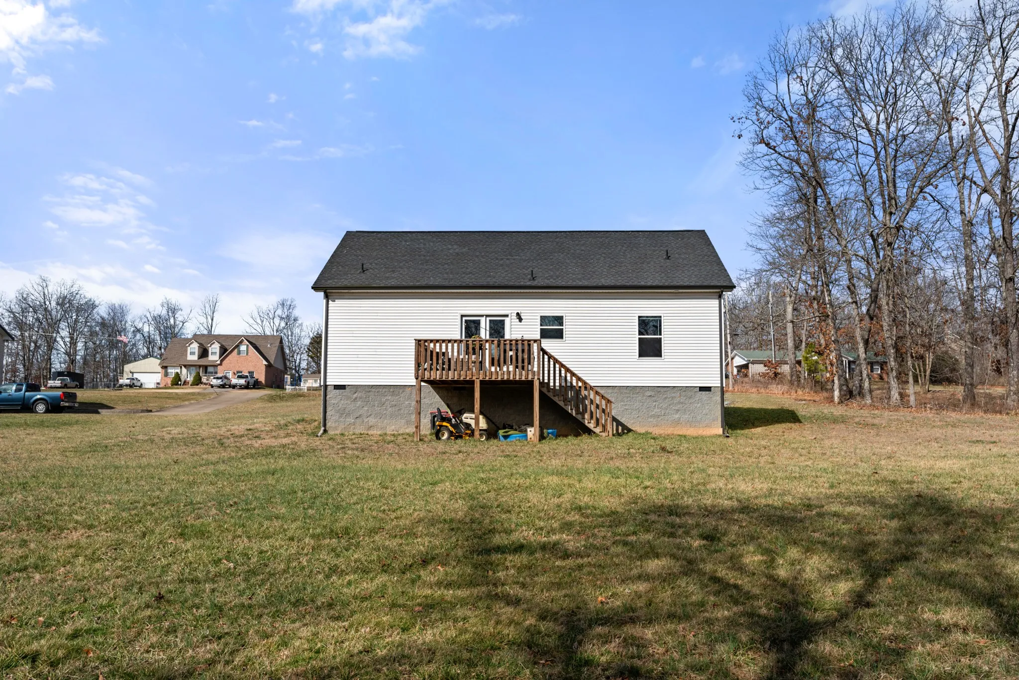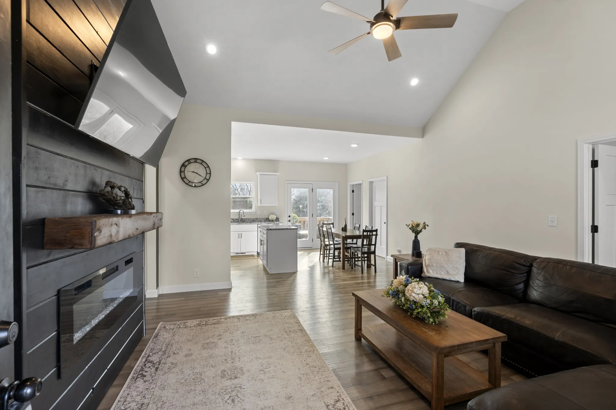 Large yard. Open plan. One-level ease. Located in one of Dickson’s most convenient areas, this beautifully maintained home sits on approximately .86 acres, offering a level, park-like setting ideal for entertaining, pets, or enjoying the outdoors. Blooming dogwoods provide a stunning backdrop in the spring. Inside, the open-concept design features a spacious great room with a cathedral ceiling and abundant natural light. The sellers enhanced the home with a custom fireplace feature wall, creating a warm focal point, and added a kitchen island for additional prep space and gathering. The kitchen also includes granite countertops, on-trend cabinetry, and wide plank flooring that flows seamlessly through the main living areas. Craftsman trim details and thoughtful upgrades throughout, all on one level for easy living. A rare combination of space, setting, and functionality.