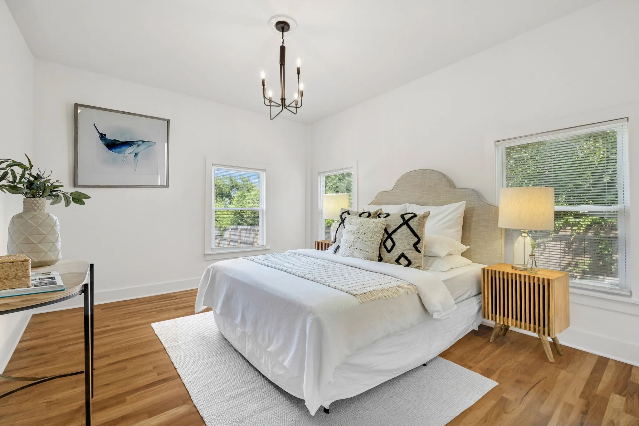 This historic home has been fully renovated – to the studs. Every wall, floor, window, door, fixtures, and appliance is new. The contemporary cottage blends timeless curb appeal with a highly functional modern layout in one of Nashville’s most evolving neighborhoods. The home sits on a deep, private lot surrounded by new construction and beautiful renovations, just minutes from Germantown, Buchanan Arts District, Jefferson Street, Fisk University, and Tennessee State University. A welcoming covered front porch opens to bright interiors with clean architectural lines and warm hardwood floors throughout. The main level features a flexible front room ideal for an office or creative space, an open-concept kitchen and living area, a large walk-in pantry, a dedicated laundry room, and a full bath. The primary suite offers privacy at the rear of the home with a walk-in closet and a spa-like bath with a double vanity and an oversized shower. A second bedroom on the main level provides additional versatility.