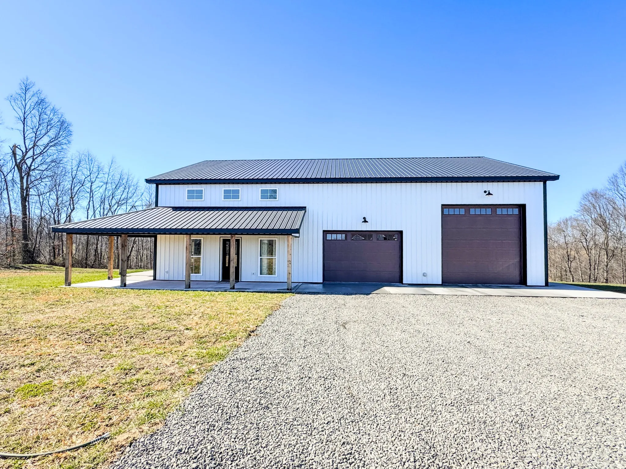 Check out this like-new barndominium with a spacious two-story floor plan! From the moment you walk in, you’ll love the open living area that flows effortlessly into the gorgeous kitchen and dining space, complete with a huge island made for gathering and entertaining! The main-level primary bedroom offers comfort and privacy, featuring a full bath with a custom walk-in tile shower. Upstairs, you’ll find two additional bedrooms plus a bonus area, perfect for a home office, playroom, or extra lounge space! Don’t forget the huge (42 x 35) attached garage with plenty of room for vehicles, storage, or hobbies! Step outside to relax under the covered porch with beautiful tongue-and-groove ceilings, and take in the peaceful views of this 5.02 acre lot! With custom finishes throughout and thoughtful details in every space, this home is move-in ready and waiting for you! Don’t miss out, call today to schedule your showing!