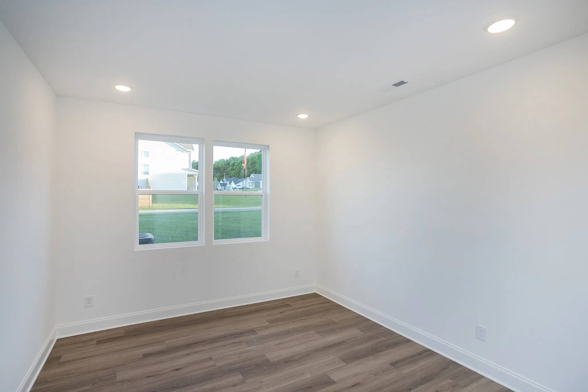 The private Primary Suite offers a peaceful retreat with a luxury en suite and an oversized walk‑in closet. Toward the front of the home, a well‑placed Guest Room or Nursery with its own bath provides ideal separation for comfort and privacy. A versatile Flex Room adds even more options—perfect for an office, den, fitness space, or creative studio.
