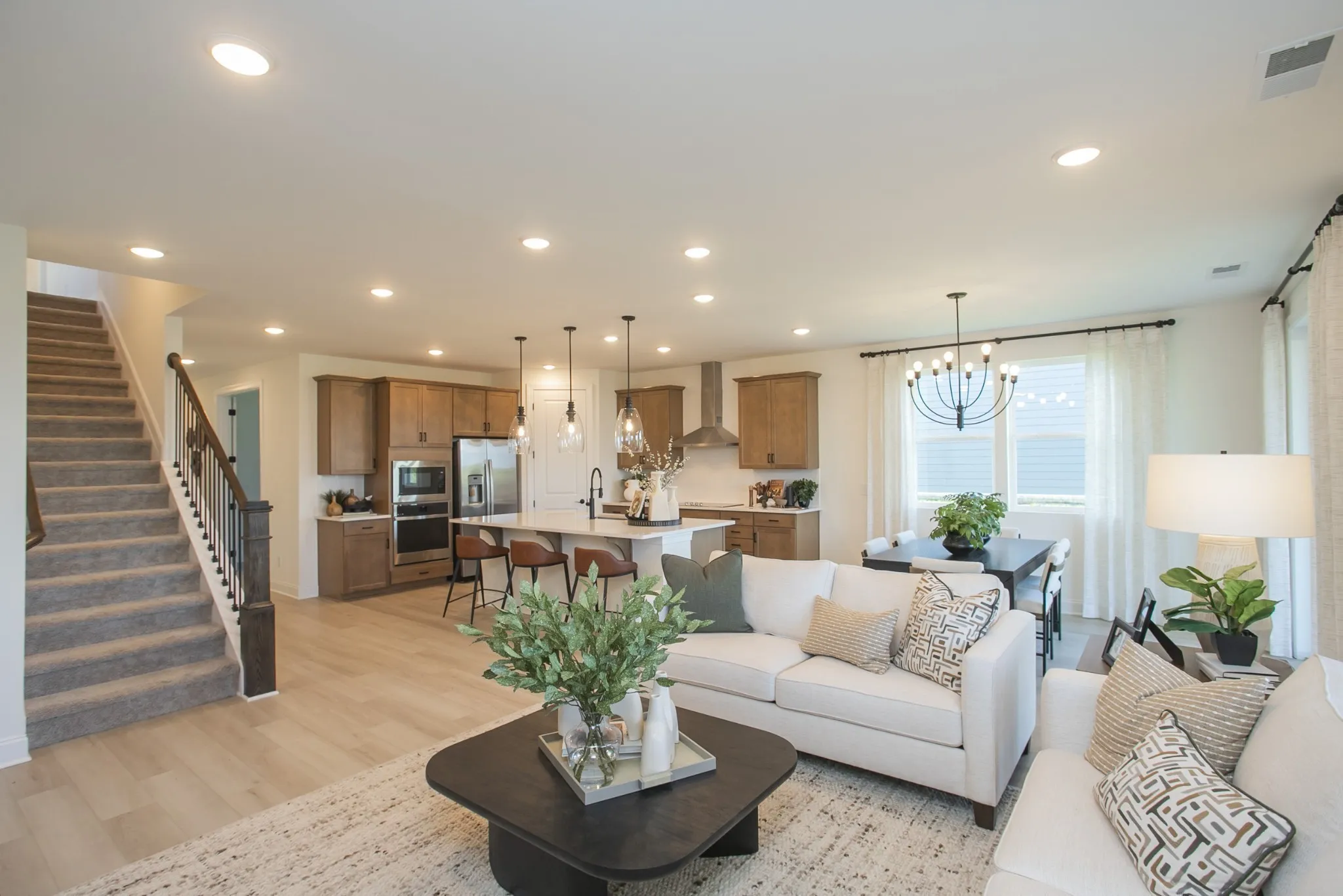 Enjoy seamless single‑story convenience with an open gourmet kitchen featuring a large island, walk‑in pantry, and included appliances. The kitchen flows into the dining area and great room, creating an inviting space for everyday living and entertaining. With extensive design options, you can tailor the entire main level to your taste.