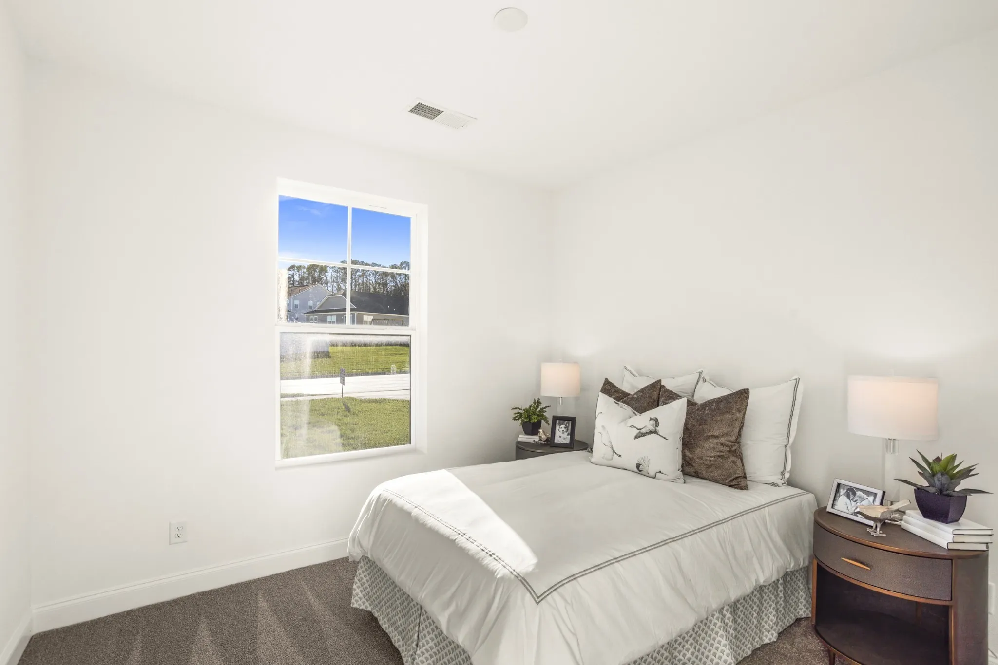 The open‑concept great room is designed for connection — imagine soft music, open windows, and gatherings that flow easily from indoors to out. The spacious primary suite provides a peaceful escape with a large walk‑in closet and a deluxe bath with double sinks, creating a calming retreat at the end of each day.