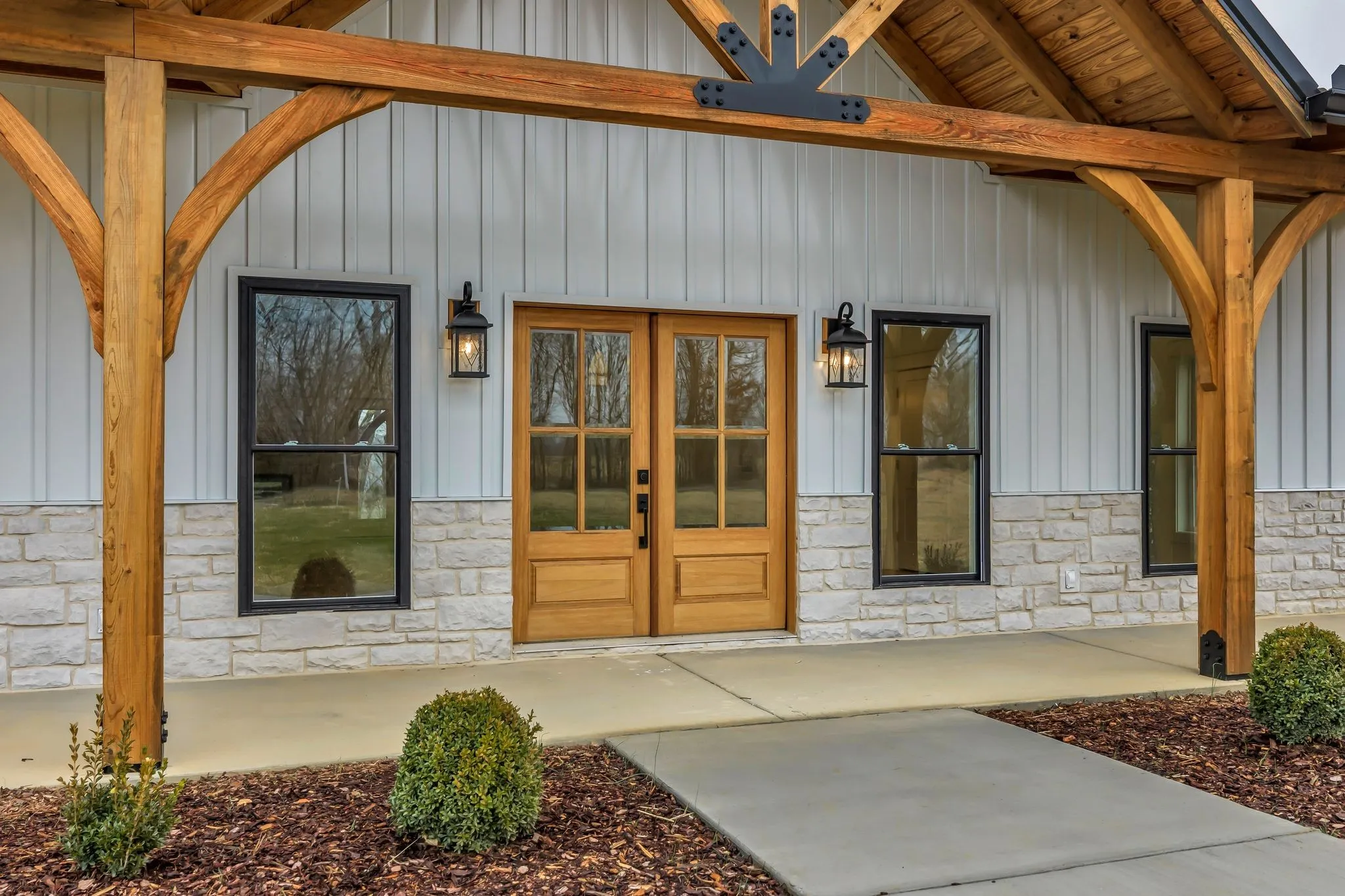 Discover luxury country living in this brand-new custom-built 3 bedroom, 2.5 bath home perfectly positioned on 11 peaceful acres. Had another room upstairs that could be used as a fourth bedroom if needed. From the moment you pull up, this stunning modern farmhouse makes an impression with its striking board-and-batten exterior, stone accents, metal roof, and gorgeous timber-framed front porch. Step inside to an open, airy floor plan filled with natural light and premium finishes. The gourmet kitchen is truly the heart of the home—featuring custom cabinetry, an oversized island with rich wood accents, quartz countertops, a pot filler, stainless appliances, and designer lighting. The wide-open layout flows effortlessly into the living and dining spaces, creating an ideal setup for both everyday living and entertaining. The home offers four bedrooms, including a private primary suite, along with 2.5 beautifully finished bathrooms. High ceilings, warm wood flooring, and detailed craftsmanship are featured throughout. Outside, the property provides 11 acres of open space and wooded backdrop—perfect for privacy, recreation, and relaxing. Enjoy peaceful mornings on the covered front porch and plenty of room to create your ideal outdoor living environment. If you’ve been looking for a new custom home with upscale finishes, land, and room to breathe, this one checks every box.