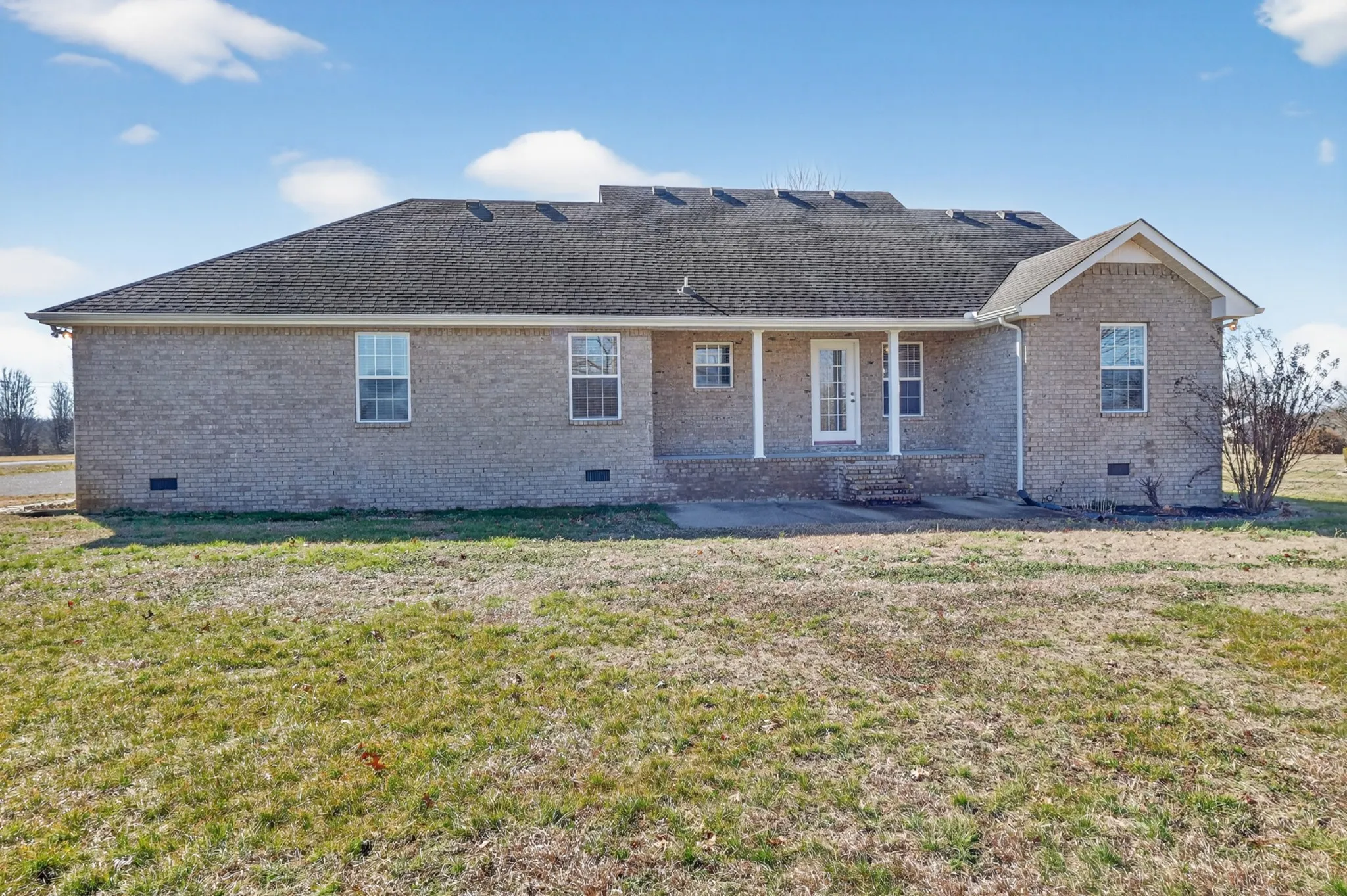 All-brick, one-level home on a spacious 0.9-acre lot with no HOA in Castalian Springs, TN. This well-maintained ranch-style home offers 3 bedrooms, 2 full baths, and 1,565 sq ft of comfortable living space with a functional, open layout. The kitchen features ample cabinetry and counter space and opens to a light-filled dining area with backyard views—ideal for everyday living and entertaining. The inviting living room includes updated flooring, large windows, and a flexible layout. Split-bedroom floor plan provides privacy, with a generous primary suite offering a walk-in closet and private bath with double vanities. Secondary bedrooms are perfect for guests, a home office, or hobbies. Enjoy outdoor space and privacy with a level lot, covered front porch, long driveway with additional parking, attached side-entry garage, and detached storage shed. Located just minutes from Gallatin with convenient access to shopping, dining, golf, and commuter routes to Nashville. A rare opportunity for single-level living on nearly an acre with no HOA.