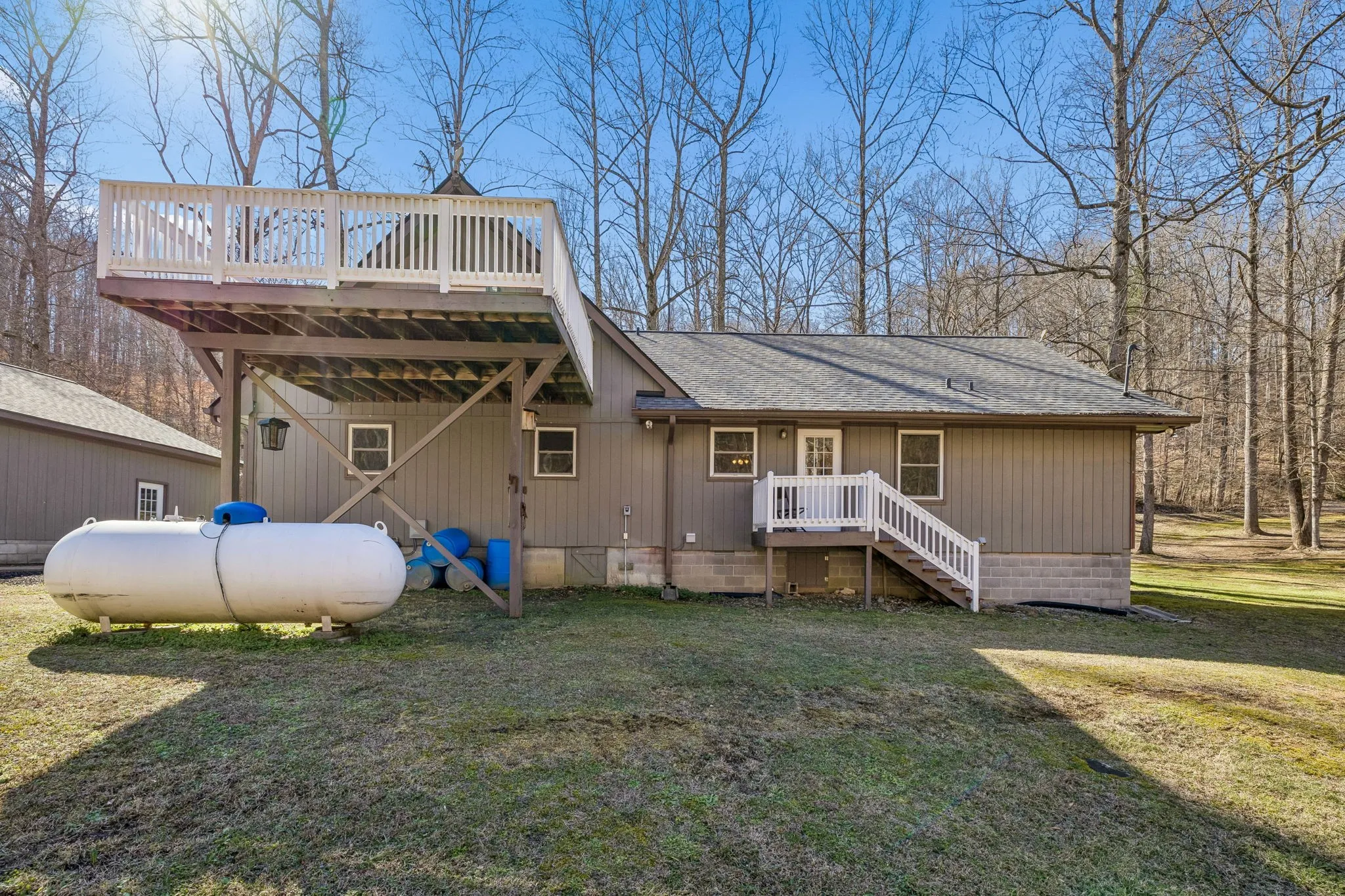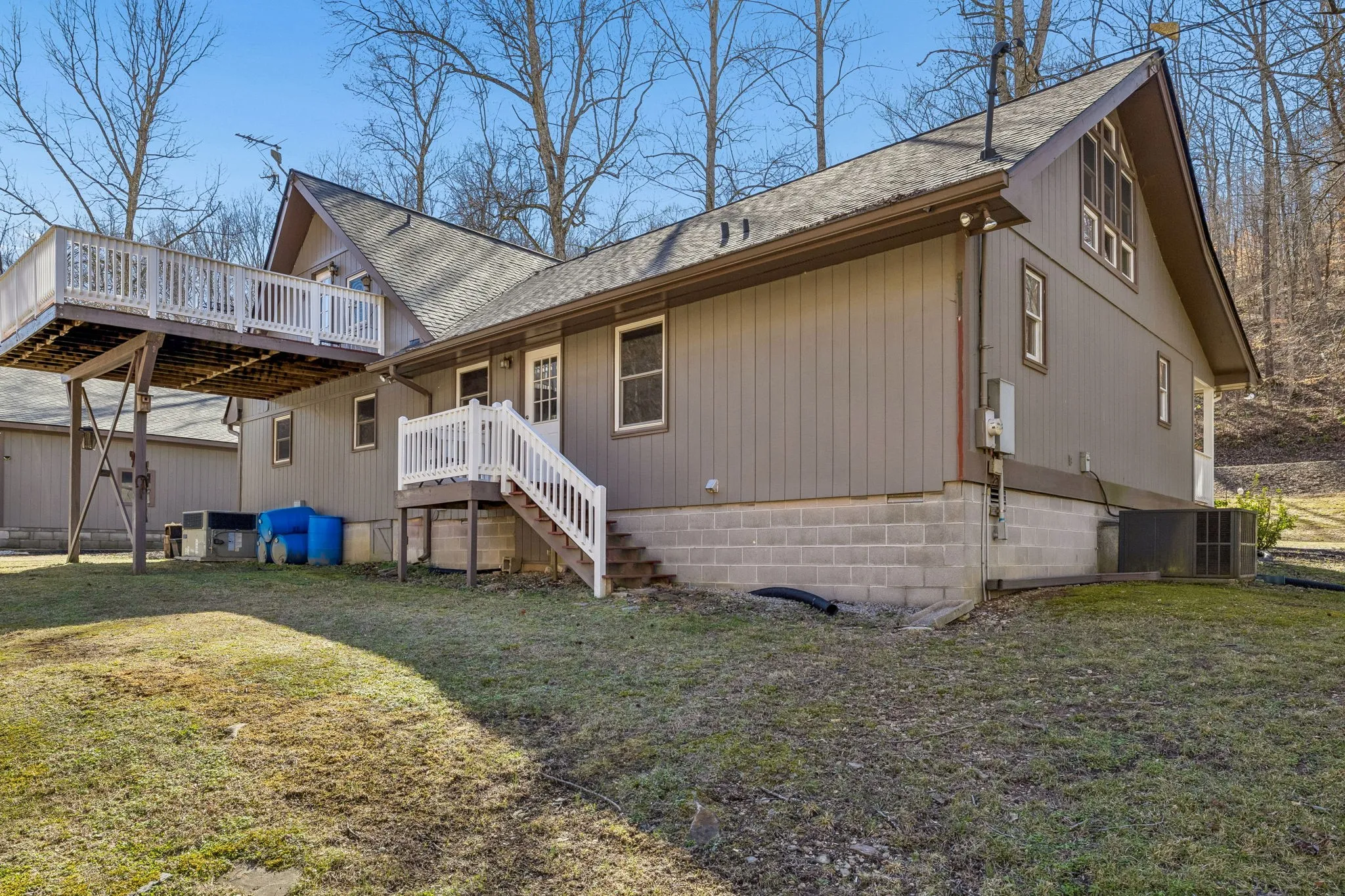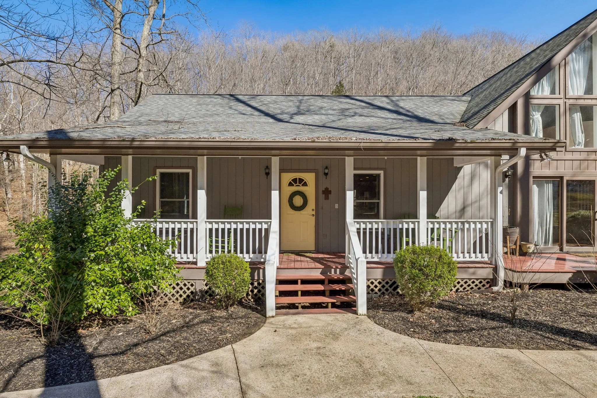 Live like you’re on vacation every day in this stunning Gatlinburg-style A-frame retreat nestled on 6 peaceful acres. A year-round, spring-fed creek flows across the back of the property, and the expansive deck overlooks the water—offering the soothing sounds of trickling water and frequent visits from deer, turkey, and other wildlife.Inside, you’ll find beautiful hardwood floors, a show-stopping custom staircase, crown molding, bead-board ceilings, recessed lighting, and fresh neutral décor throughout. One of the previous owners was a master craftsman, and several of the custom cabinets were personally built on-site in the workshop, adding character and quality you simply can’t replicate.The property includes an impressive 36×32 heated and cooled garage/shop (approximately 1,152 sq ft) with 14-foot ceilings, 10-foot doors, and 8-inch concrete floors—perfect for car enthusiasts, musicians, entrepreneurs, or hobbyists. There is also a 10×19 concrete-floored storage building with electricity. Don’t forget the newer roof only about 1.5 years old and the whole house water filtration system. Private, peaceful, and surrounded by woods, this property offers the ultimate retreat while still being conveniently located near Nashville. City water is available, with the option to switch to the spring-fed well. Not located in a flood plain. Move-in ready and thoughtfully updated throughout—this is your private paradise in Middle Tennessee.