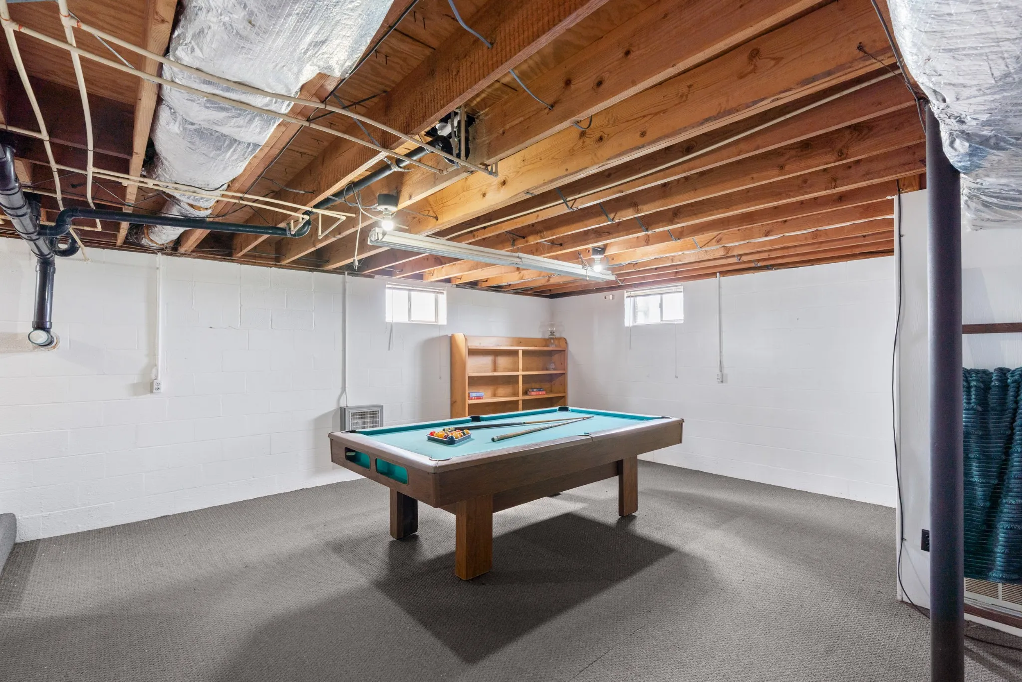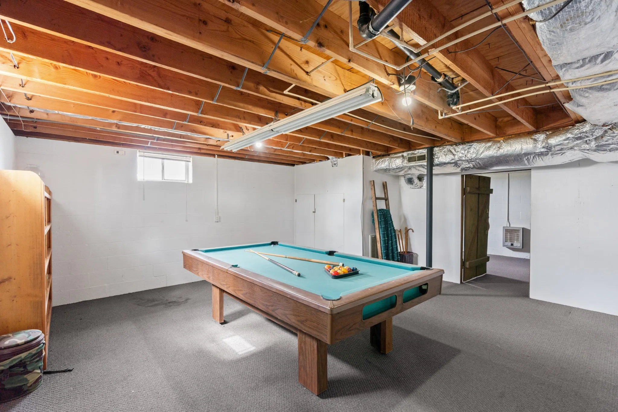 The massive basement offers endless possibilities! Fun game room includes a pool table that stays, making it ready for entertaining from day one! 🎱 Separate space for office or guess room that’s heated and cooled. Giant area for storage and all your hobbies.